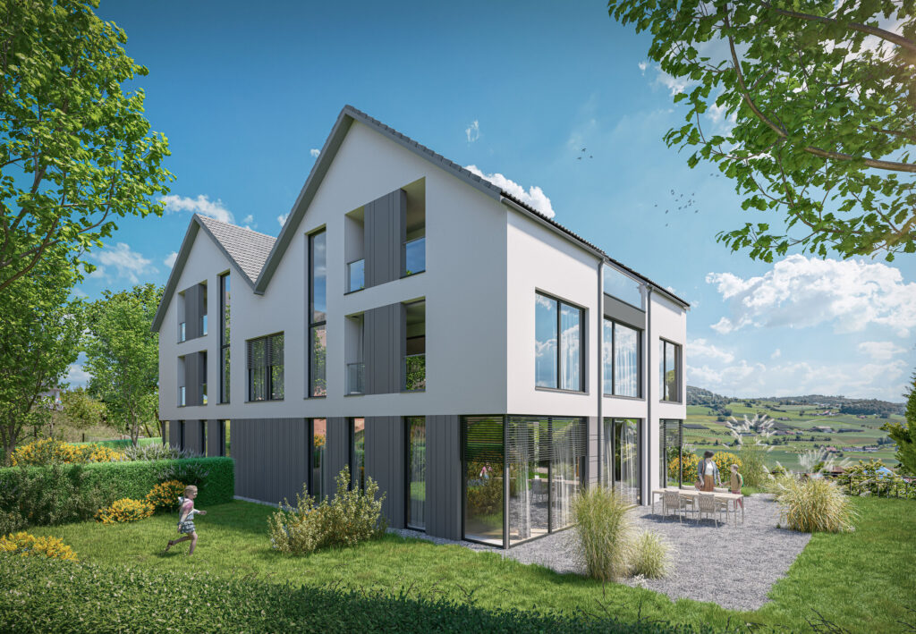 189 m² Nutzfläche, heller Wohn-/Essbereich mit Cheminée, grosse Küche, Einliegerwohnung, gepflegter Garten mit Fernsicht. Zwei Garagenplätze und zusätzliche Baulandreserve inklusive.