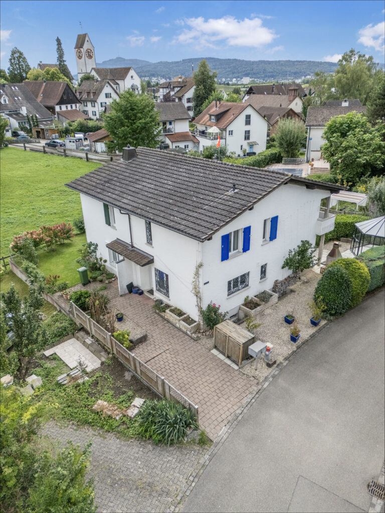 189 m² Nutzfläche, heller Wohn-/Essbereich mit Cheminée, grosse Küche, Einliegerwohnung, gepflegter Garten mit Fernsicht. Zwei Garagenplätze und zusätzliche Baulandreserve inklusive.
