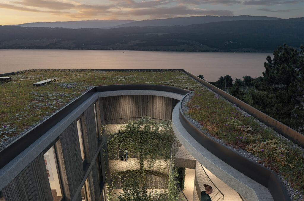 Das kompromisslose architektonische Konzept zeigt sich auch im detailreich gestalteten Eingangsbereich mit vertikaler Garteninstallation – ein starkes visuelles Statement, das Natur und Moderne verbindet. Dank eines grosszügigen Budgets für den Innenausbau können Sie Ihre Wohnung ganz nach Ihrem persönlichen Geschmack gestalten.