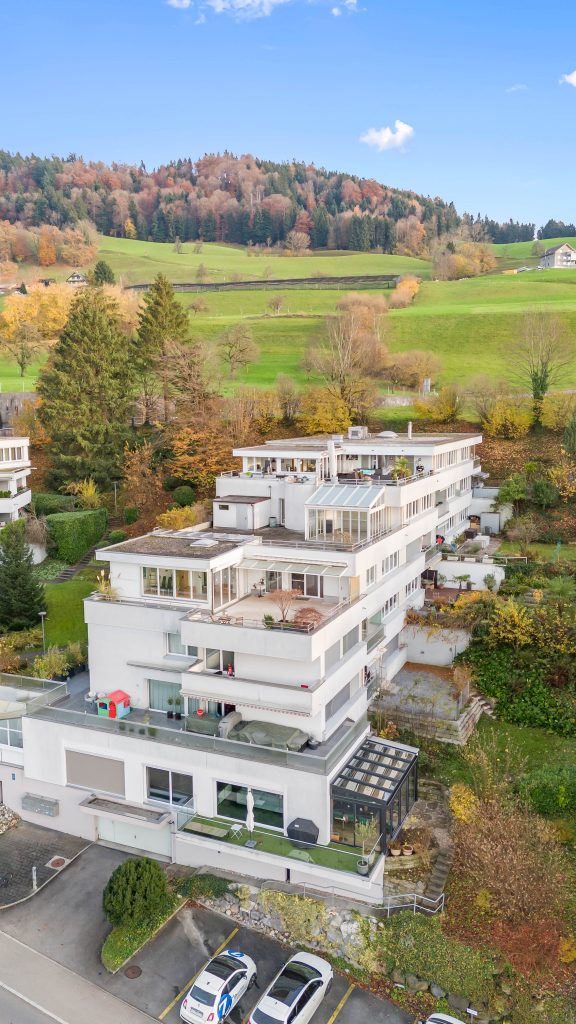 Die Besonderheit des Projekts liegt in den durchdachten Grundrissen: Jede Mittelwohnung profitiert von einem überhohen Wohnbereich, der die Tagesräume maximal belichtet und ein einzigartiges Raumgefühl von Grosszügigkeit und Eleganz schafft. Private Terrassen und Balkone liegen direkt vor den Wohnbereichen und verschmelzen mit der Fassadenstruktur. Die filigrane Fassadensprache bildet ein Geflecht, das Privatsphäre, Aussicht und Bezug zum Aussenraum zugleich gewährleistet.