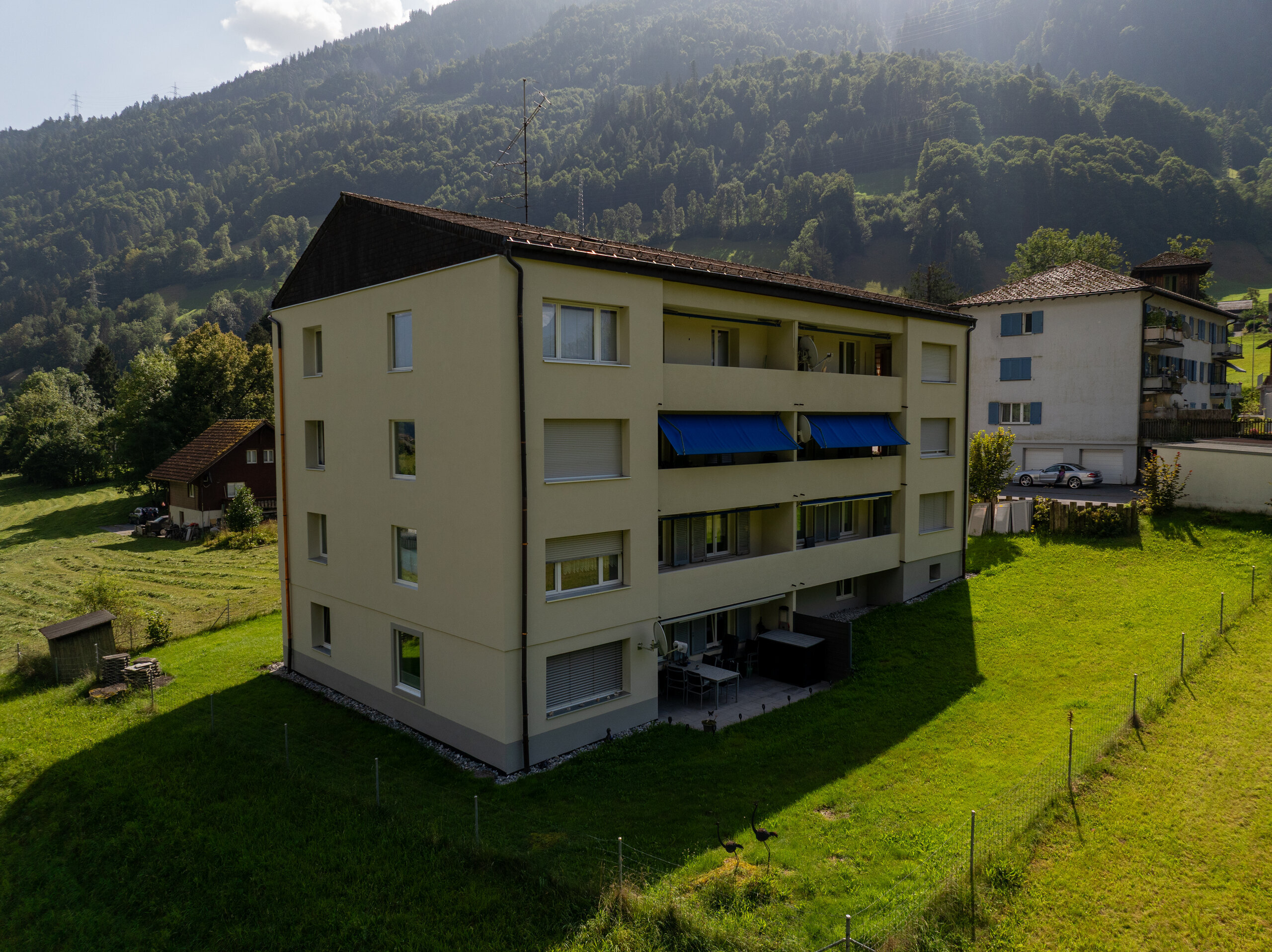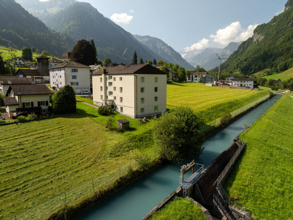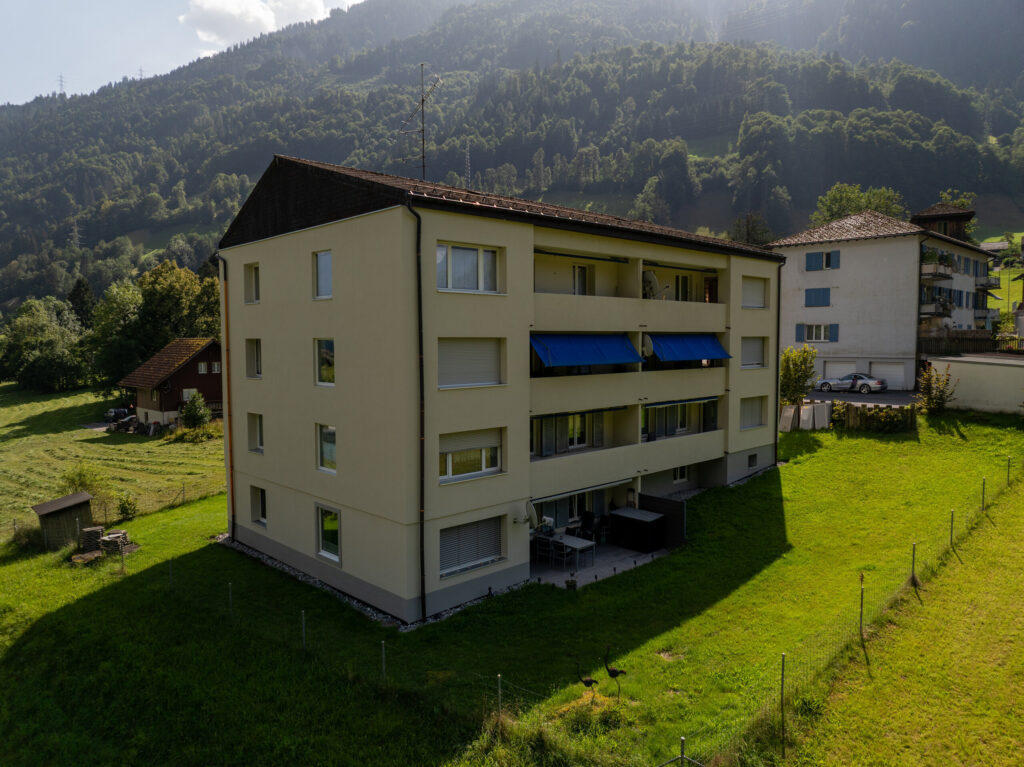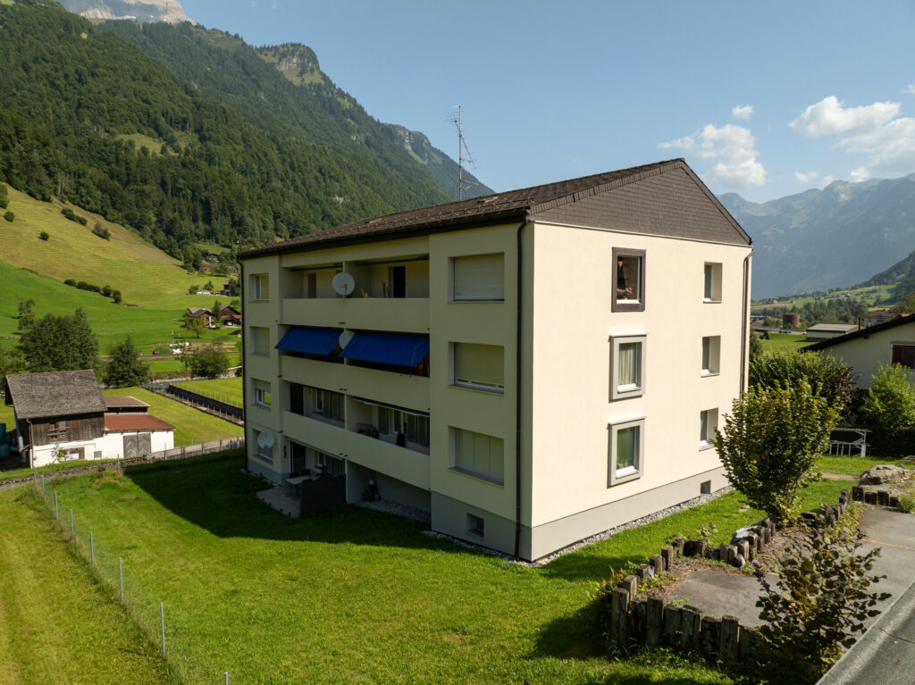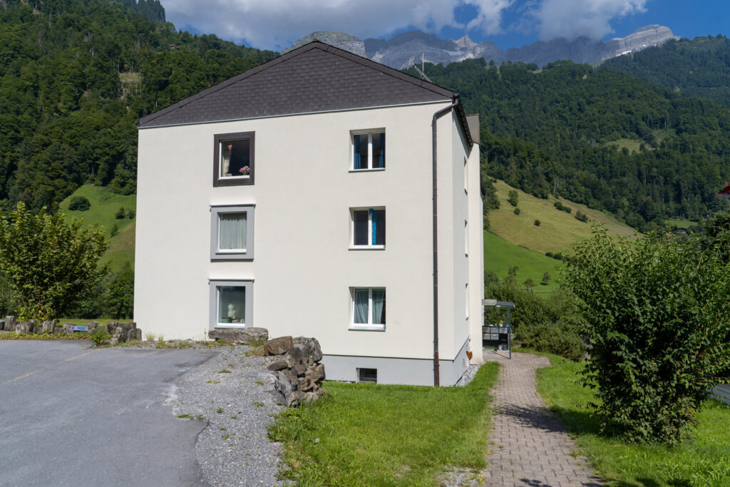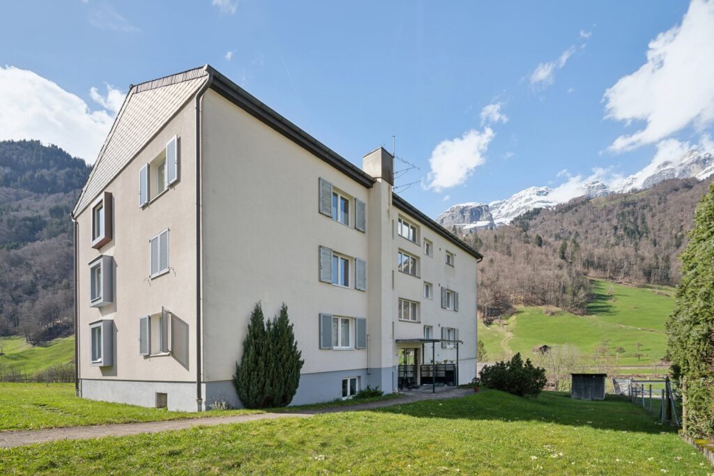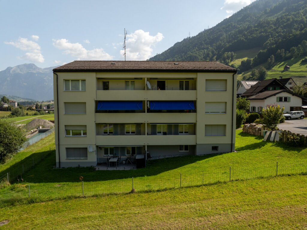 Inmitten der Glarner Bergwelt, im Dorfteil Hätzingen der Gemeinde Glarus Süd, steht diese gut unterhaltene 4.5-Zimmer-Eigentumswohnung zum Verkauf. Ob als Anlageobjekt oder zur späteren Selbstnutzung – die Wohnung überzeugt mit gepflegtem Zustand, lichterfüllten Räumen und einer Lage, die Natur und Ruhe mit praktischer Infrastruktur verbindet.