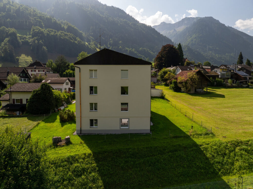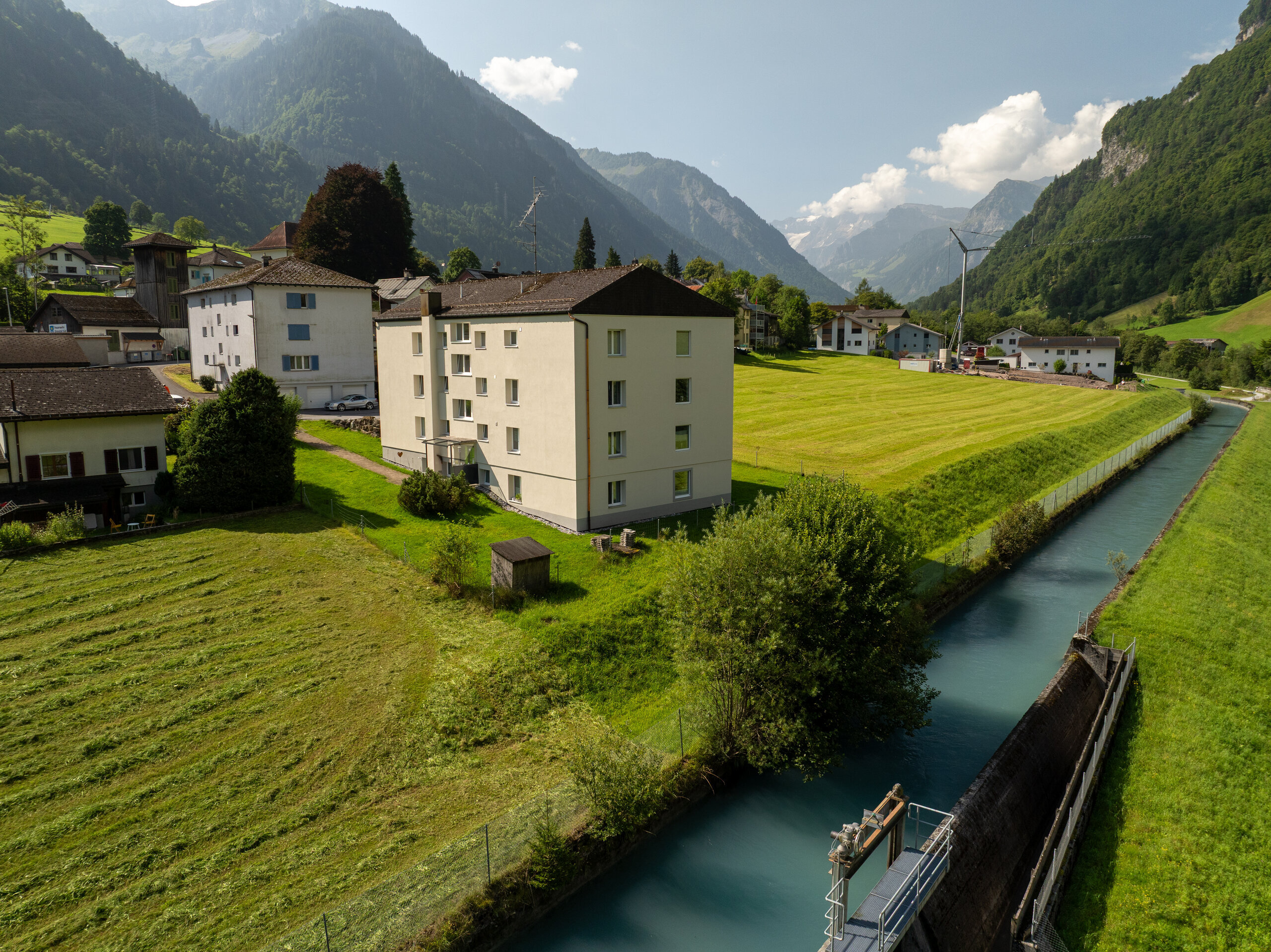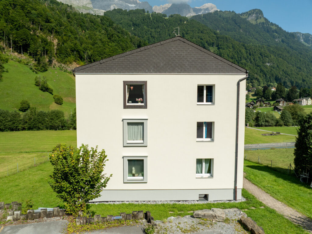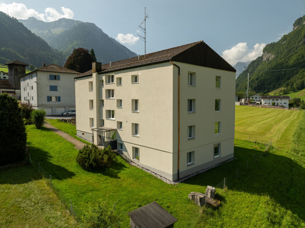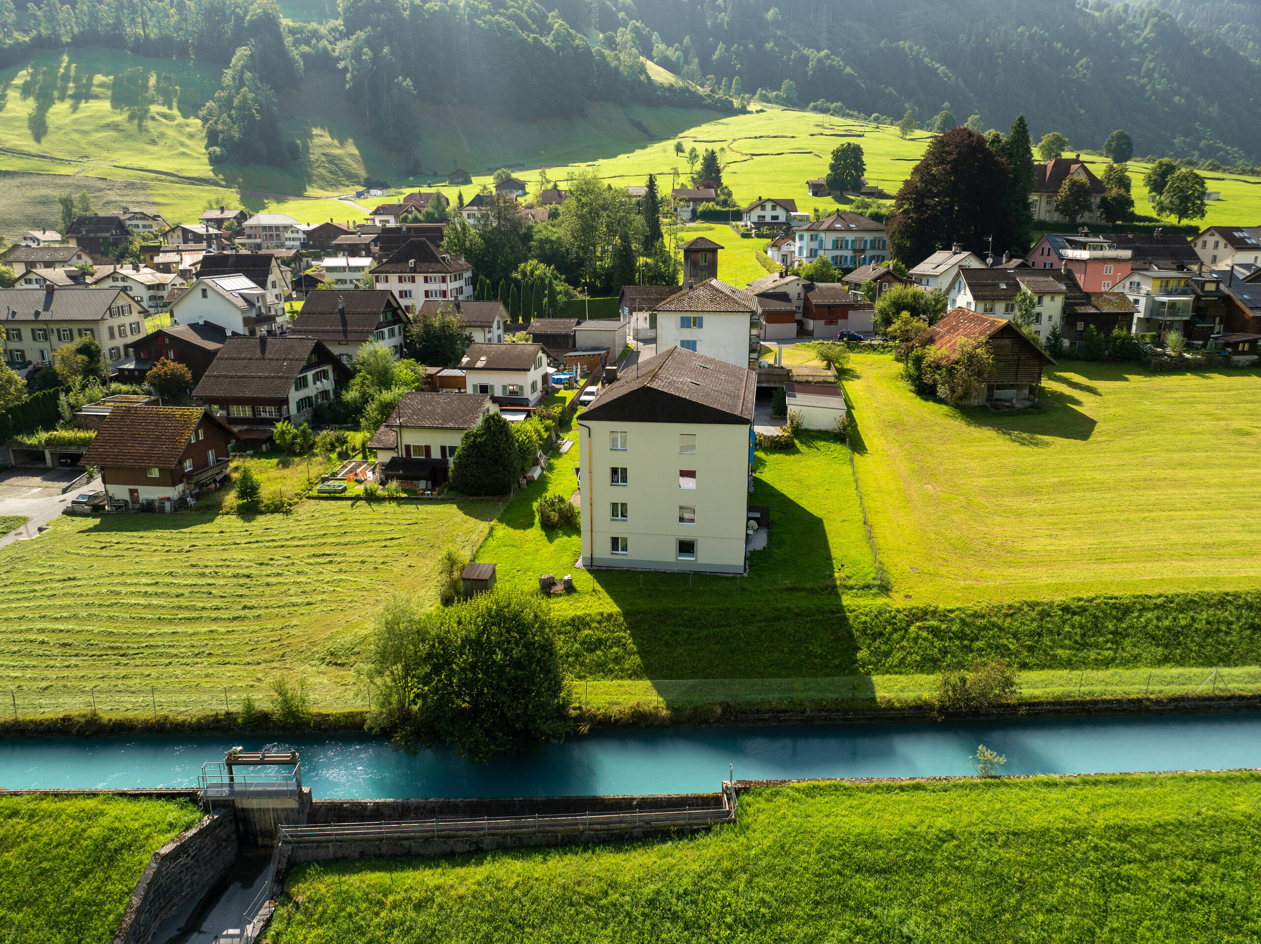 Inmitten der Glarner Bergwelt, im Dorfteil Hätzingen der Gemeinde Glarus Süd, steht diese gut unterhaltene 4.5-Zimmer-Eigentumswohnung zum Verkauf. Ob als Anlageobjekt oder zur späteren Selbstnutzung – die Wohnung überzeugt mit gepflegtem Zustand, lichterfüllten Räumen und einer Lage, die Natur und Ruhe mit praktischer Infrastruktur verbindet.