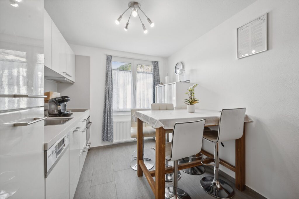 - Wohnen: Geschlossene Küche mit reichlich Stauraum und Platz für einen Frühstückstisch