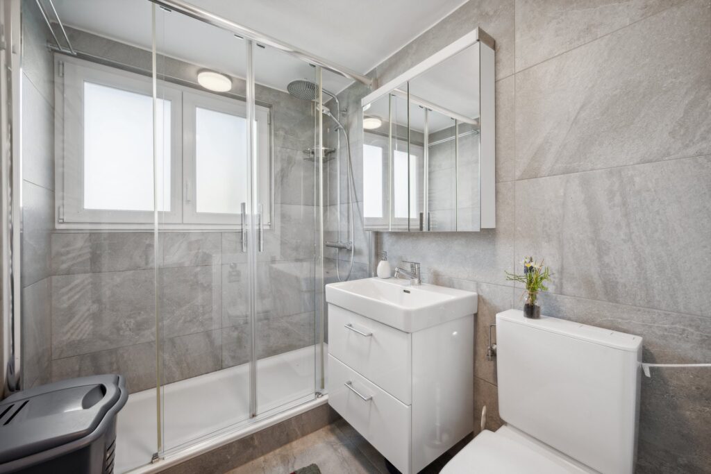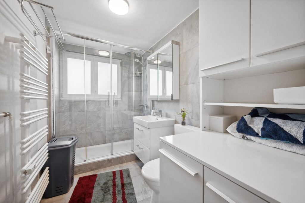 - Nassbereiche: Moderner Nassbereich mit Dusche/WC