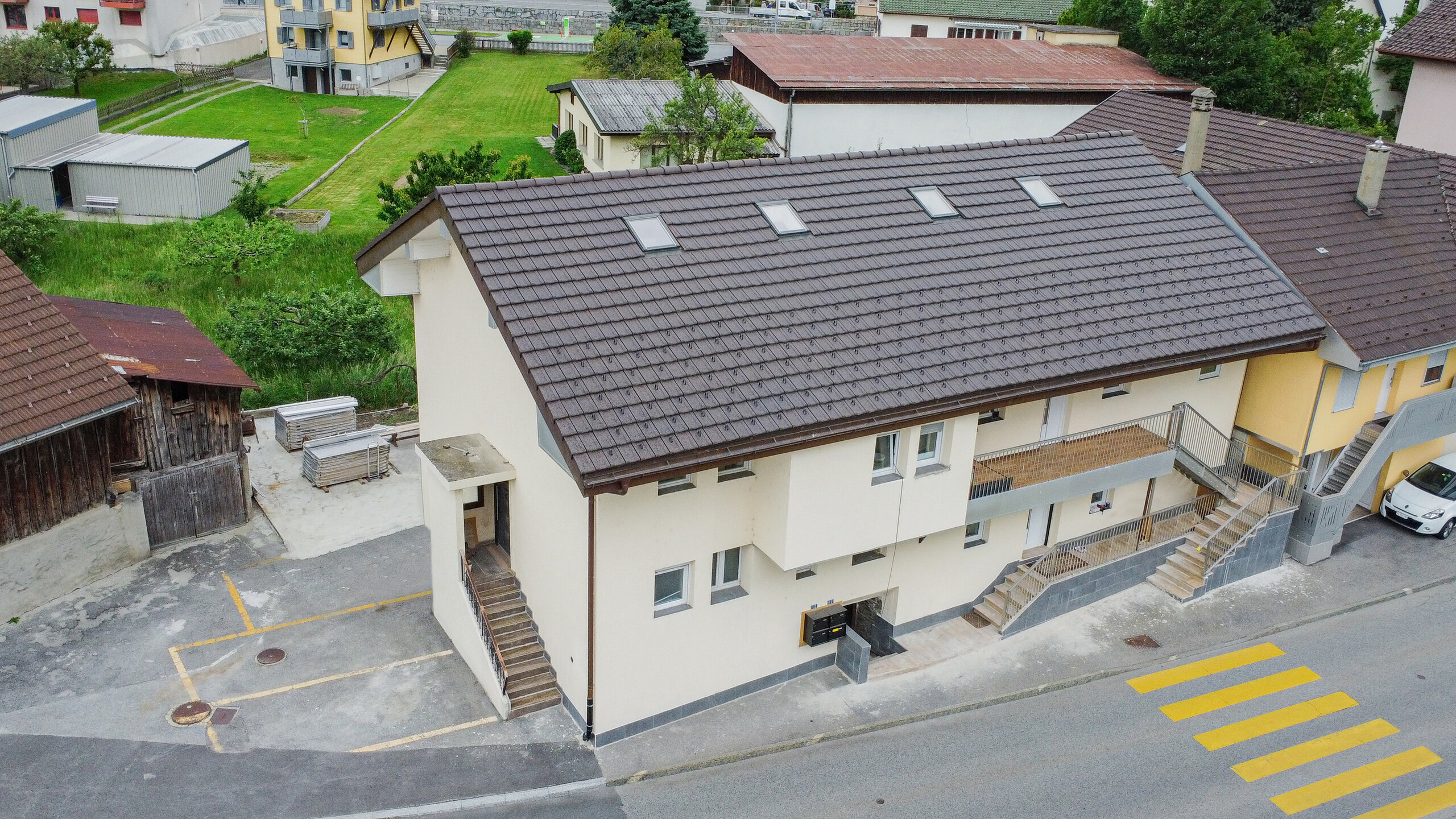 Zum Haus gehören drei Aussenabstellplätze, zwei Garagen sind bereits in Planung. Zusätzlich besteht die Möglichkeit, auf dem Grundstück eine Terrasse oder einen Gartenbereich zu gestalten. Einkaufsmöglichkeiten, Restaurants und öffentliche Verkehrsmittel befinden sich in unmittelbarer Nähe – ideal für ein bequemes Leben in einem charmanten Dorf mit ausgezeichneter Anbindung.