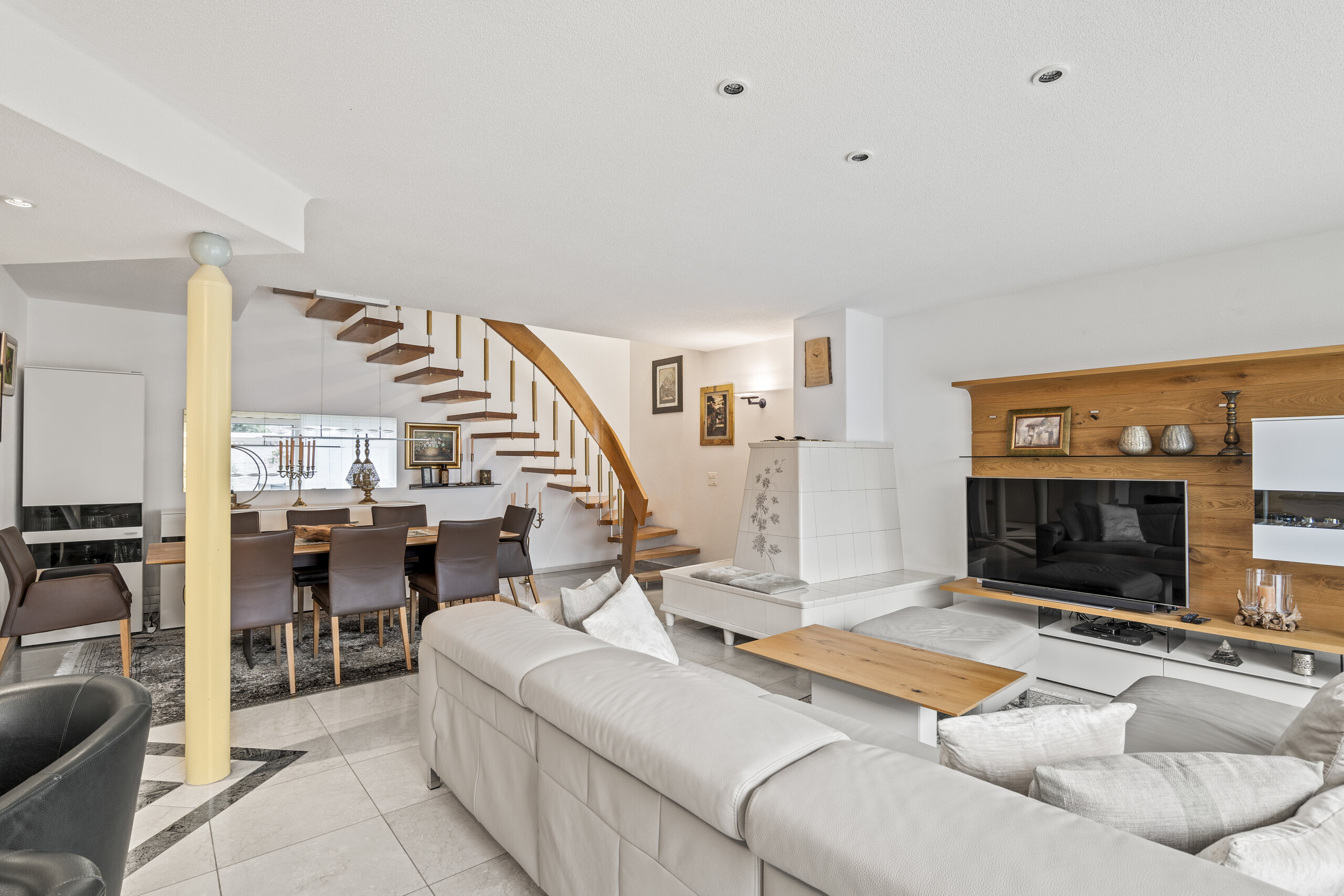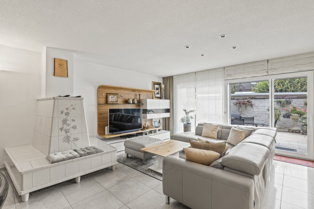 - Heller Wohn- und Essbereich mit Sitzofen und direktem Zugang zur Terrasse