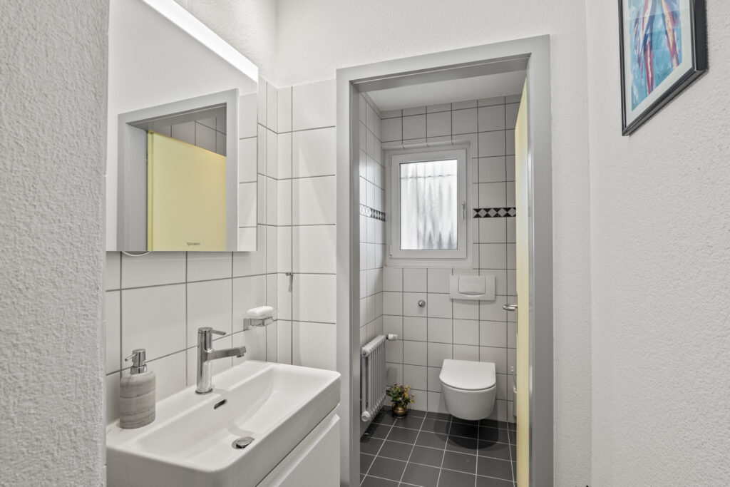 - Zwei Nassbereiche mit Bad/Dusche/WC, Dusche/WC sowie separate Gästetoilette