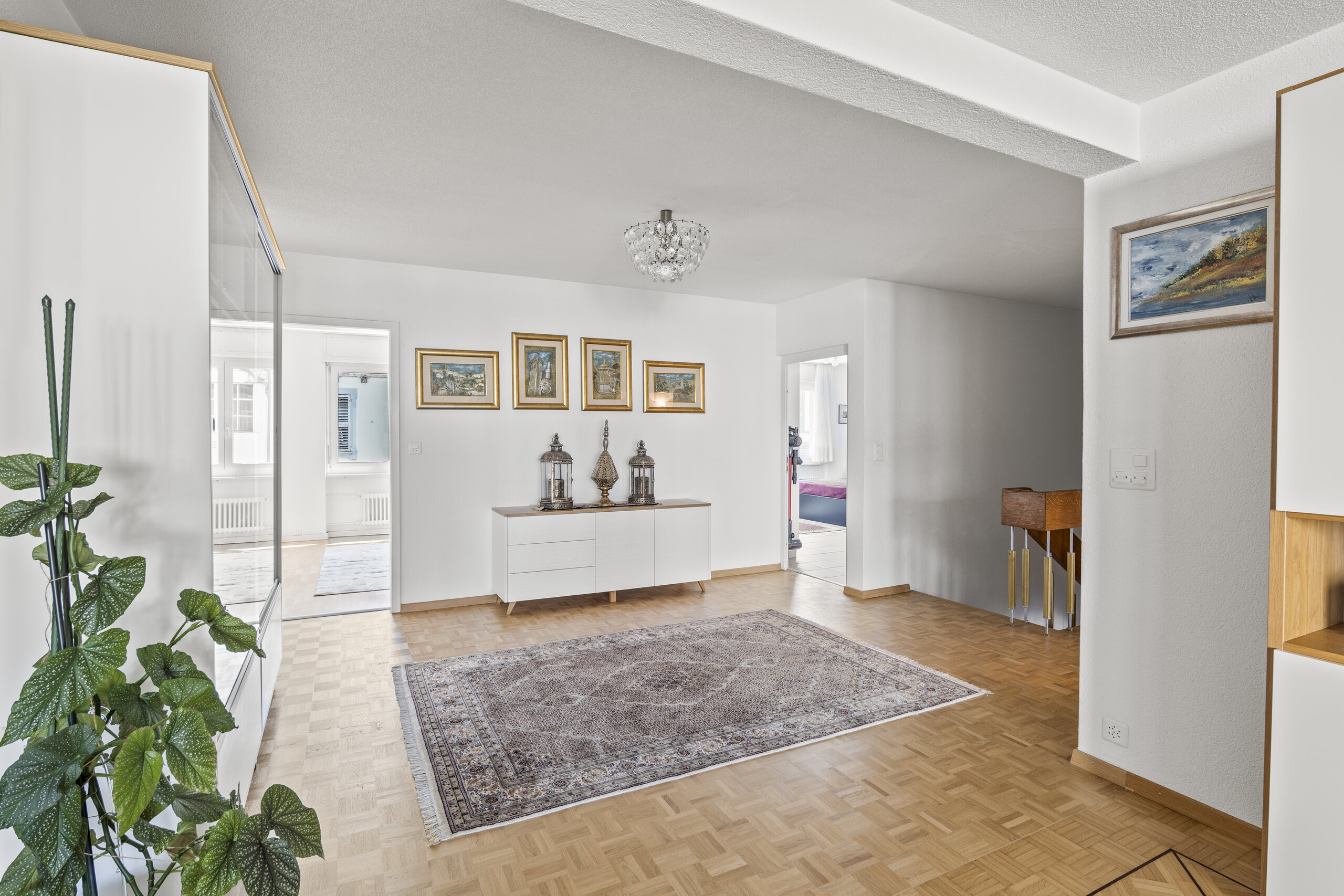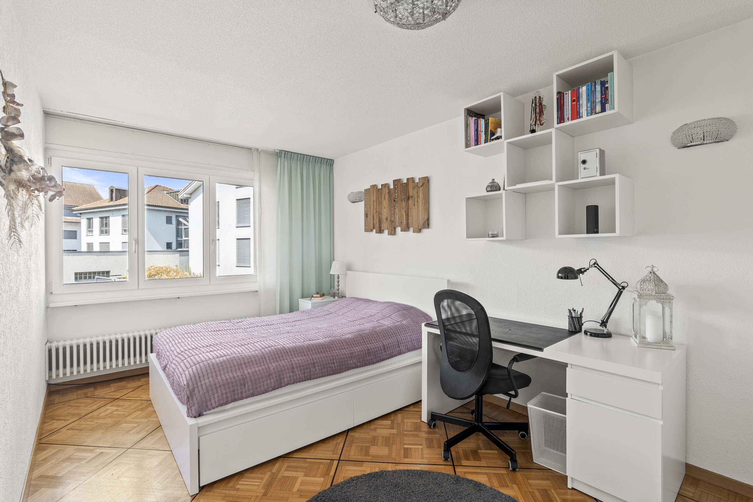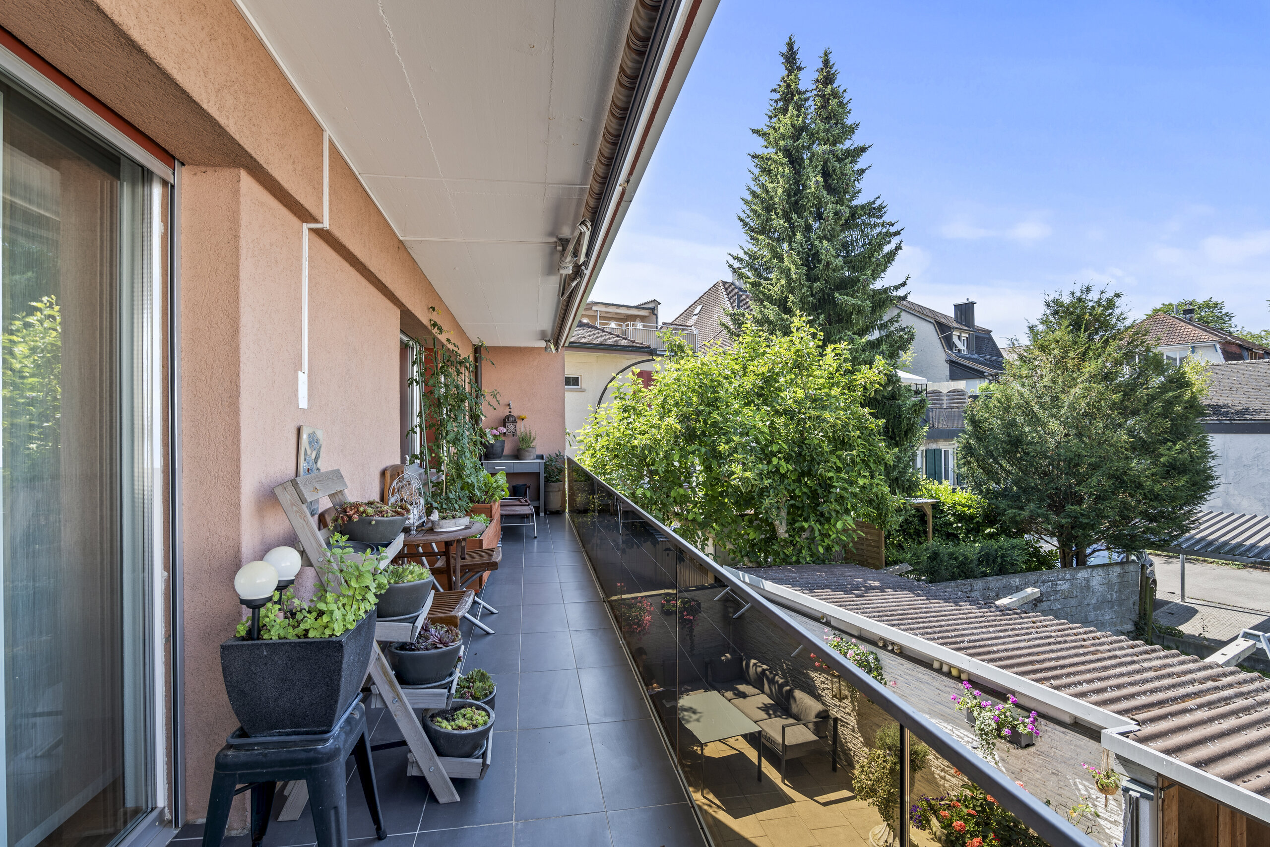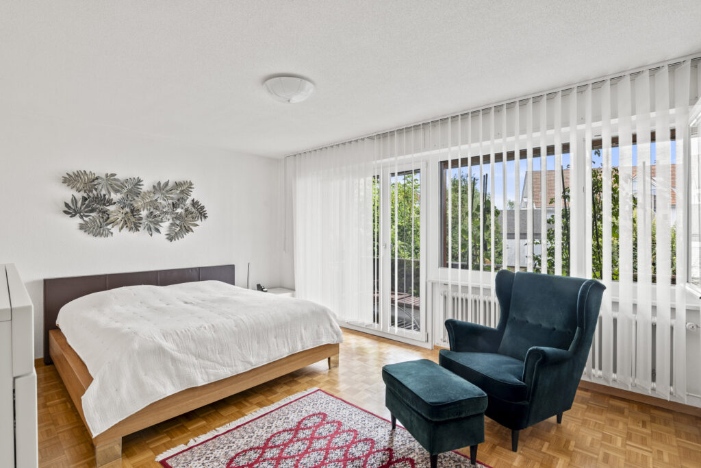 Die flexibel nutzbaren Zimmer bieten vielfältige Möglichkeiten – ob mit Bad en suite, eigenem Lavabo oder als Homeoffice. Zwei modern ausgestattete Nassbereiche (Bad/Dusche/WC sowie Dusche/WC) sowie eine separate Gästetoilette erhöhen den Wohnkomfort. Ergänzt wird das Angebot durch einen gedeckten Balkon im Obergeschoss, der weitere Sonnenstunden und Weitsicht bietet.
