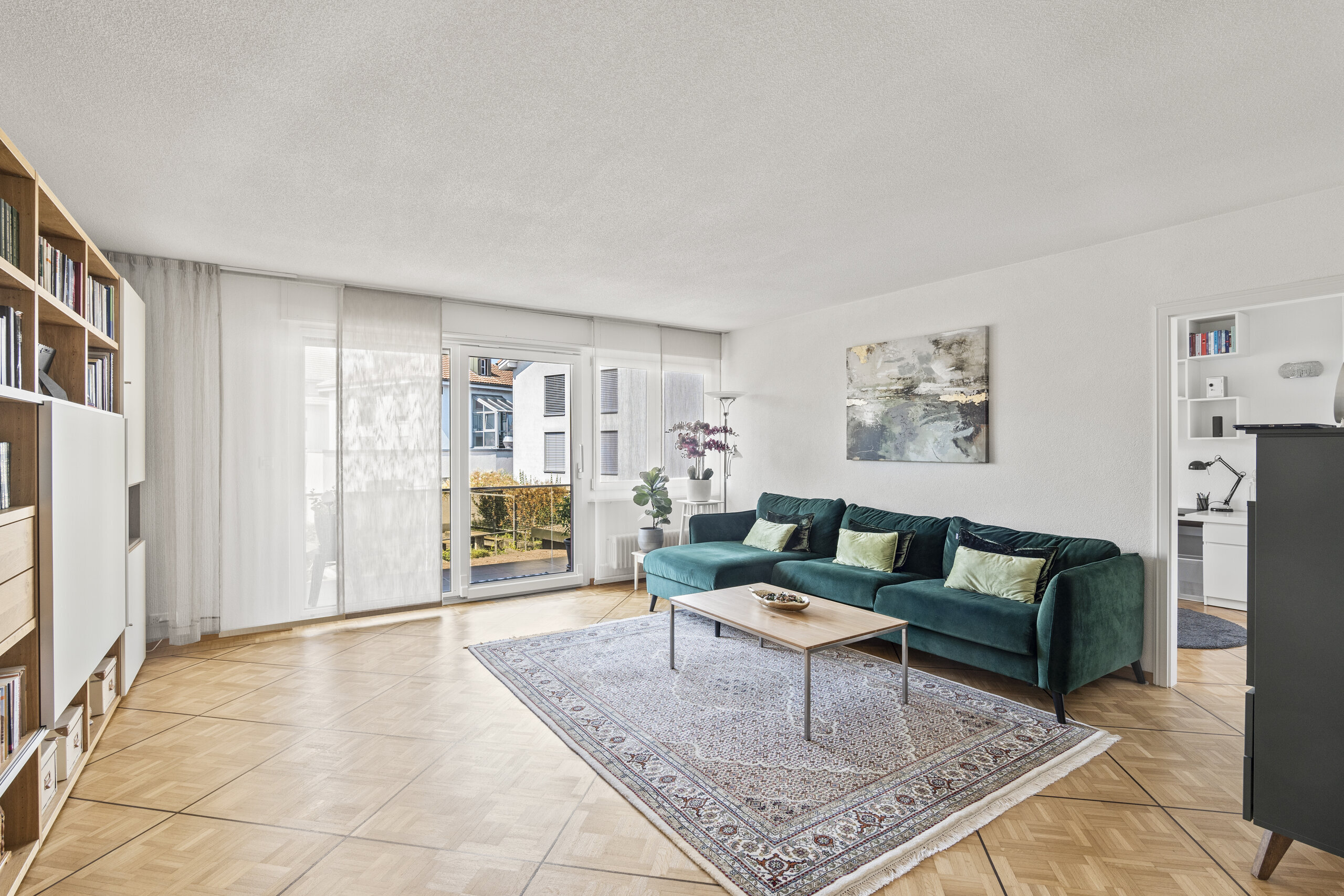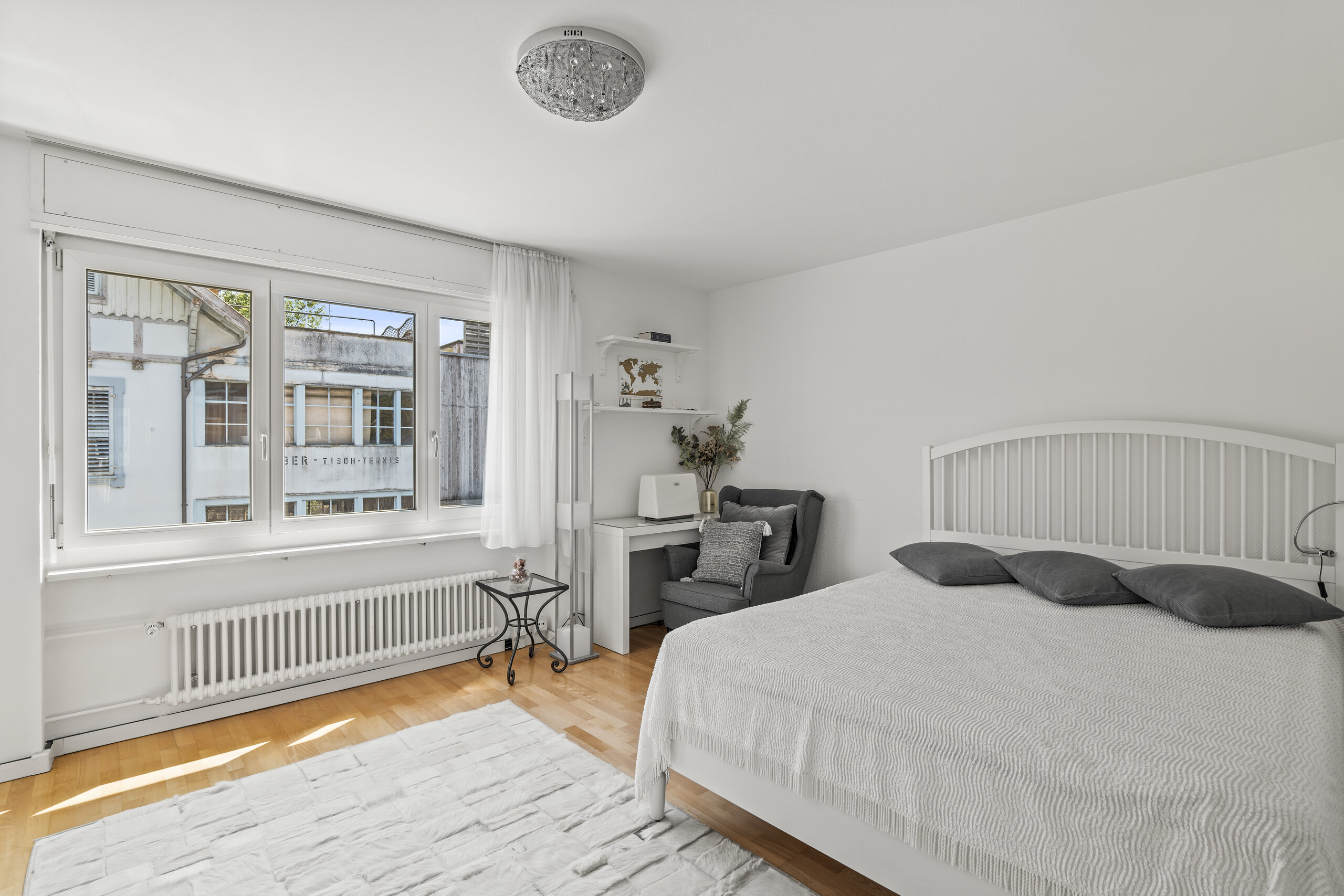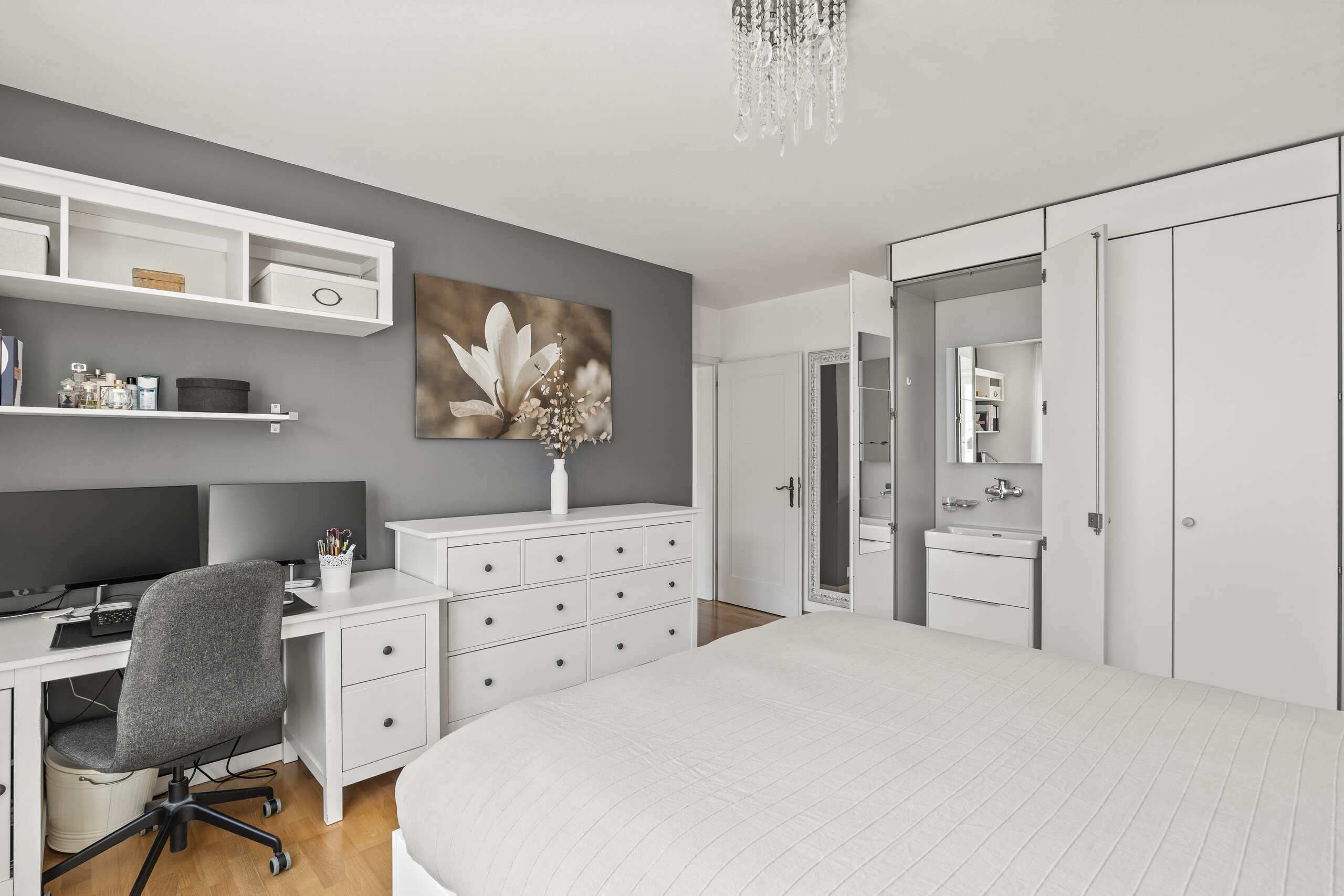 Die flexibel nutzbaren Zimmer bieten vielfältige Möglichkeiten – ob mit Bad en suite, eigenem Lavabo oder als Homeoffice. Zwei modern ausgestattete Nassbereiche (Bad/Dusche/WC sowie Dusche/WC) sowie eine separate Gästetoilette erhöhen den Wohnkomfort. Ergänzt wird das Angebot durch einen gedeckten Balkon im Obergeschoss, der weitere Sonnenstunden und Weitsicht bietet.