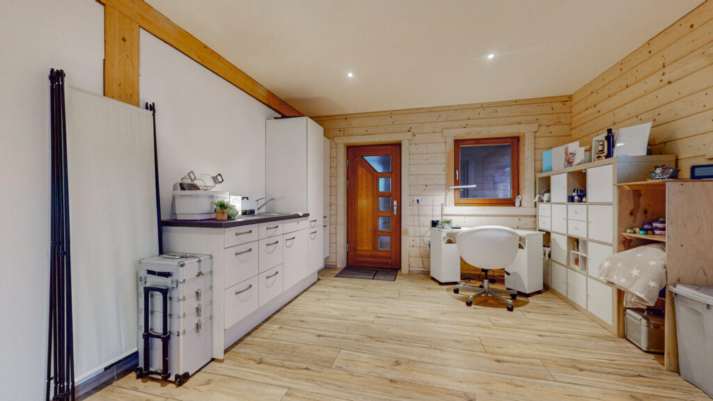 Nebenräume wie Reduit, Werkstatt und Waschküche sorgen für praktische Ablagemöglichkeiten. Ein modernes Zuhause mit besonderem Chalet-Charakter, das viel Raum und Behaglichkeit vereint.