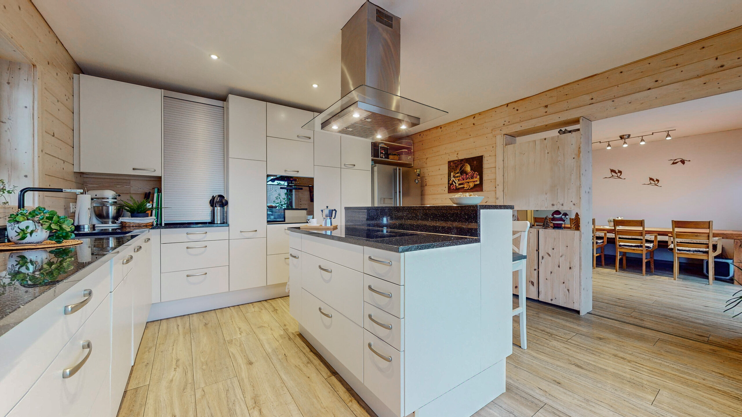 - Grosser, offener und heller Wohn- und Essbereich mit gemütlichem Schwedenofen und direktem Zugang zur Terrasse