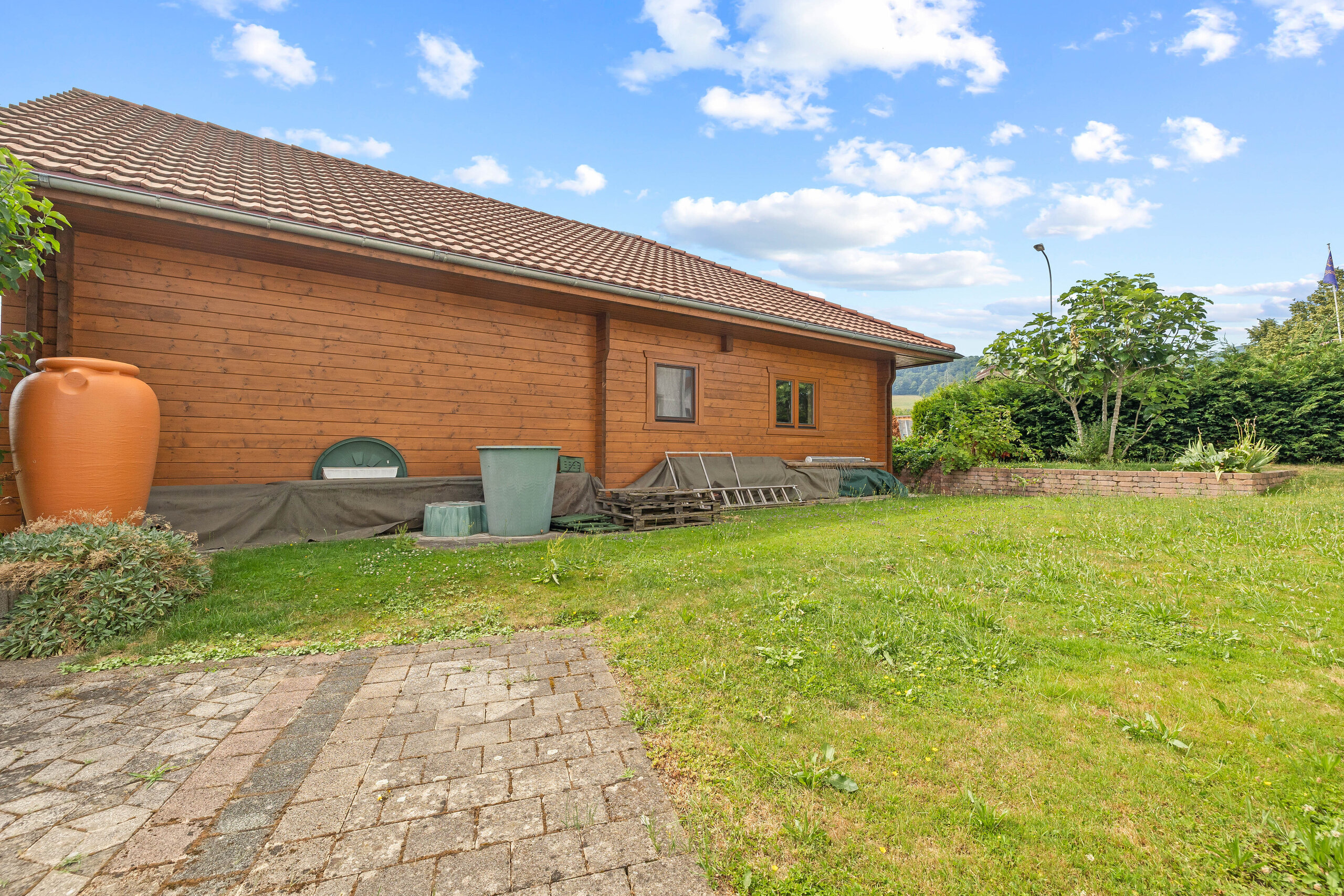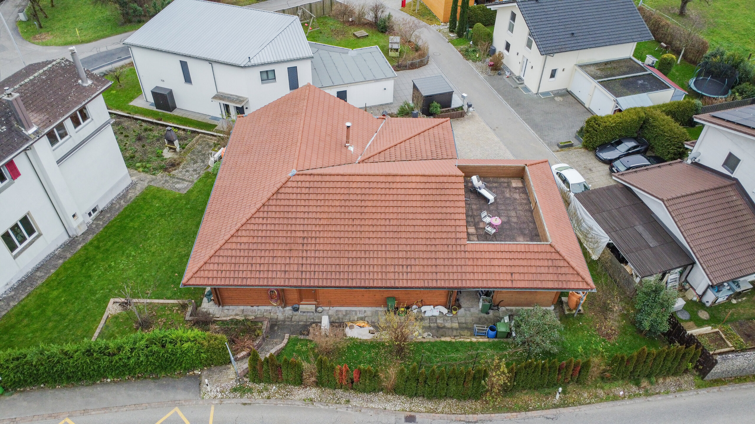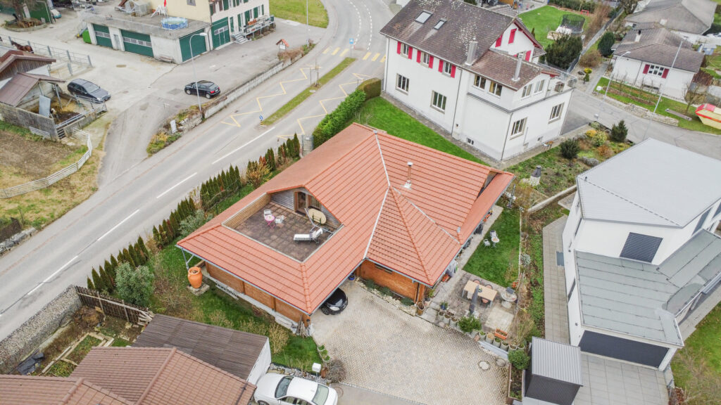 Das Obergeschoss bietet viel Gestaltungsspielraum – ideal für alle, die ihren Wohntraum individuell anpassen möchten. Umgeben von einem gepflegten Garten mit schöner Grünfläche und ergänzt durch zwei sonnige Terrassen, geniessen Sie hier entspannte Stunden im Freien.