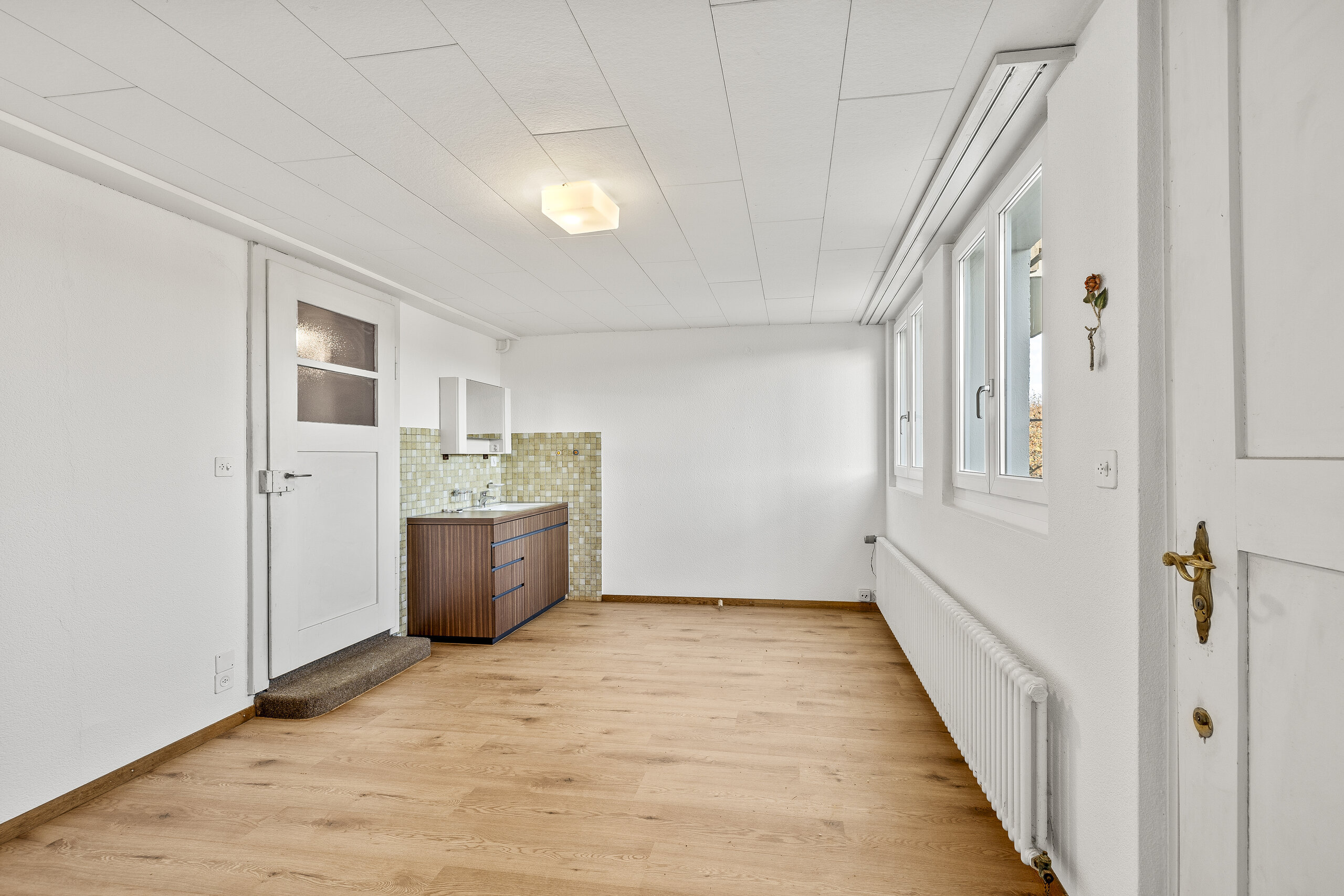 Das Haus verfügt über einen Nassbereich mit Dusche/WC sowie eine zusätzliche Dusche in der Waschküche. Praktische Nebenräume wie Keller, Estrich, Tankraum und Waschküche bieten zusätzlichen Komfort. Eine Garagenbox sowie drei Aussenparkplätze stehen ebenfalls zur Verfügung.