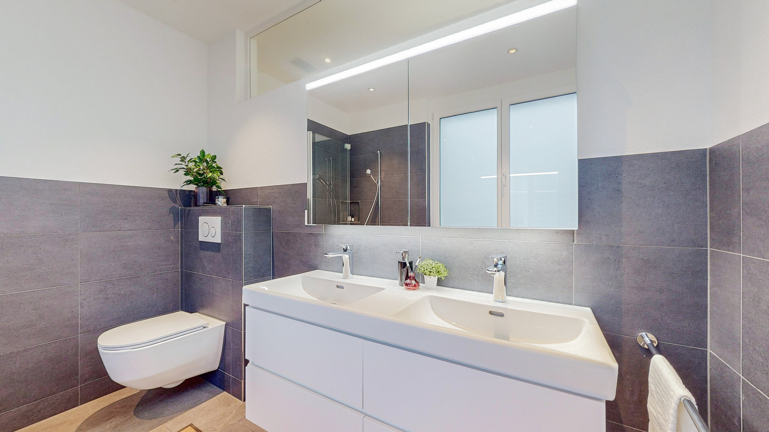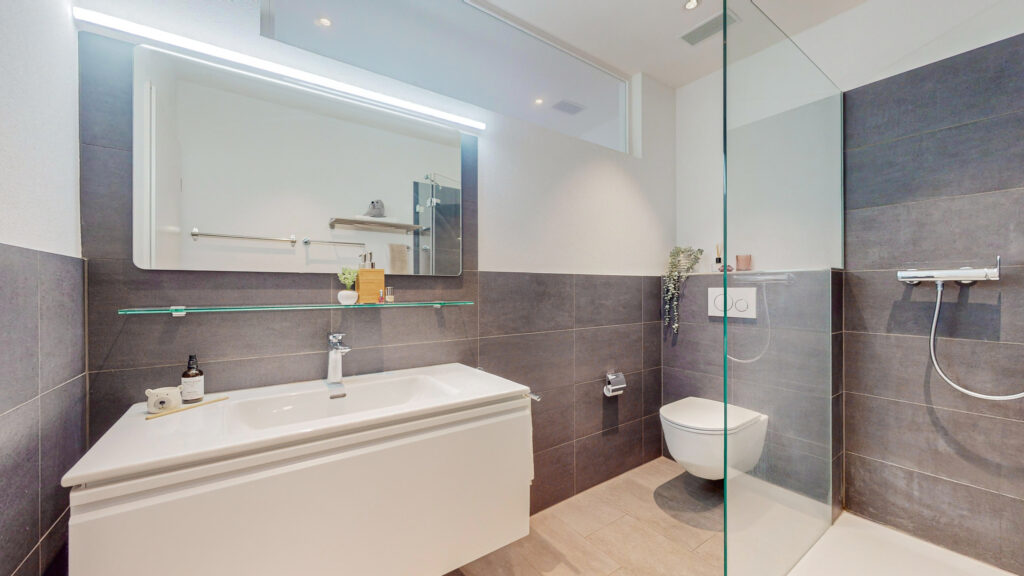 • Stilvolle Nassbereiche: 2x Dusche/WC, Bad/WC sowie separate Toilette