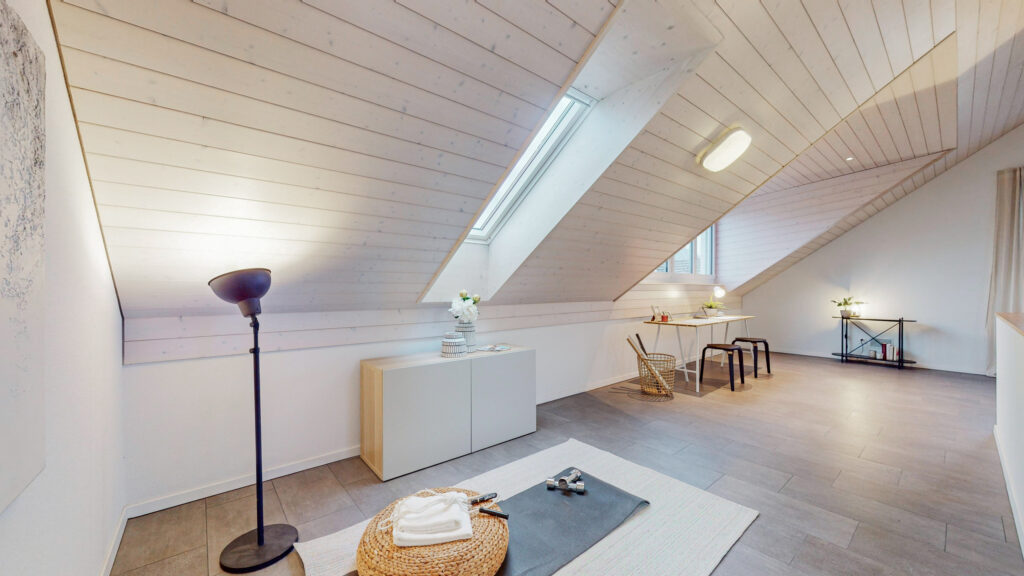 • Atelier, Wohnbereich oder weiteres Zimmer: Vollständig ausgebautes, 50 m² grosses Dachgeschoss