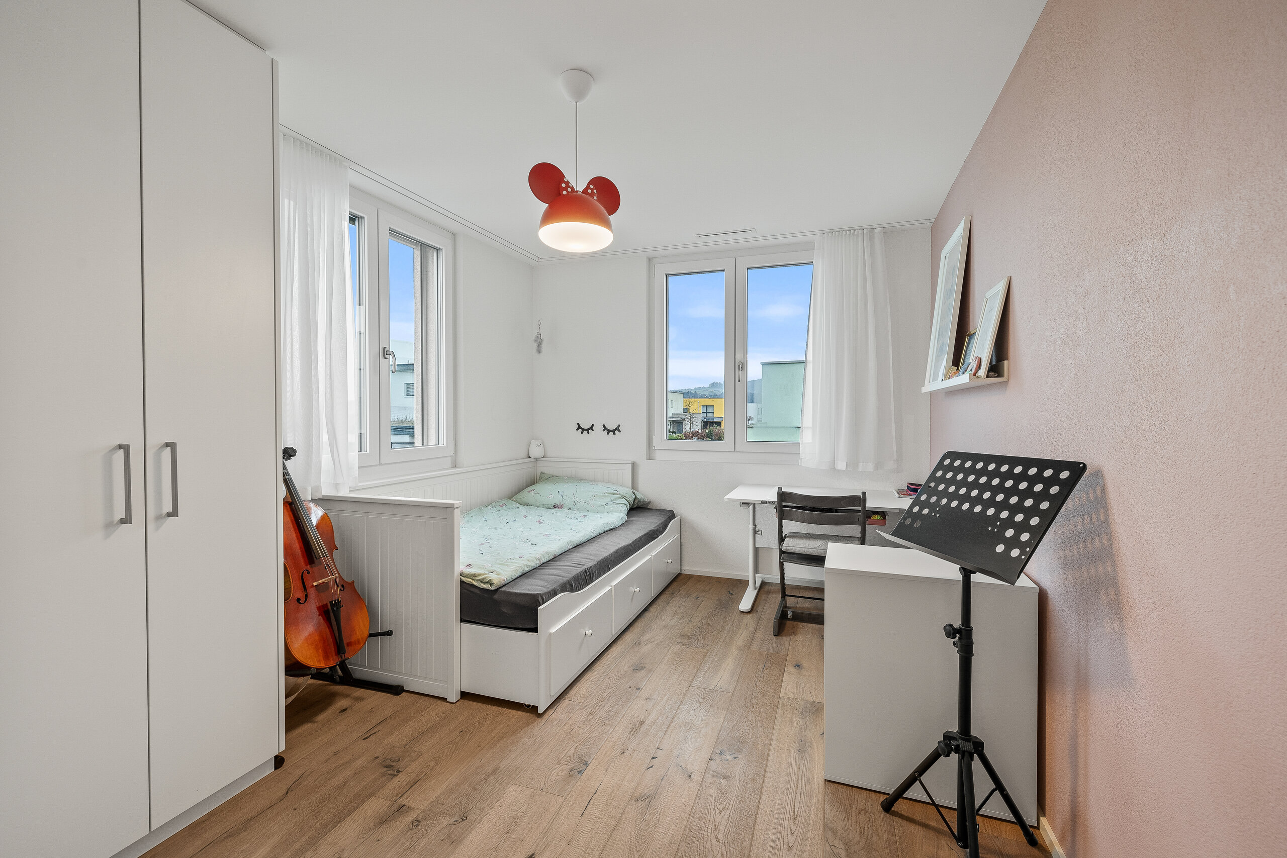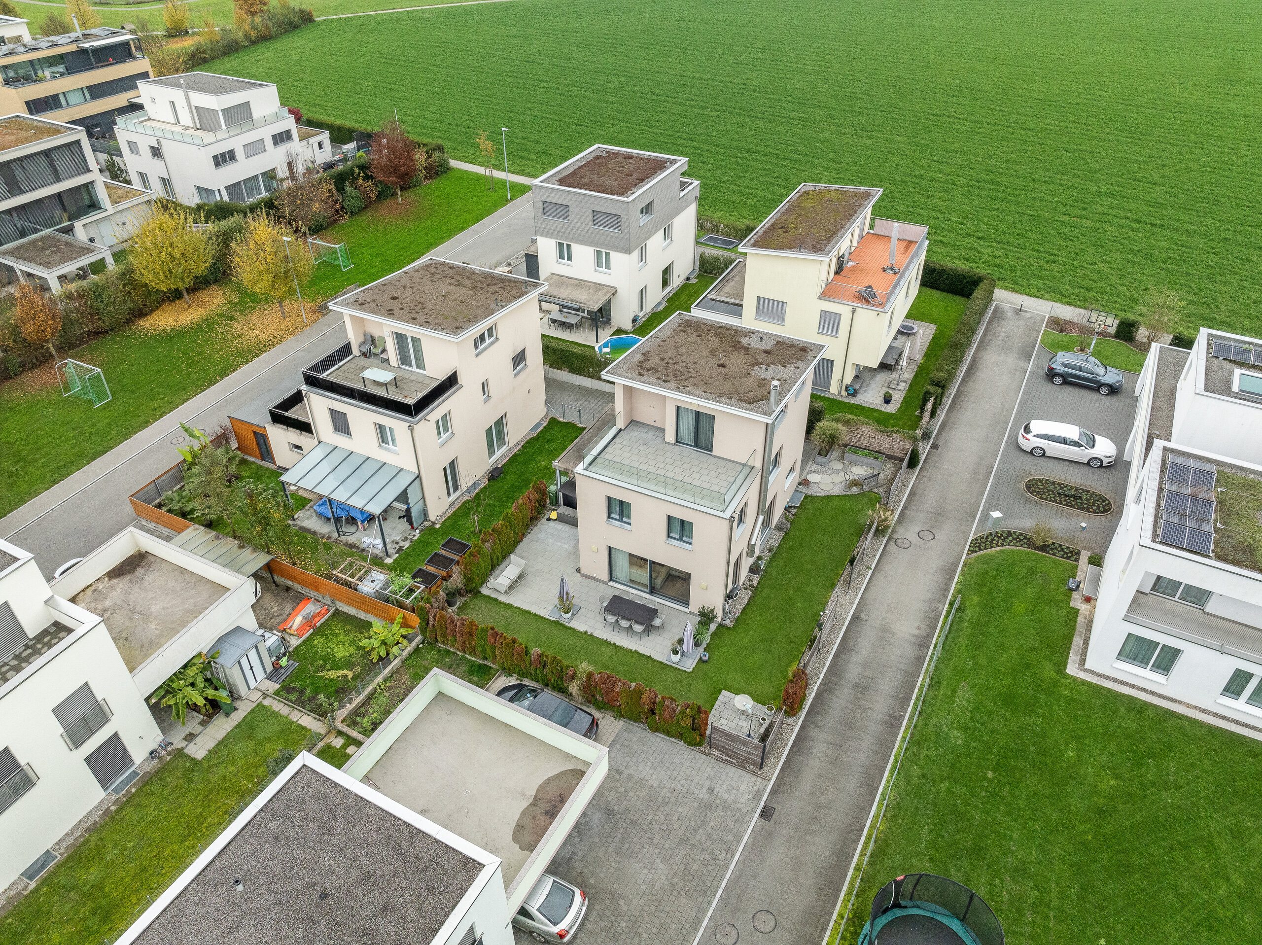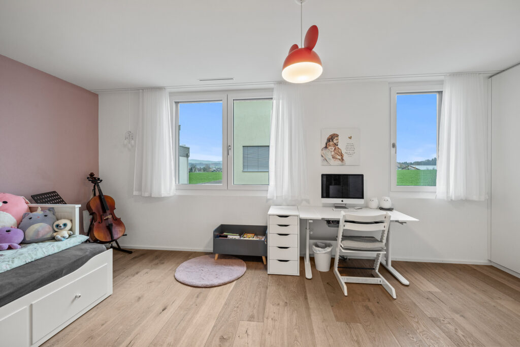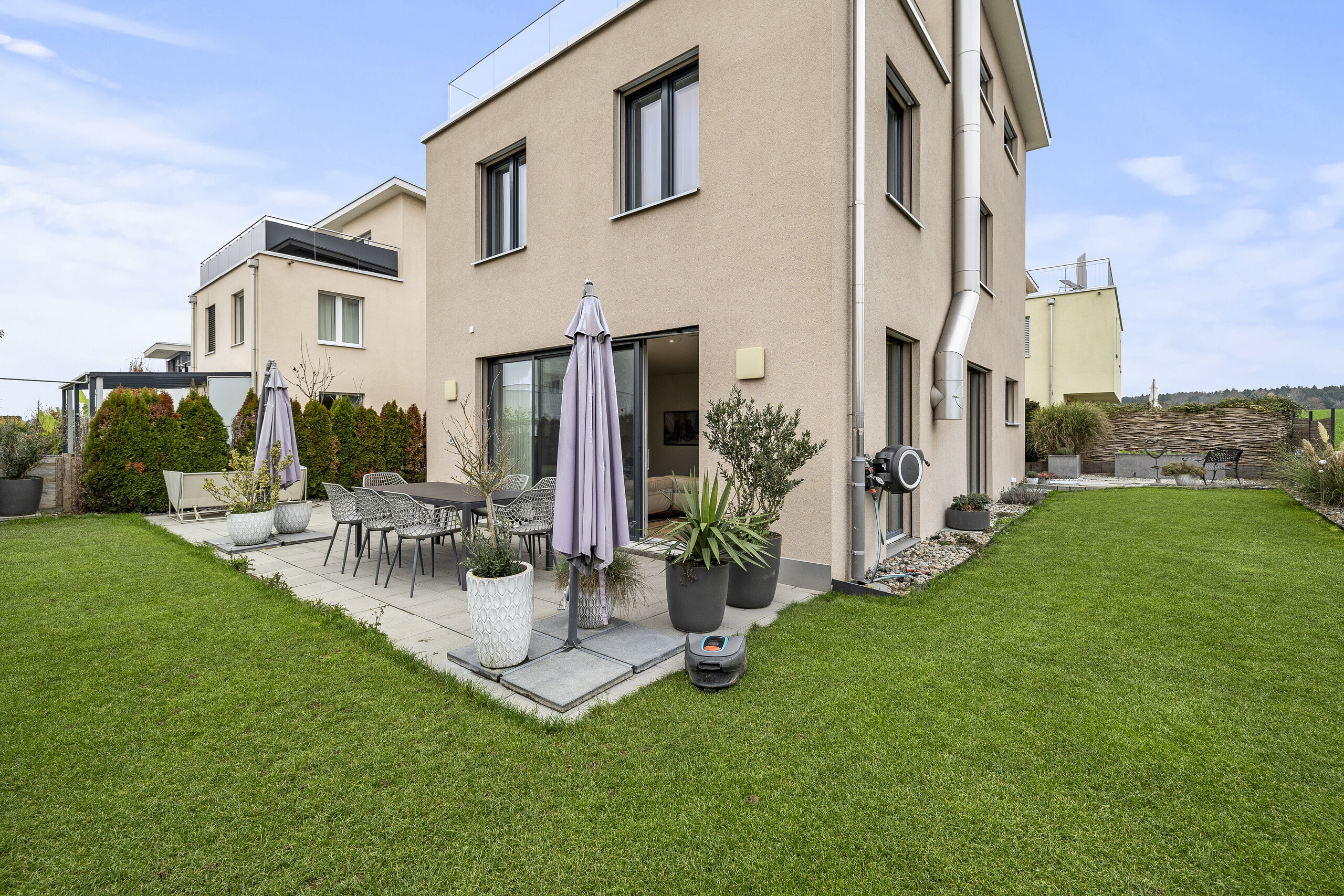 Ein besonderes Highlight ist die Terrasse im zweiten Obergeschoss, die einen herrlichen Blick auf die umliegende Landschaft eröffnet. Ergänzt wird das Angebot durch einen pflegeleichten Umschwung mit schöner Grünfläche und einer grossen Terrasse, die zu entspannten Stunden im Freien einlädt.