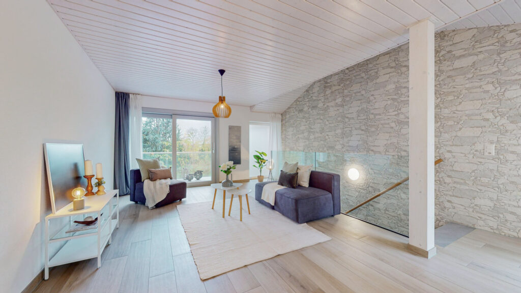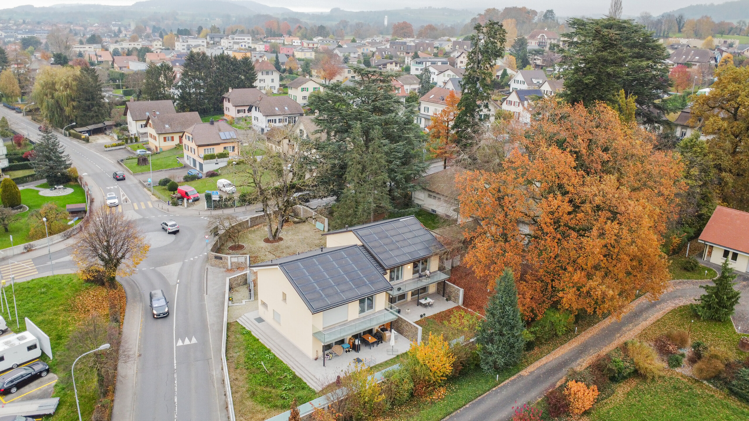 Ein Balkon mit Glasbalustrade im Obergeschoss unterstreicht die moderne Architektur und bietet einen schönen Blick ins Grüne. Dank der Photovoltaikanlage auf dem Dach profitieren Sie zudem von zeitgemässer Energieeffizienz. Praktische Nebenräume wie Keller, Abstellraum und Heizungsraum runden das Angebot ab.