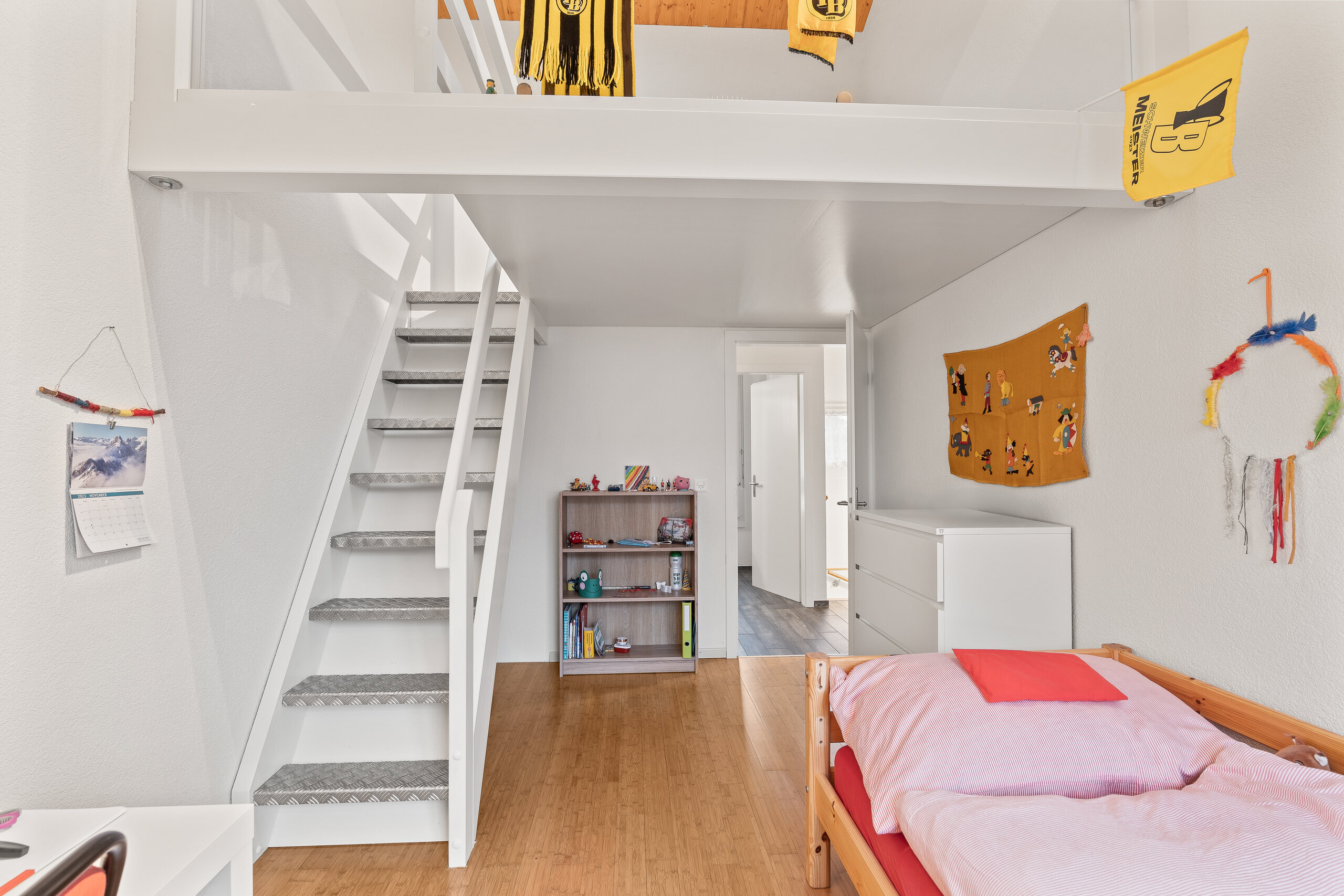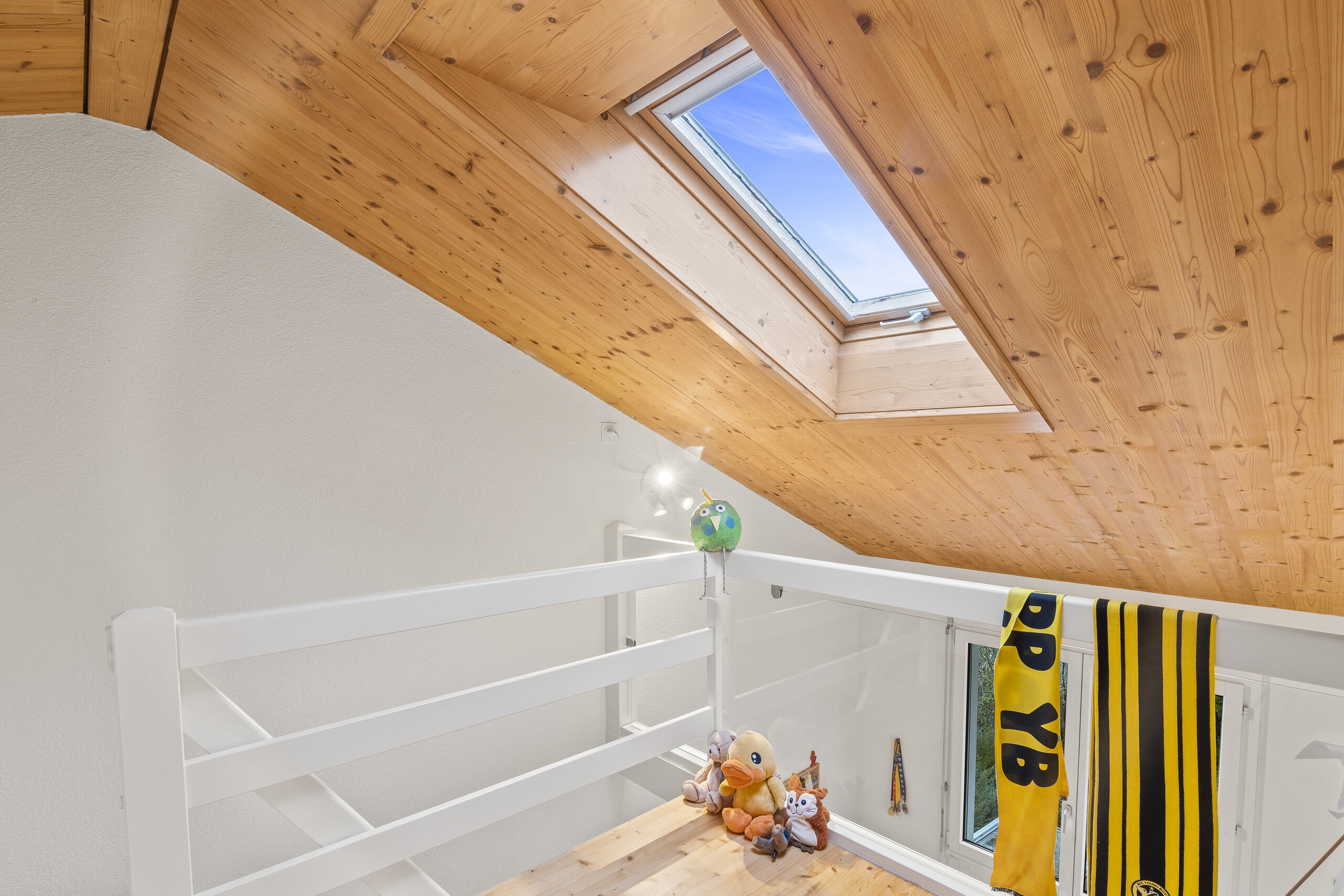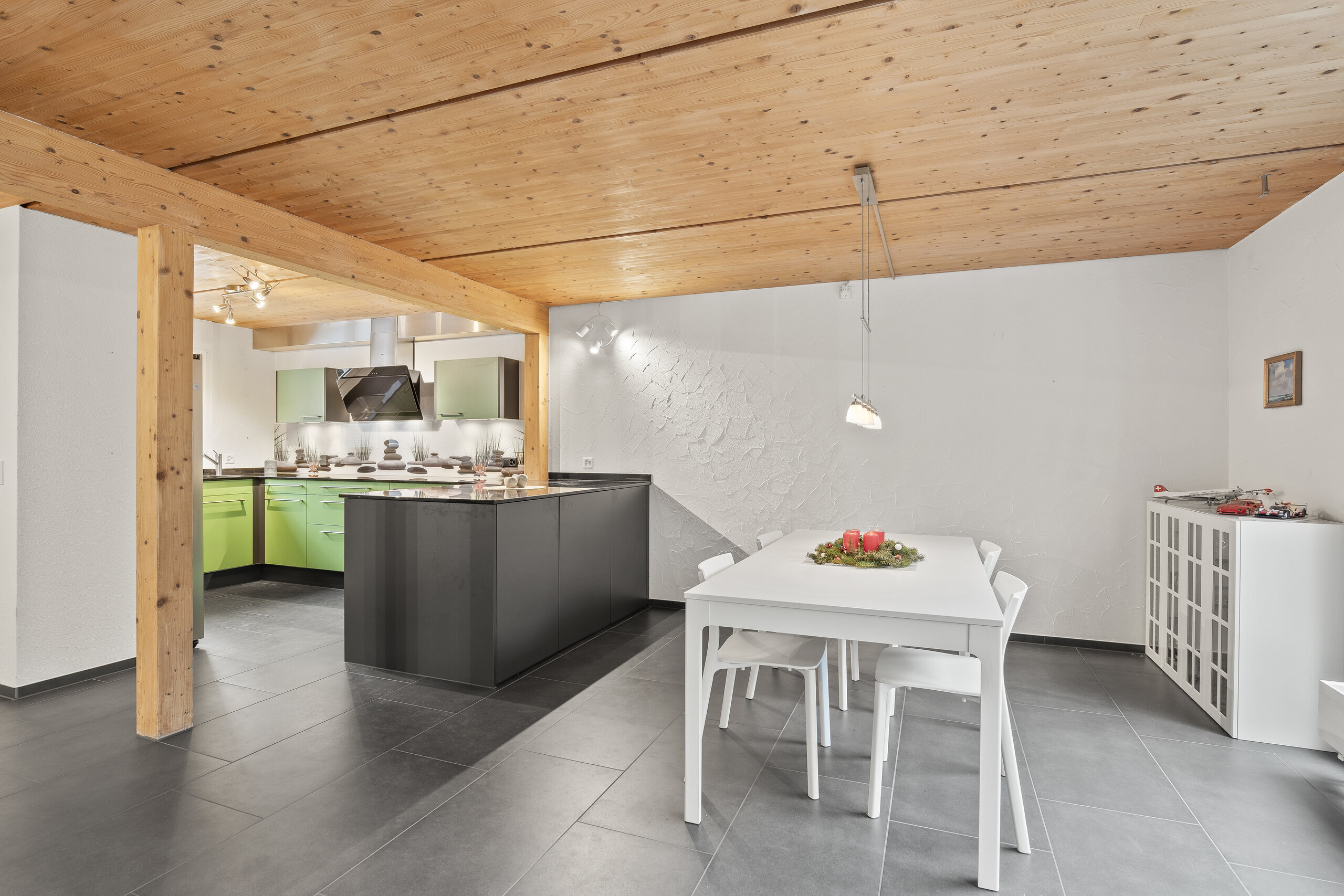 Das Herzstück des Hauses bildet der einladende Wohnbereich mit charaktervollen Sichtbalken, gemütlichem Schwedenofen und direktem Zugang zum gepflegten Aussenbereich. Die hochwertige Küche überzeugt mit eleganter Granitabdeckung und modernen Geräten. Zwei charmante Mezzanine-Zimmer sowie weitere flexibel nutzbare Räume verteilen sich über alle Stockwerke und schaffen vielfältige Möglichkeiten für Familie, Gäste oder Hobbys.