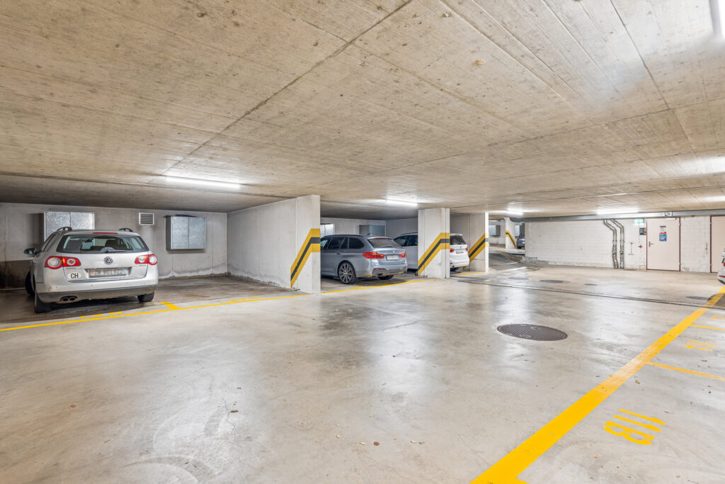 Ein eigenes Kellerabteil bietet zusätzlichen Stauraum. Zwei Einstellhallenplätze können bei Bedarf erworben werden und runden das Angebot ab.