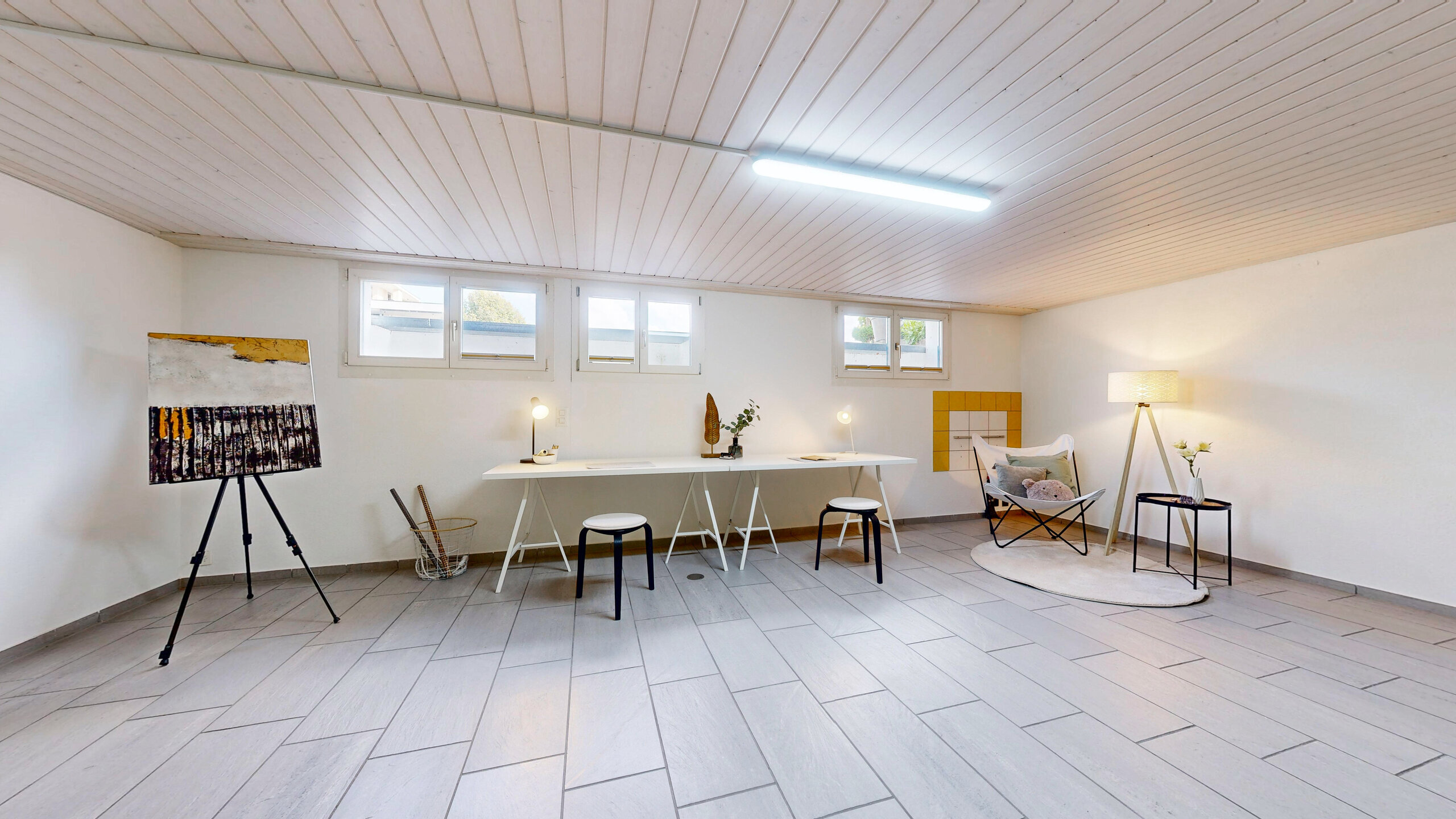 Praktische Nebenräume wie Keller, Waschküche, Weinkeller und Abstellraum ergänzen das Angebot. Für Fahrzeuge stehen ein Carport sowie zwei Aussenabstellplätze direkt vor dem Haus zur Verfügung.