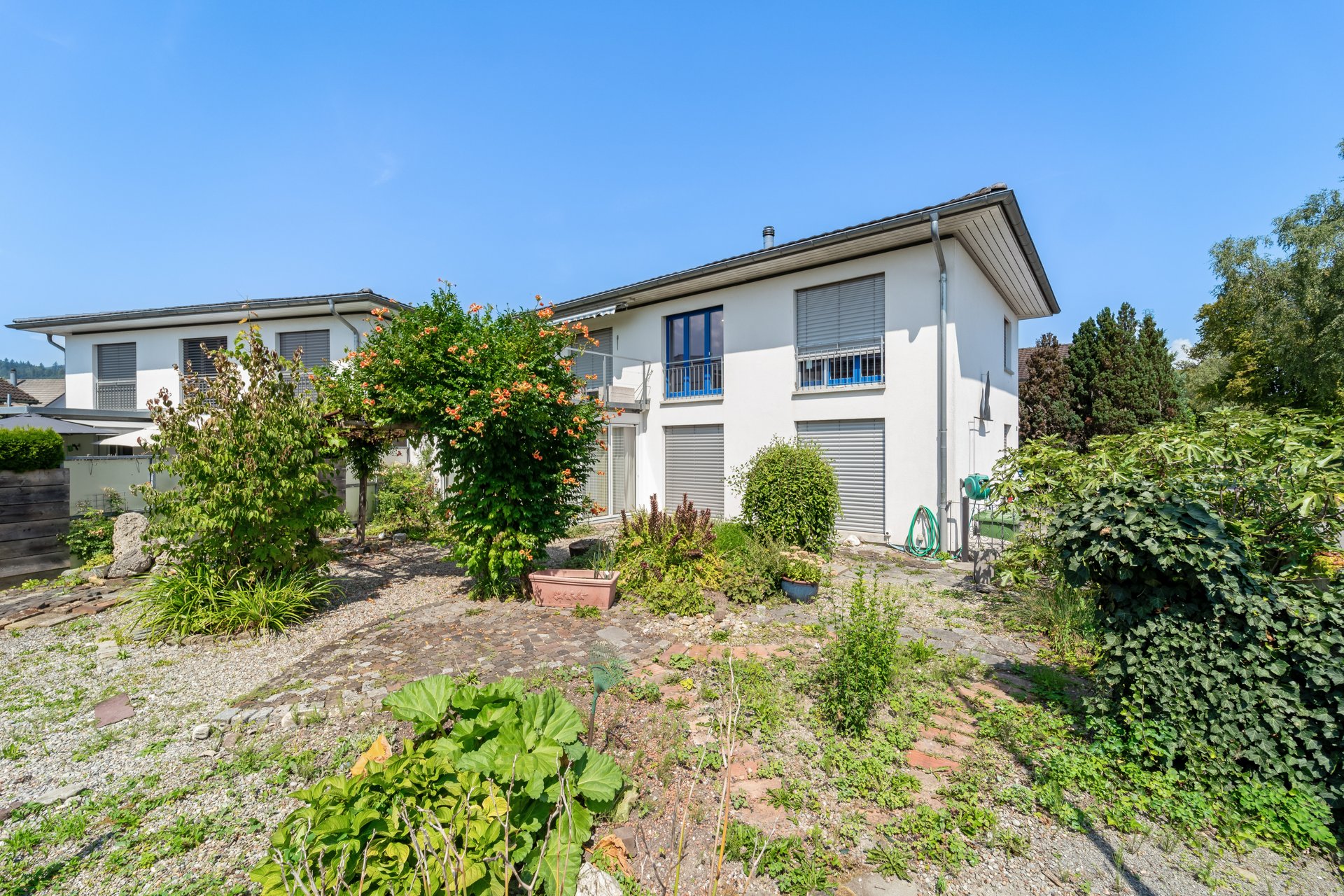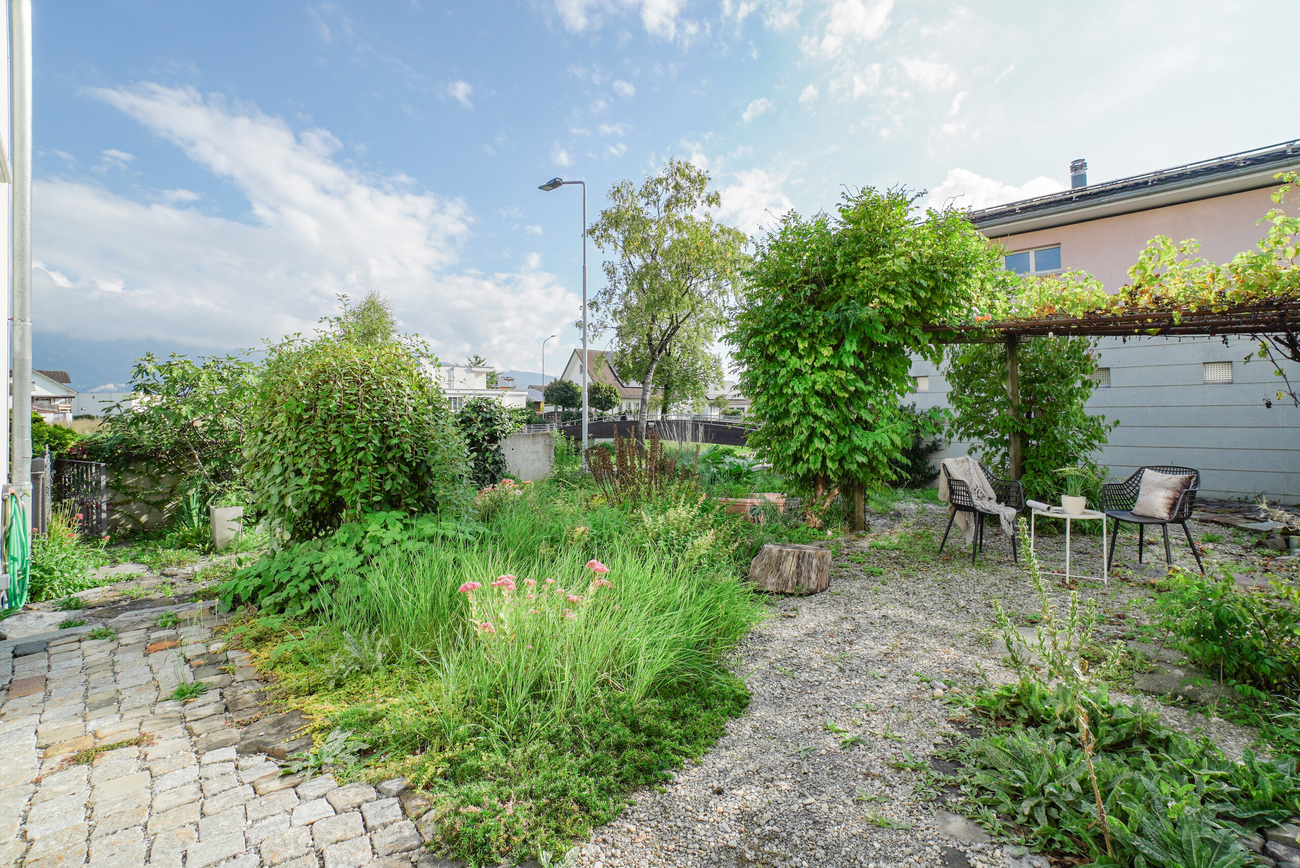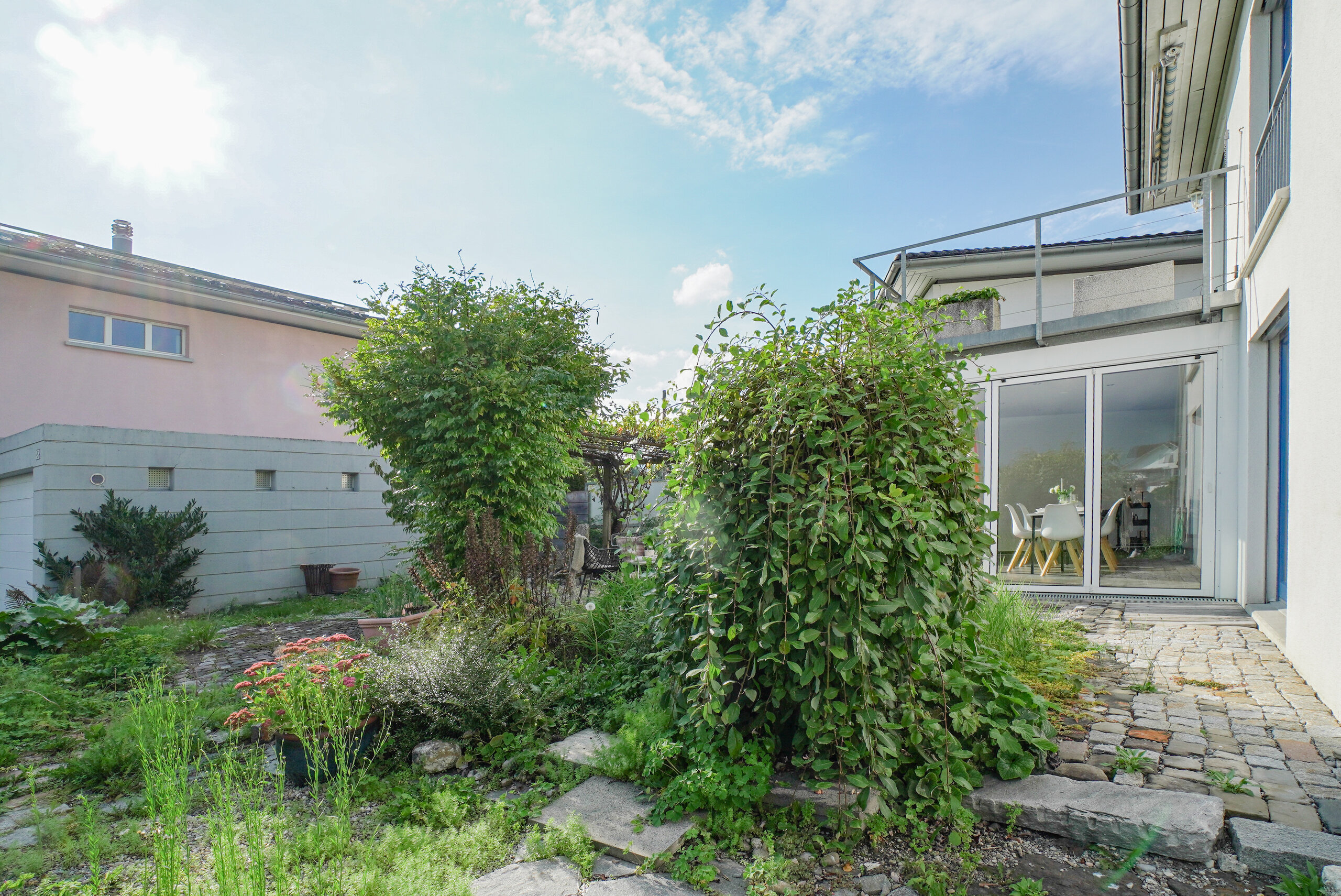 Der Aussenbereich bietet viel Raum für individuelle Gestaltungsmöglichkeiten. Neben einer Pergola und gepflegter Grünfläche bestehen vielfältige Optionen, den Garten nach eigenen Vorstellungen zu nutzen.