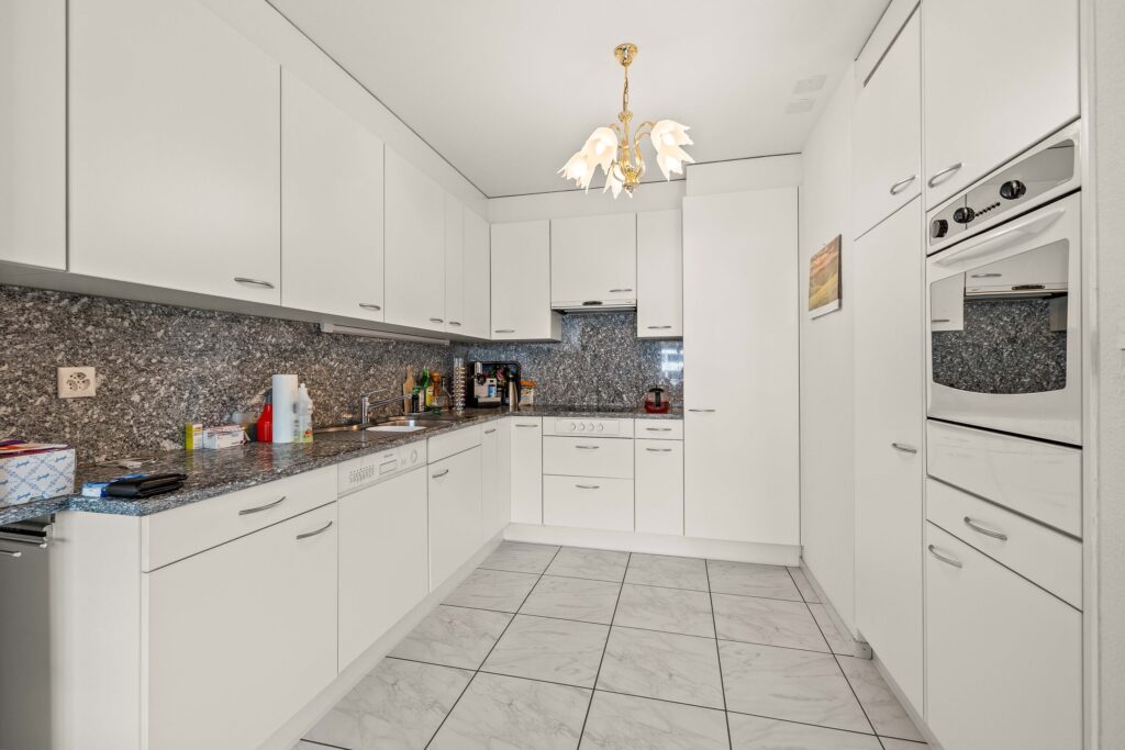 Der grosszügige und helle Wohn- und Essbereich überzeugt mit direktem Zugang zum gedeckten Balkon – ideal für entspannte Stunden oder gesellige Abende. Die offene Küche mit Granitabdeckung und viel Stauraum ergänzt das Herzstück der Wohnung perfekt.