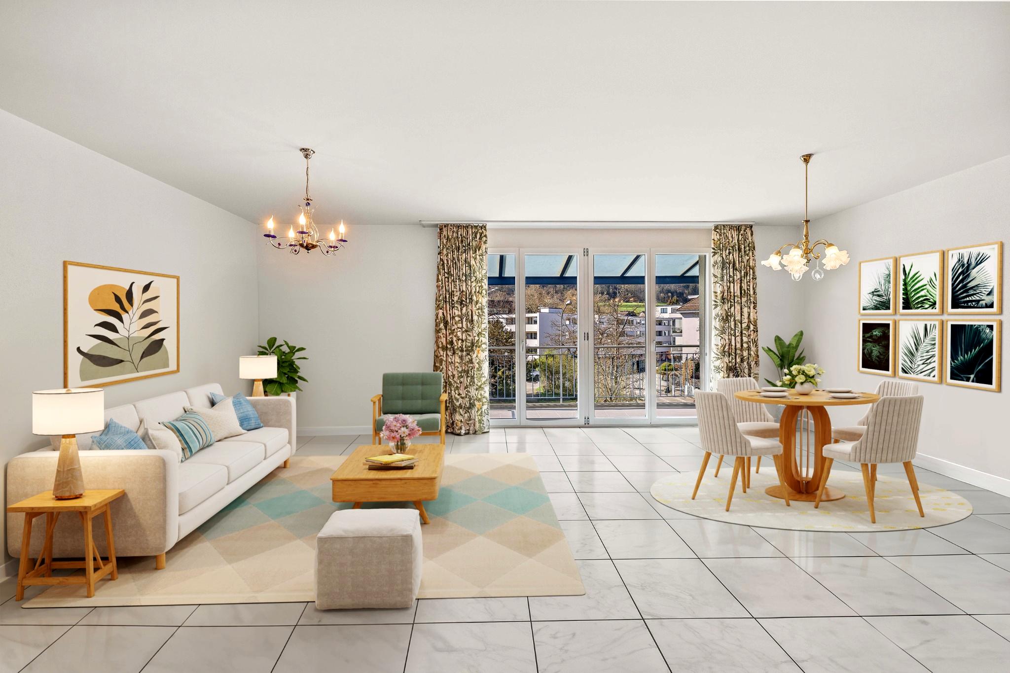 - Wohn- und Essbereich: Grosser, offener und heller Wohn- und Essbereich mit direktem Zugang zum gedeckten Balkon