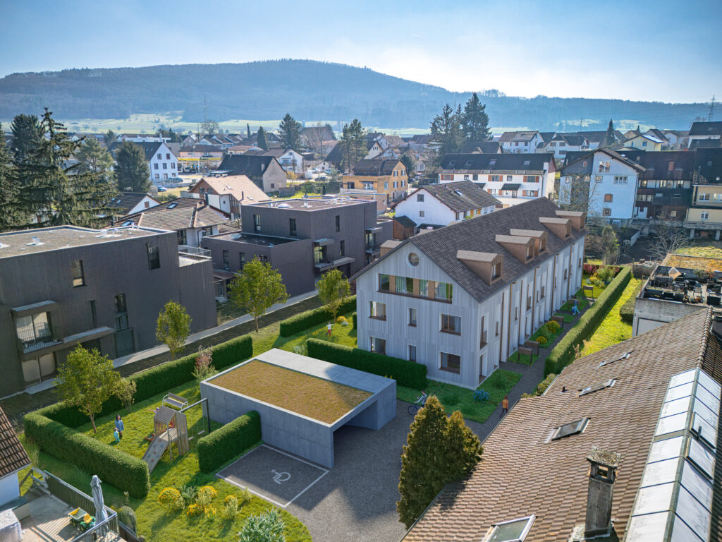 - Parkierung: Je Haus 2 Parkplätze (total 10), 1 Besucherparkplatz sowie 25 Veloabstellplätze