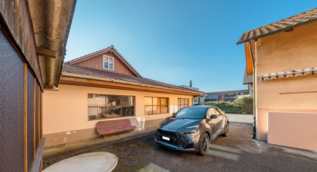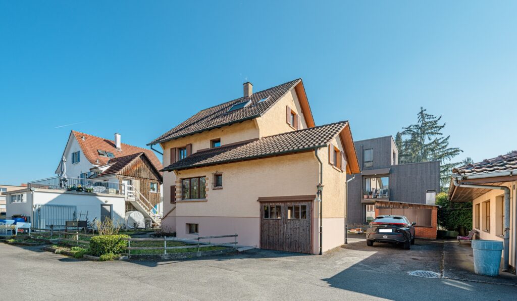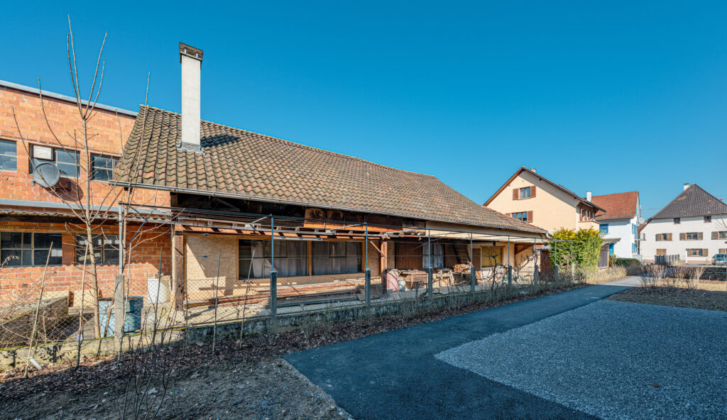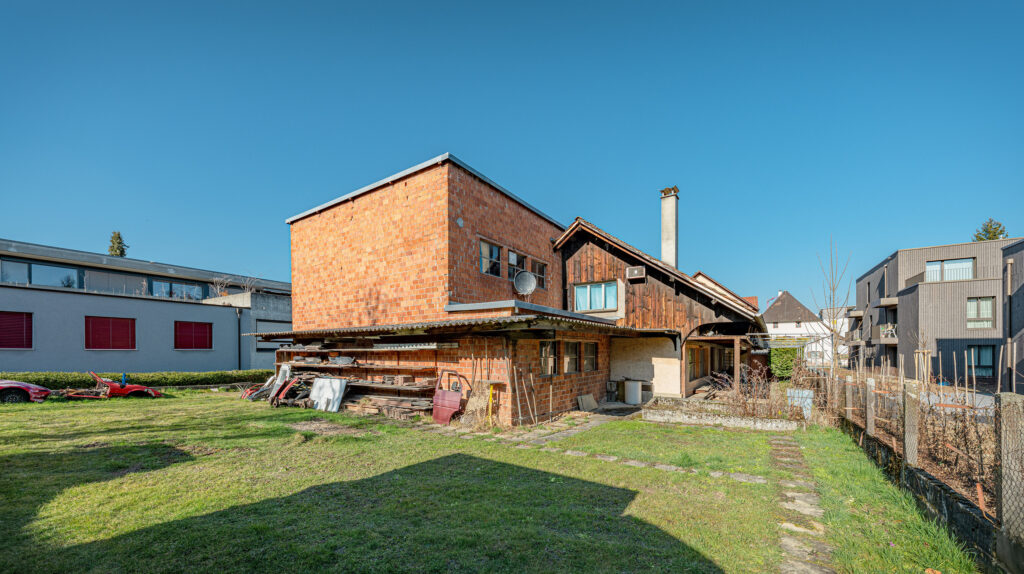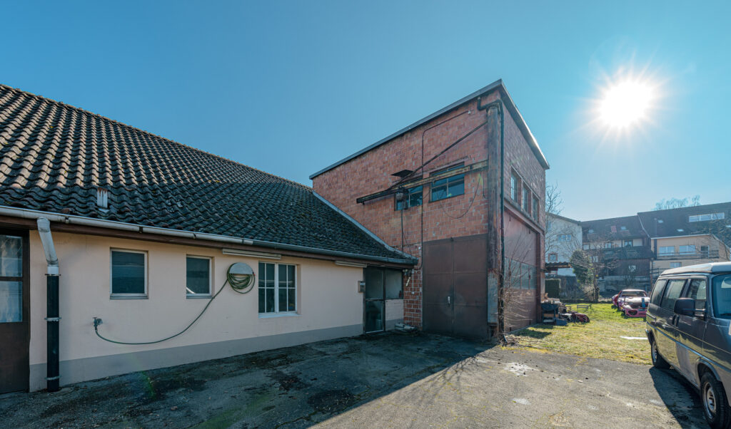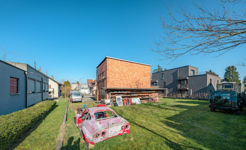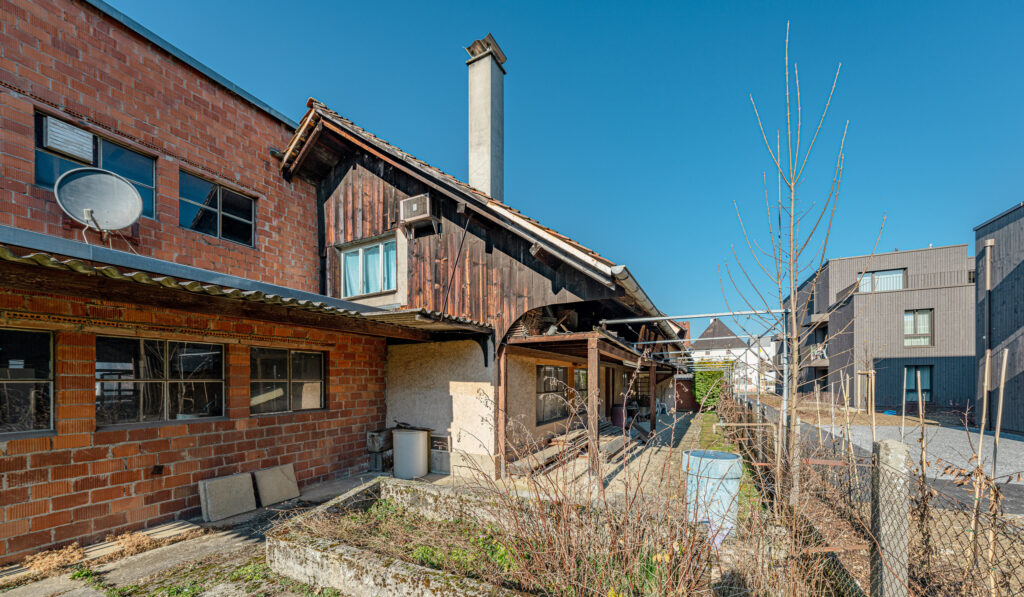 Aktuell stehen auf dem Areal ein Mehrfamilienhaus mit 255 m² Nutzfläche sowie ein vermieteter Gewerbebau mit 346 m² – eine spannende Übergangsnutzung mit Einnahmen bis zum Baustart.