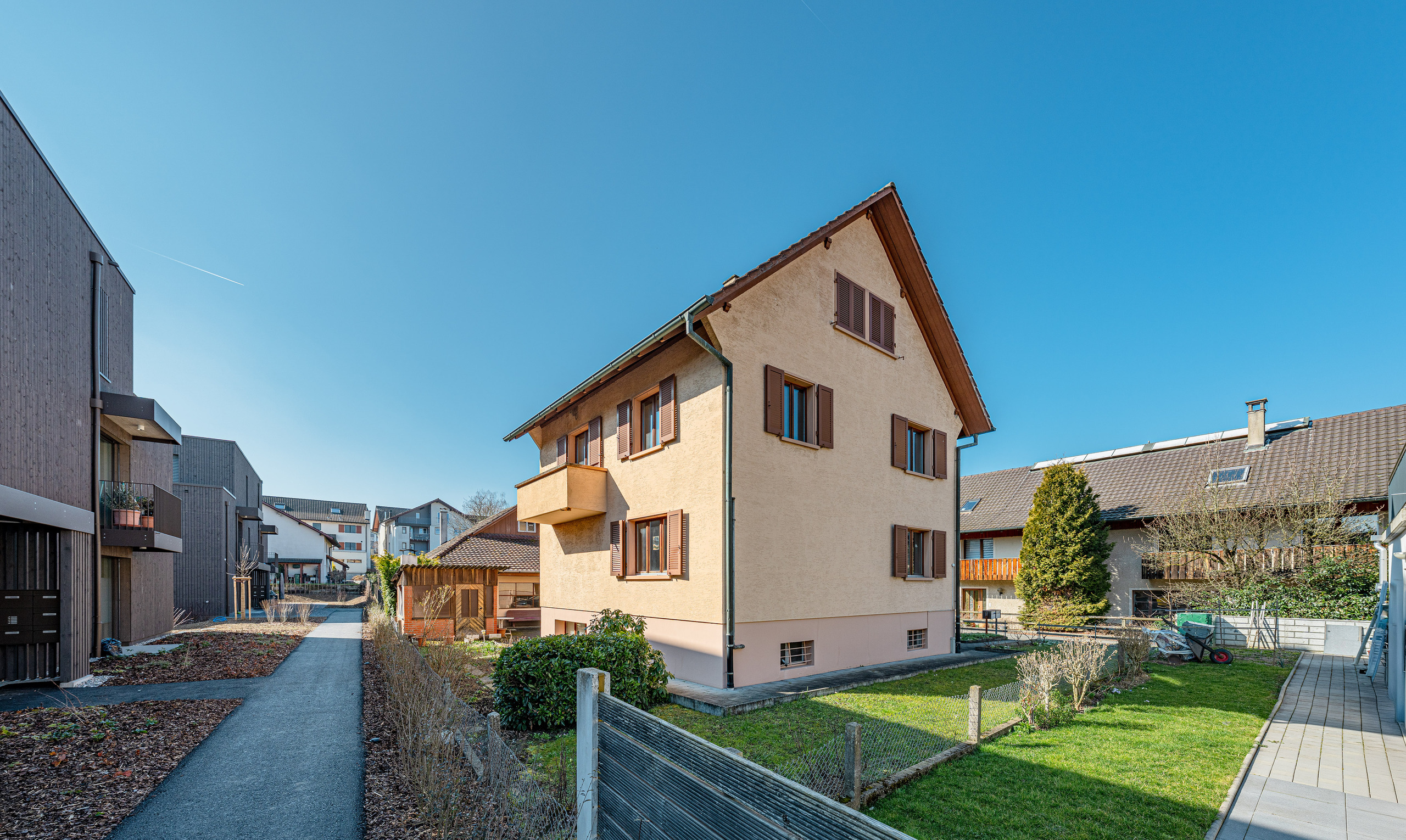 Eine vorliegende Projektstudie zeigt das Potenzial: fünf moderne Reiheneinfamilienhäuser mit jeweils 5.5 Zimmern und ca. 162.9 m² Nettowohnfläche. Dazu kommen je Haus zwei Parkplätze, ein Besucherparkplatz, 25 Veloabstellplätze und eine 146 m² grosse Spielfläche – ideal für Familien.