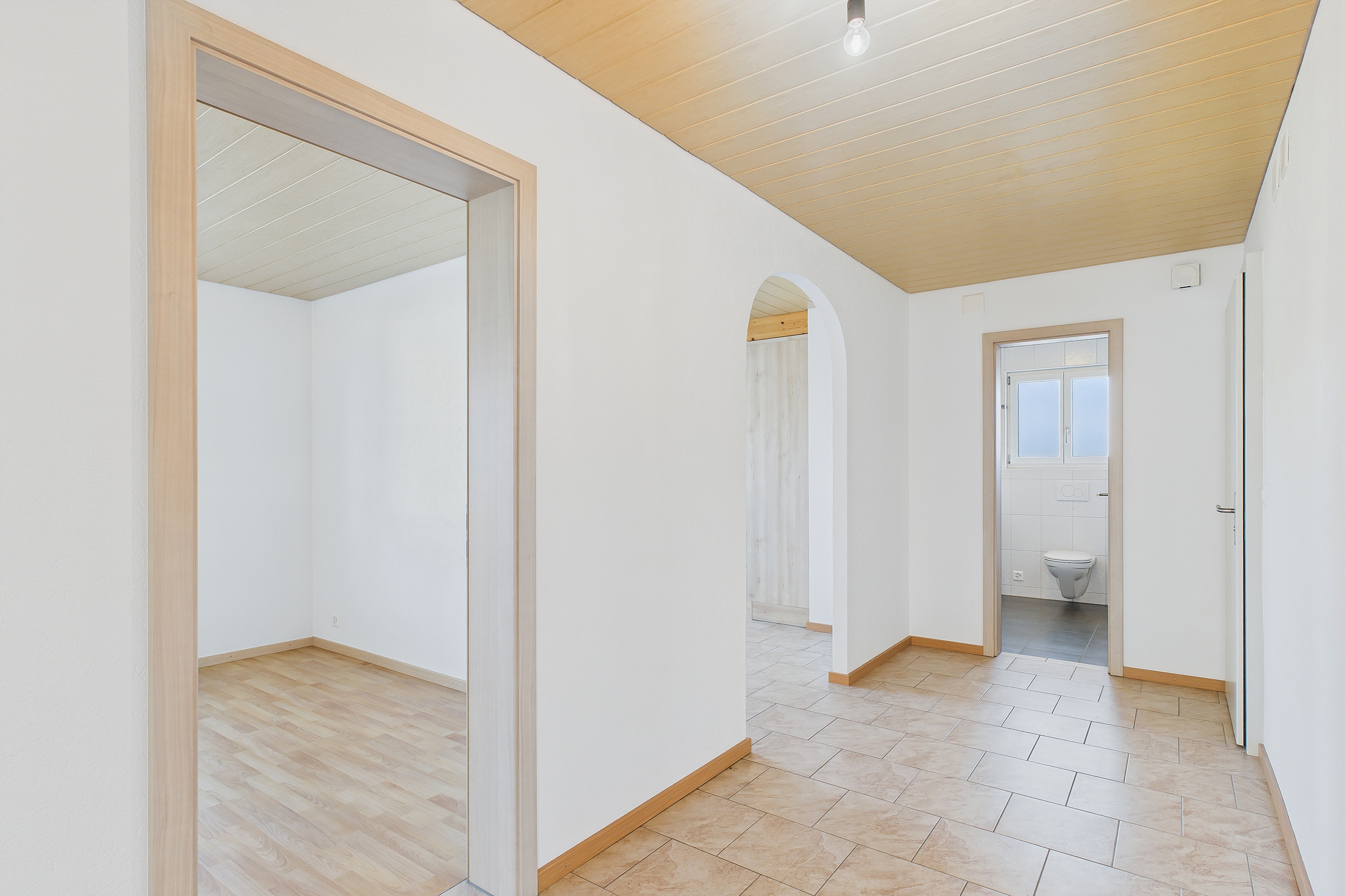 Eine 2.5-Zimmer-Wohnung sowie eine 3.5-Zimmer-Wohnung mit Balkon oder Terrasse stehen zur Verfügung. Eine der Wohnungen ist vermietet, die andere aktuell frei – eine ideale Kombination aus laufenden Mieteinnahmen und flexibler Nutzung.