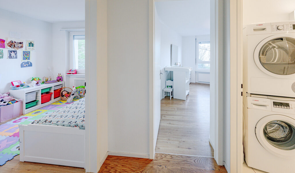 - Praktische Nebenräume: Eigener Keller, gemeinschaftlich genutzte Waschküche sowie Veloraum