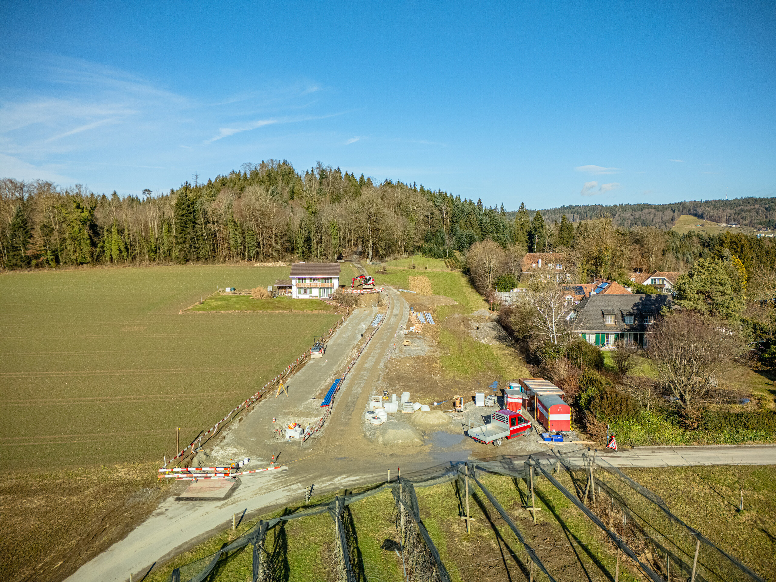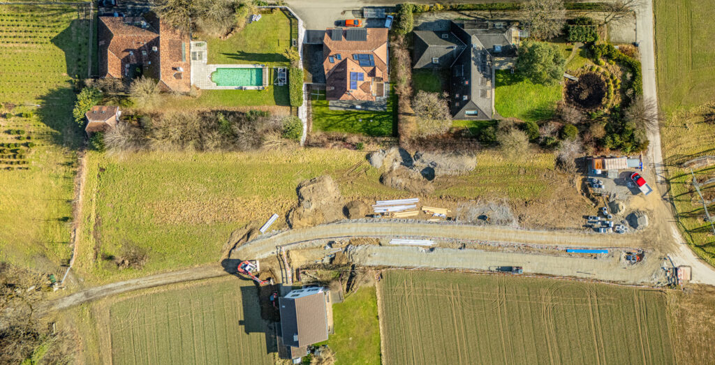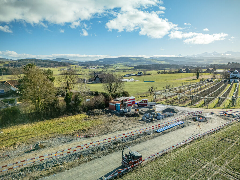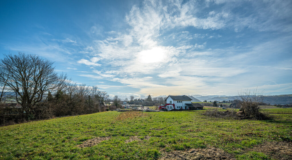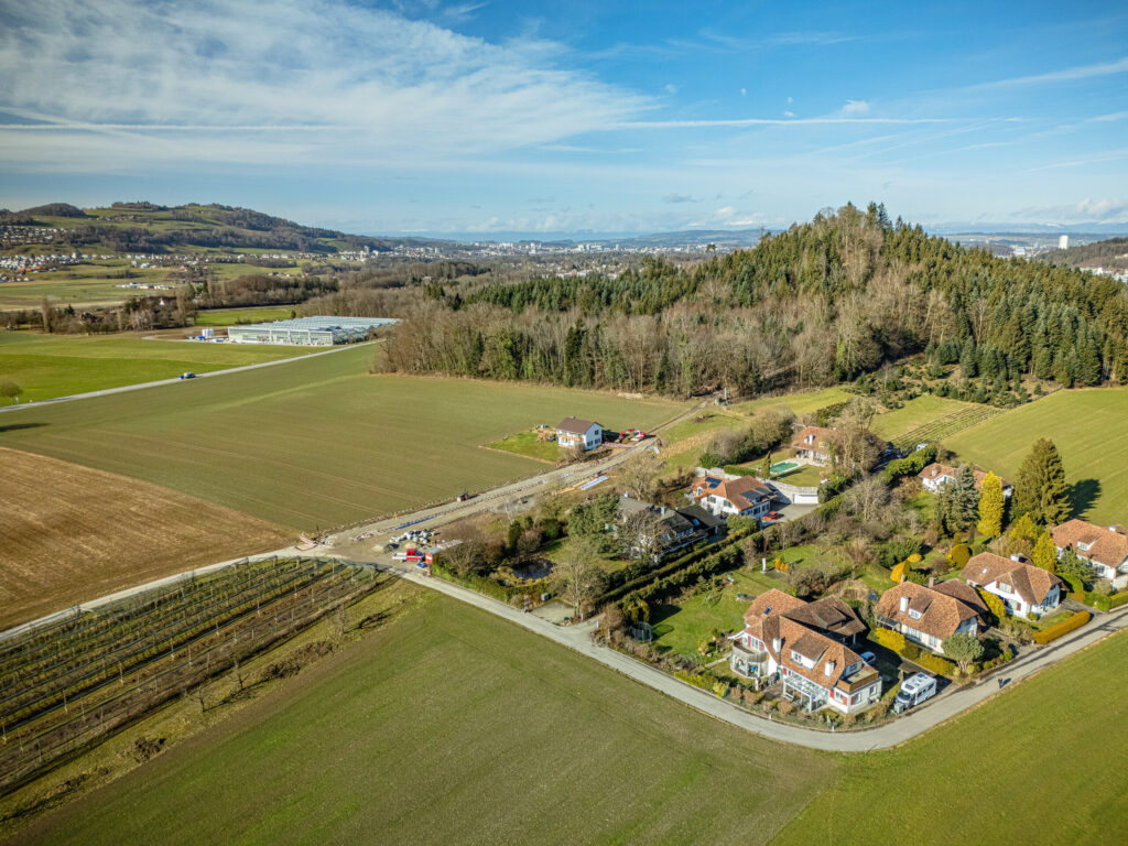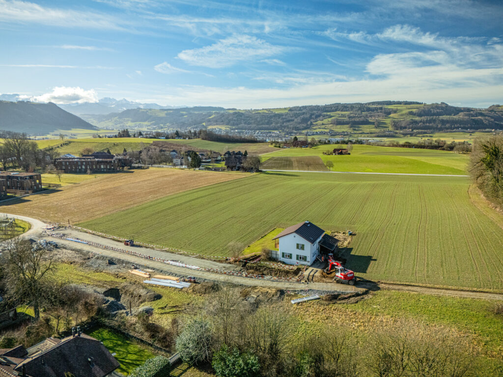 In Allmendingen bei Bern entsteht ein Neubauprojekt mit sechs Einfamilienhäusern, das modernen Wohnkomfort mit ländlicher Idylle verbindet. Statt maximaler Verdichtung setzt das Projekt auf grosszügige Freiräume, eine harmonische Architektur und eine eindrucksvolle Aussicht auf die Voralpen und Alpen. Eine verkehrsberuhigte Spielstrasse schafft zusätzlichen Mehrwert für Familien und sorgt für ein angenehmes Wohnumfeld.