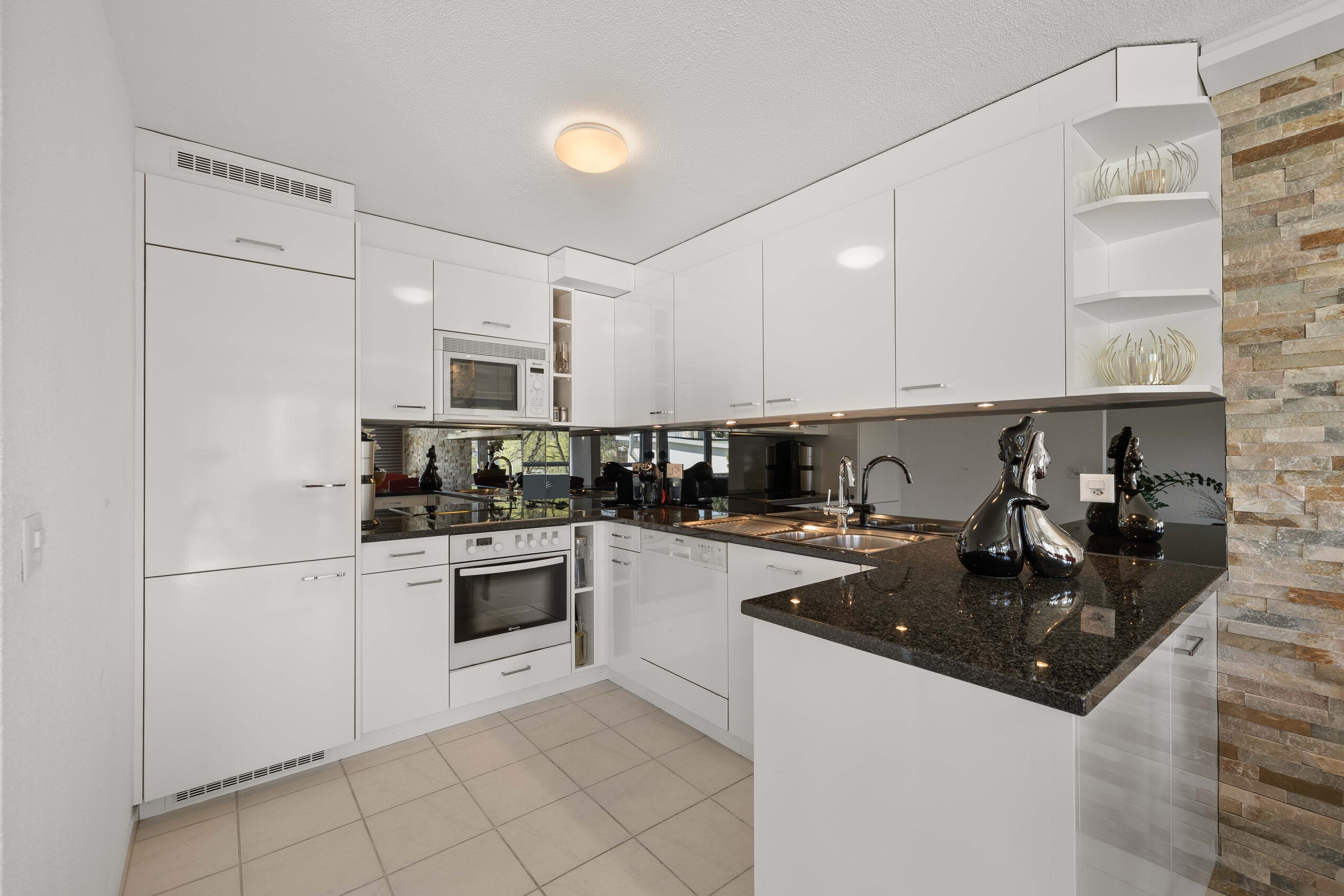 - Küche: Offene Küche mit Granitabdeckung und viel Stauraum