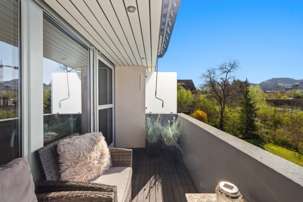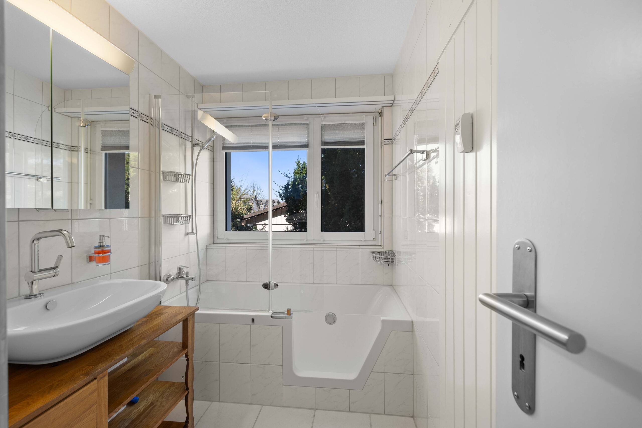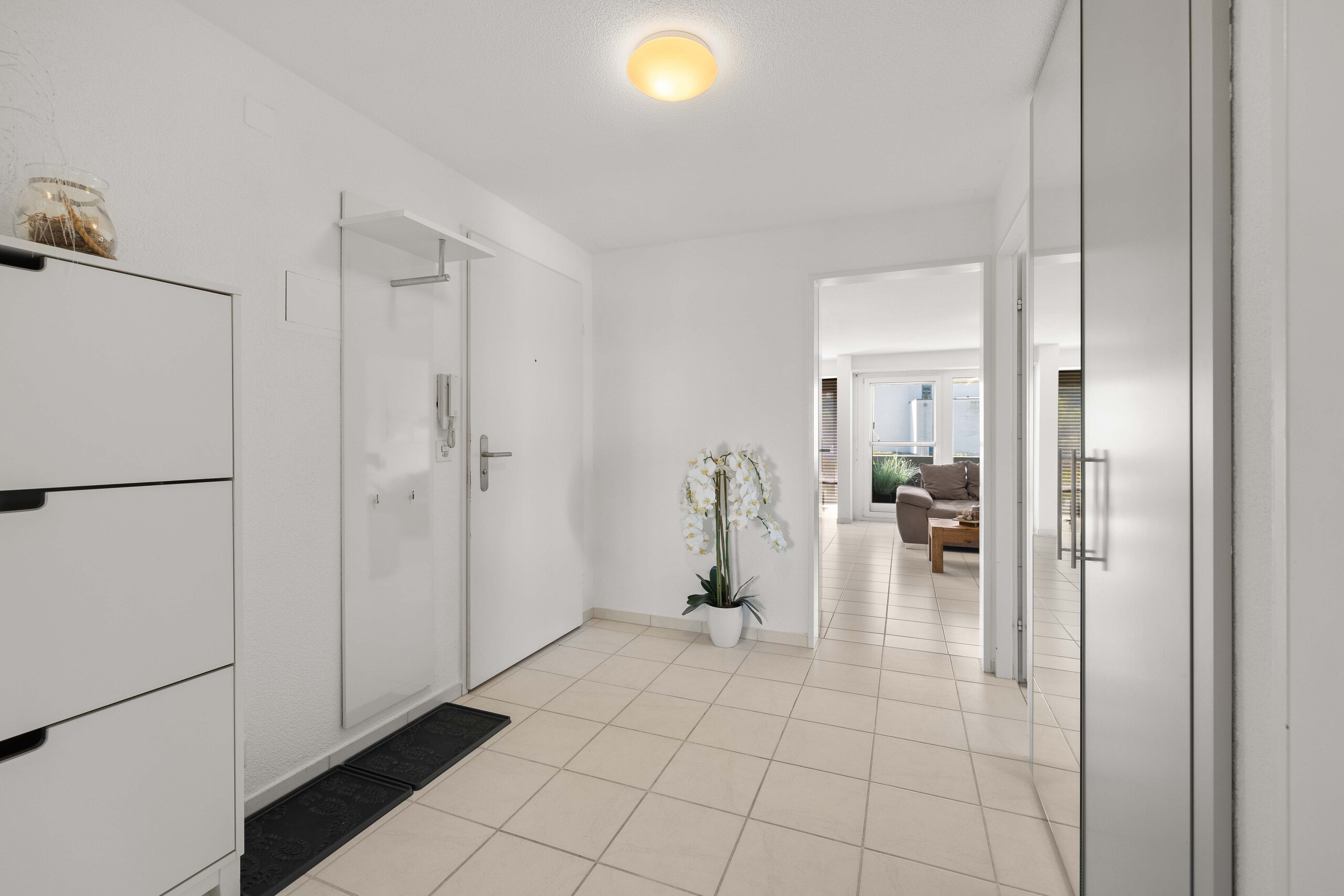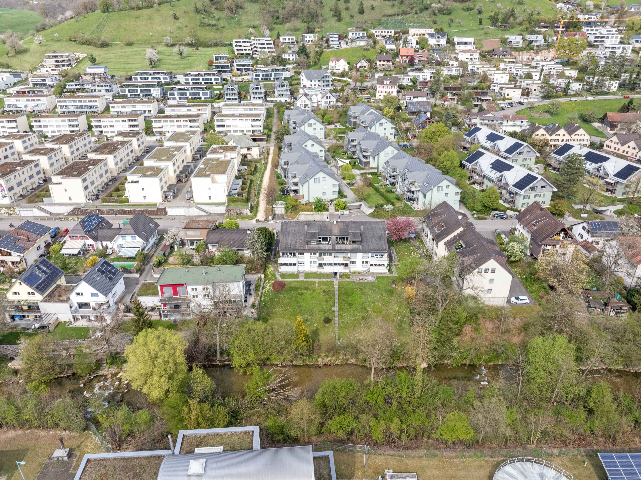 Direkt am ruhigen Bächlein gelegen und mit Blick auf eine grosszügige Grünfläche bietet diese gepflegte Wohnung ein ideales Zusammenspiel aus Lage, Komfort und durchdachter Raumaufteilung. Auf 87 m² Wohnfläche verteilt auf 3.5 Zimmer sowie ein separates Zusatzzimmer mit eigener Nasszelle eignet sich das Objekt für Familien, Paare oder Selbständige, die Wohnen und Arbeiten flexibel kombinieren möchten.