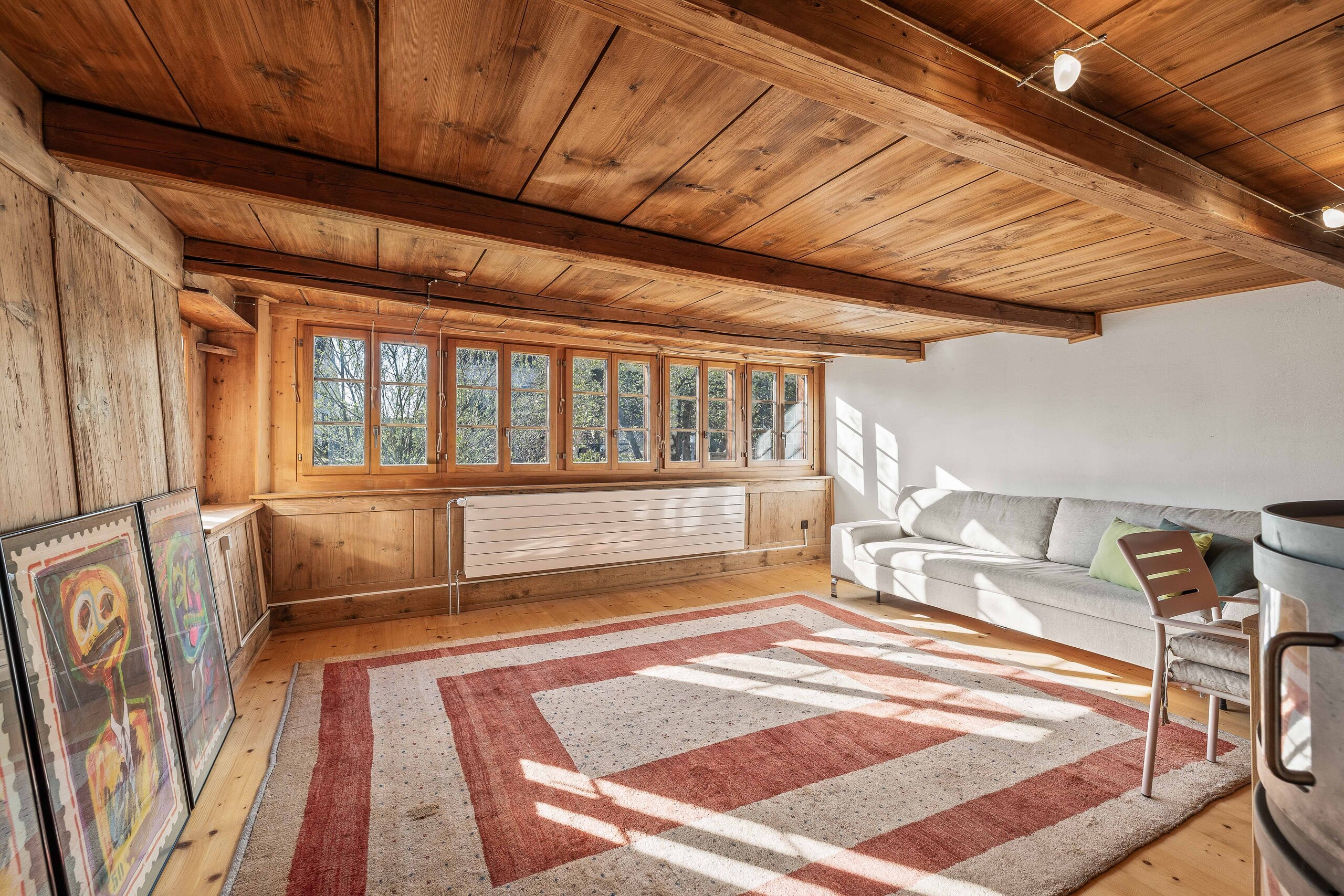 • Wohn- und Essbereich: Grosser, offener und heller Wohn-/Essbereich mit gemütlichem Schwedenofen