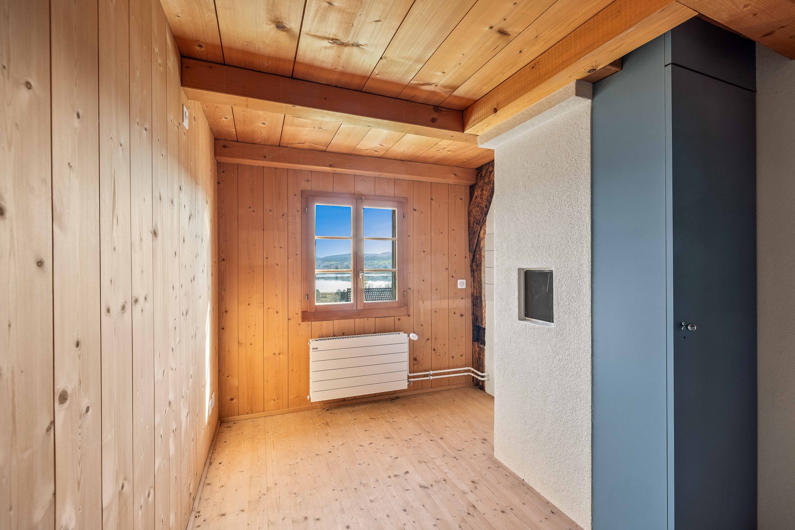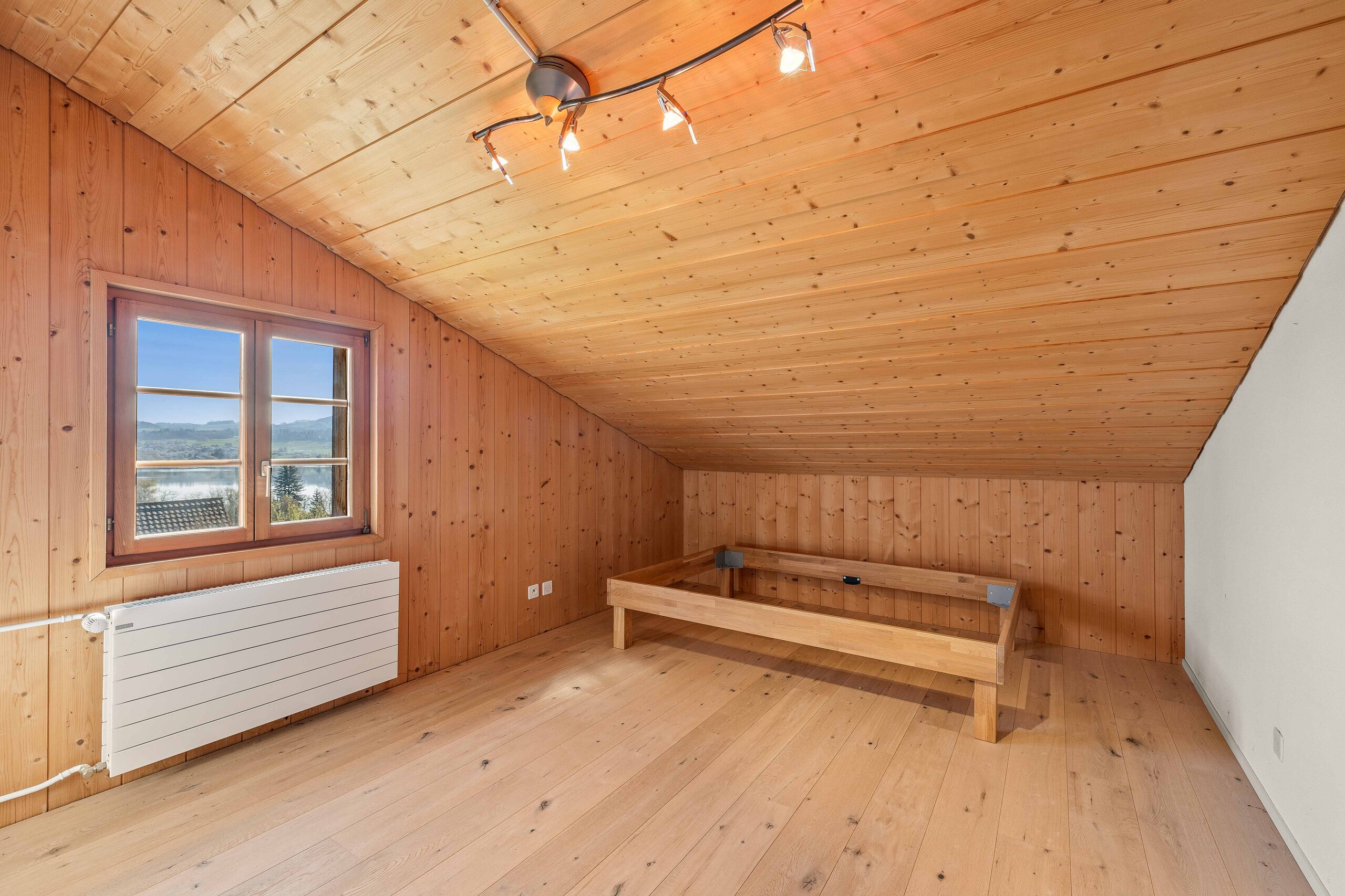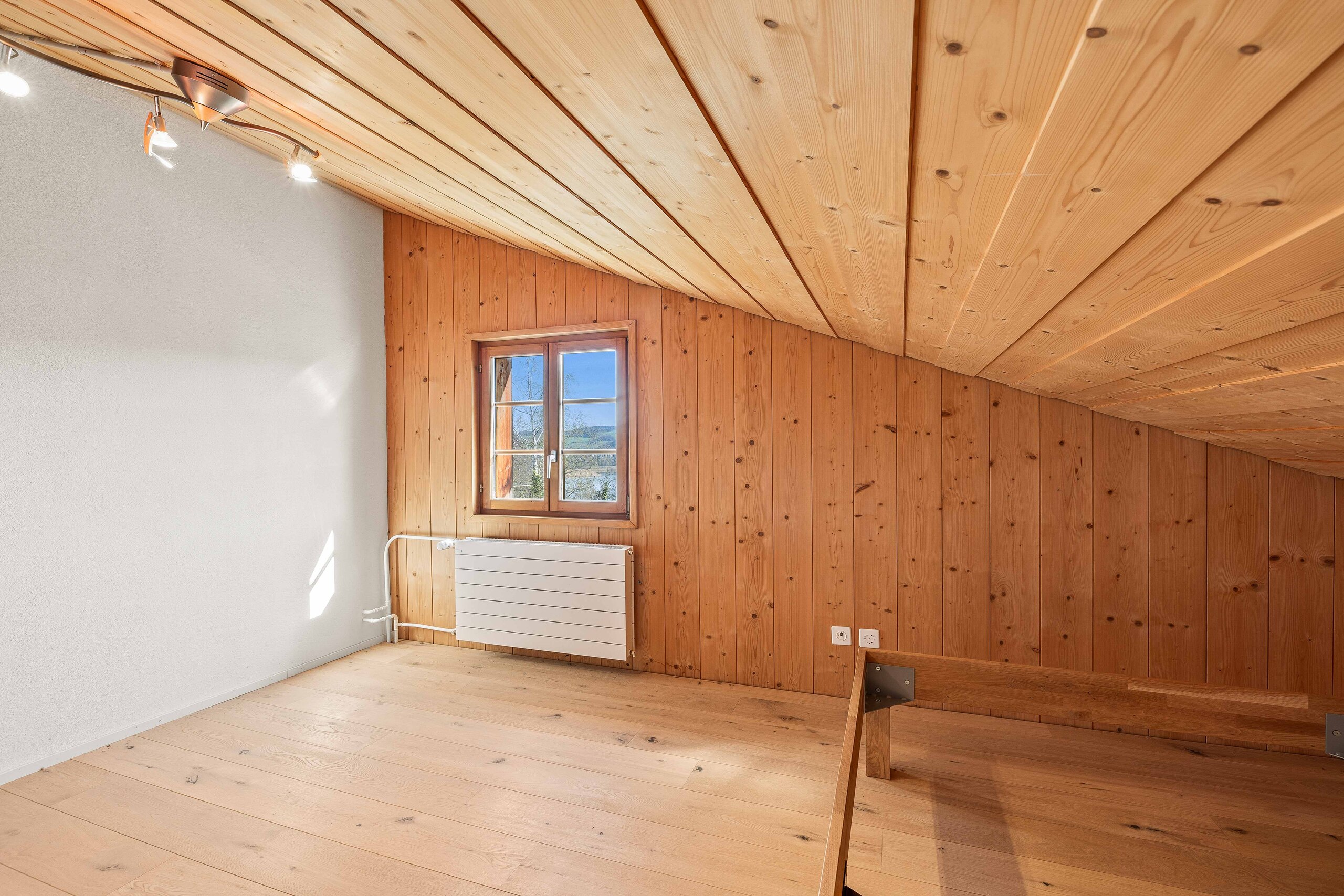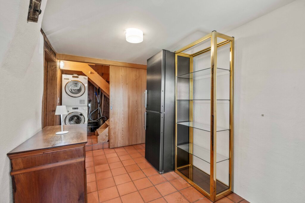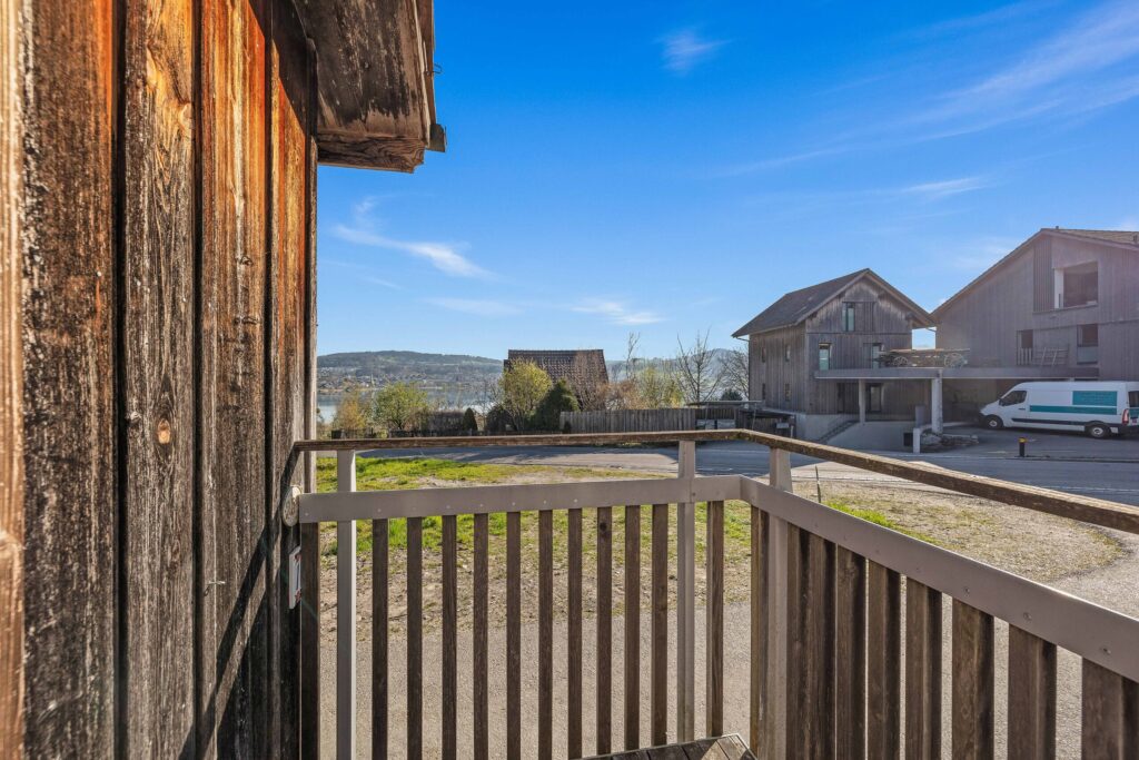 Ein moderner Nassbereich mit Bad/WC und integriertem Wäscheturm sorgt für zusätzlichen Komfort. Ein kleiner Balkon im Erdgeschoss eröffnet den Blick auf den idyllischen Pfäffikersee – ein feines Highlight mit viel Charme.