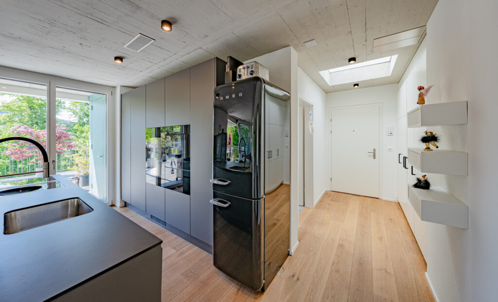 In ruhiger, naturnaher Umgebung steht diese gepflegte 3.5-Zimmer-Attikawohnung zum Verkauf, die mit hochwertigem Ausbau, grosszügiger Terrasse und Minergie-P-Standard überzeugt. Auf 86 m² Wohnfläche mit durchdachter Aufteilung bietet sie modernes Wohnen mit viel Komfort.
