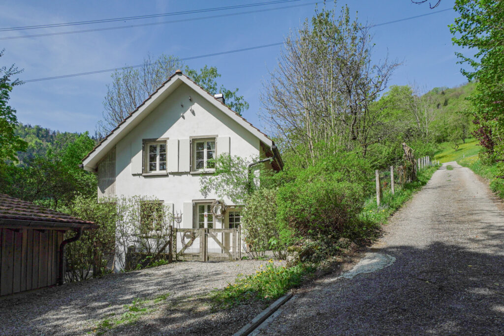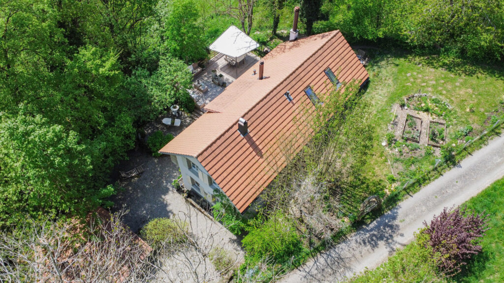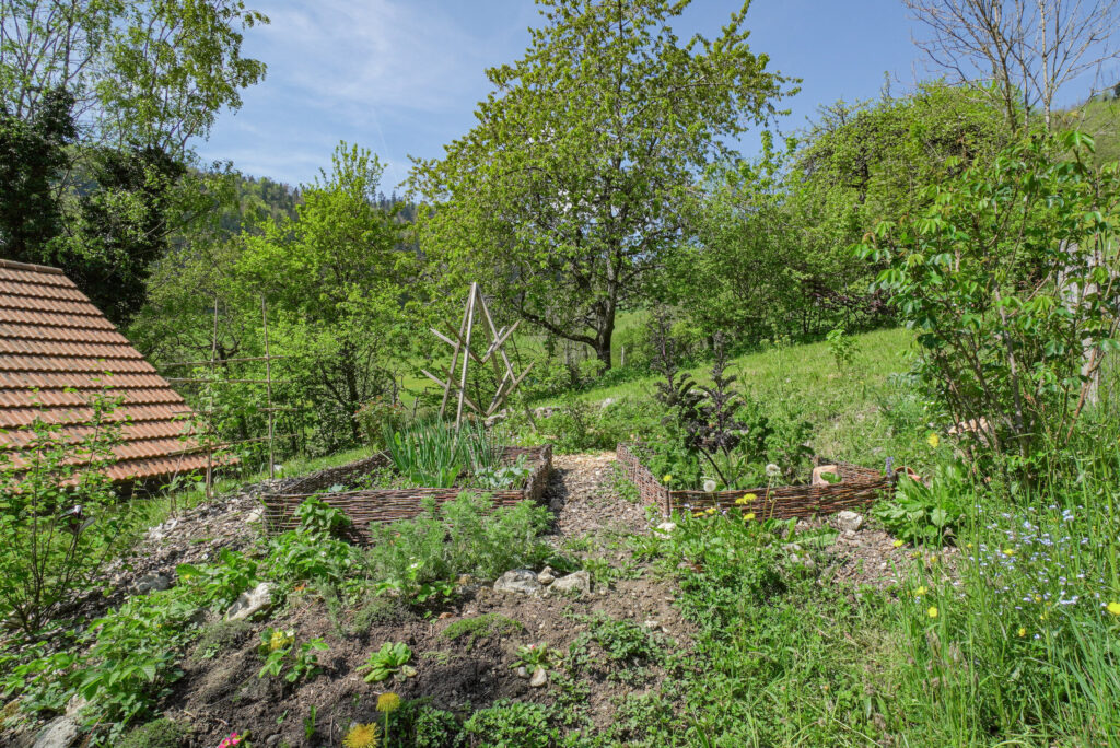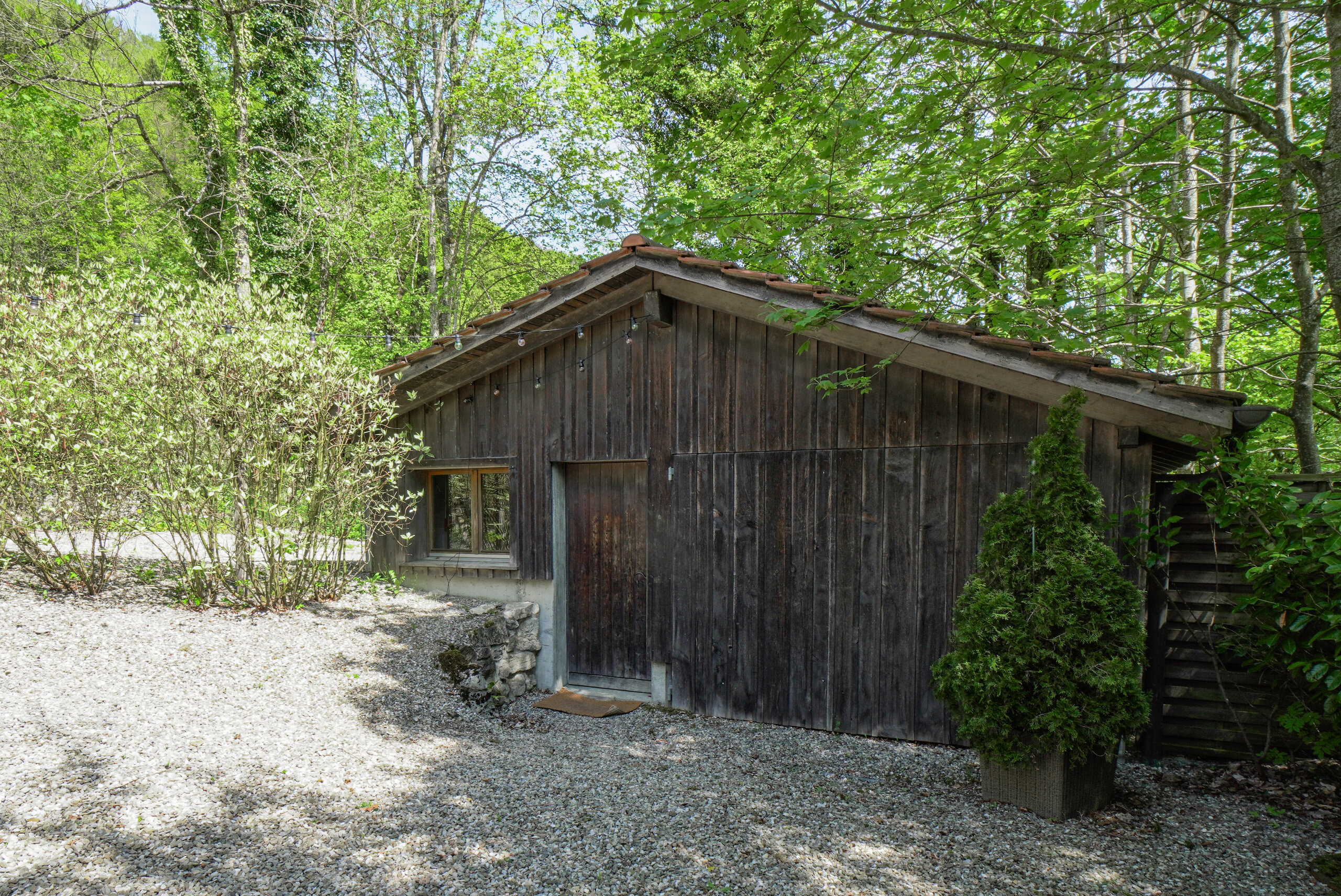 Der Aussenbereich begeistert mit einer weitläufigen Terrasse, einer gemütlichen Sitzlounge, gepflegten Grünflächen und einem praktischen Gartenhaus – eingebettet in eine idyllische Umgebung mit herrlichem Weitblick. Mehrere Aussenabstellplätze bieten genügend Platz für Fahrzeuge.