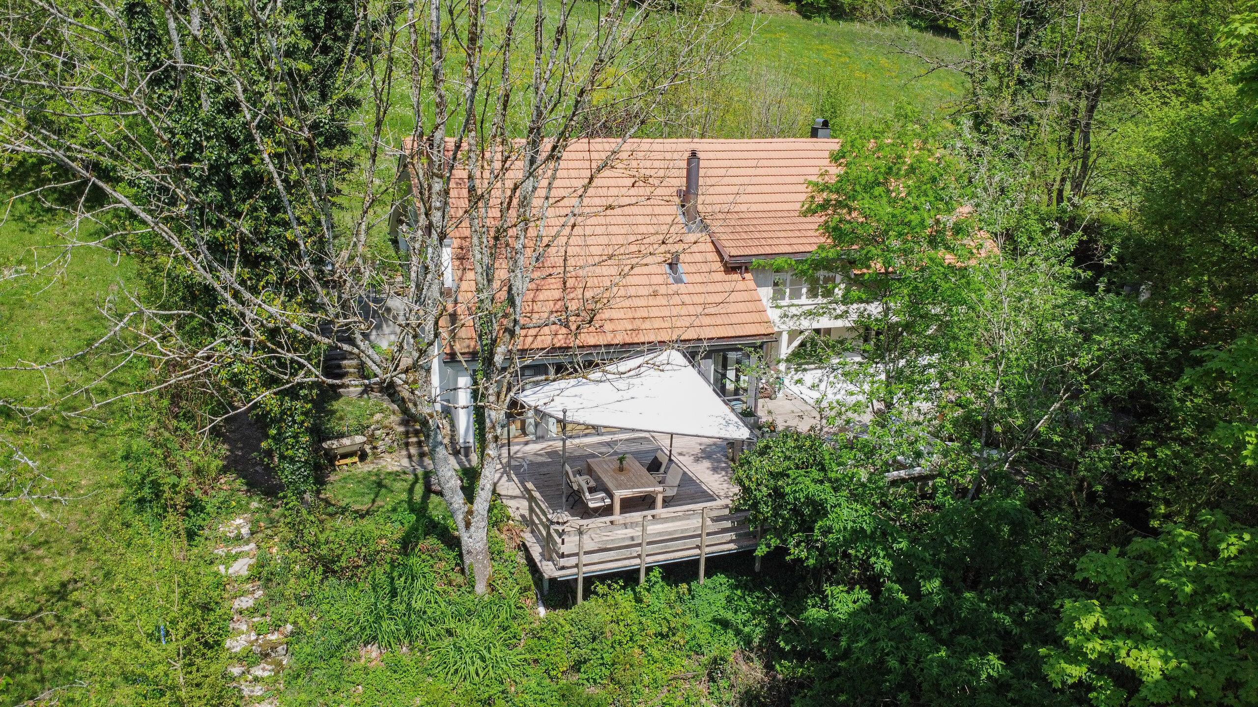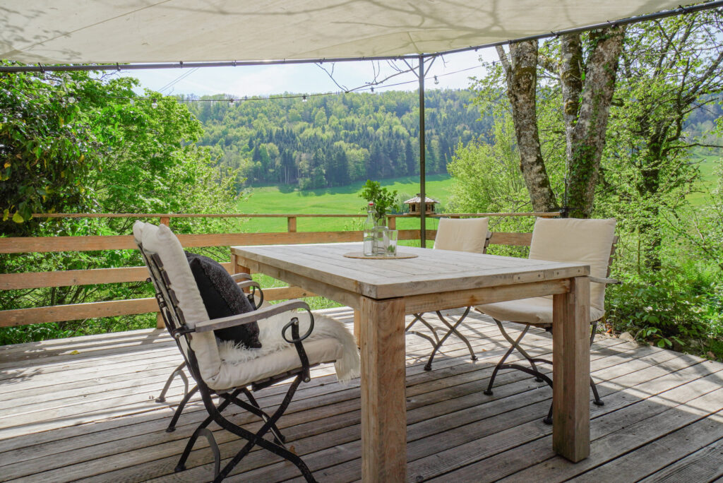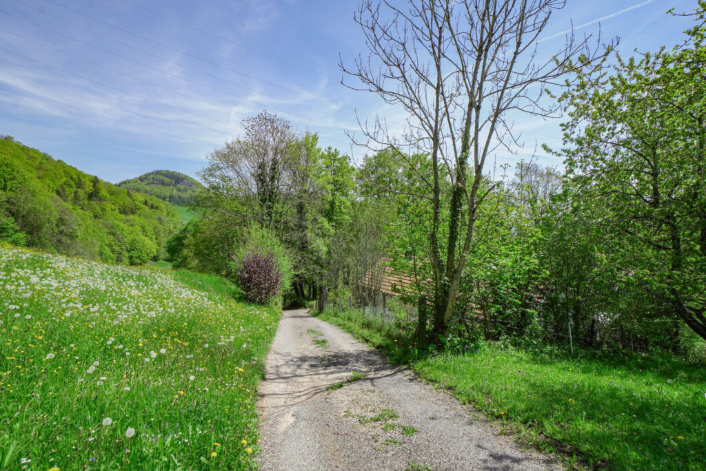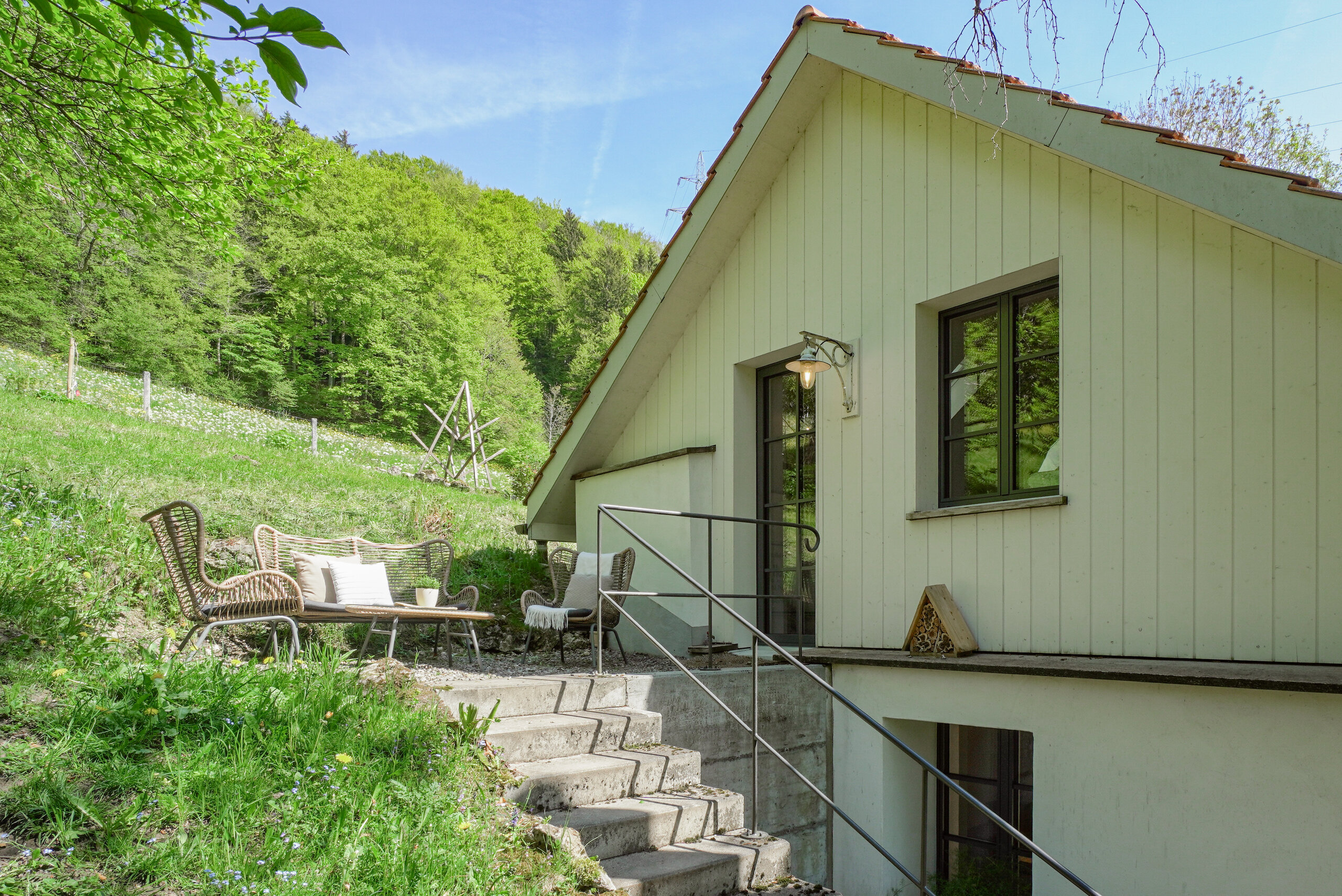 Der Aussenbereich begeistert mit einer weitläufigen Terrasse, einer gemütlichen Sitzlounge, gepflegten Grünflächen und einem praktischen Gartenhaus – eingebettet in eine idyllische Umgebung mit herrlichem Weitblick. Mehrere Aussenabstellplätze bieten genügend Platz für Fahrzeuge.