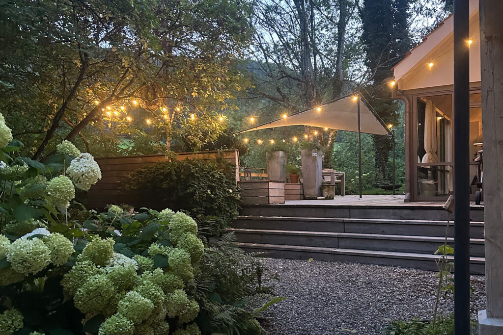 • Grosse Terrasse: Mit einer Sitzlounge, Garten mit grossflächiger, schöner Grünfläche und ein Gartenhaus