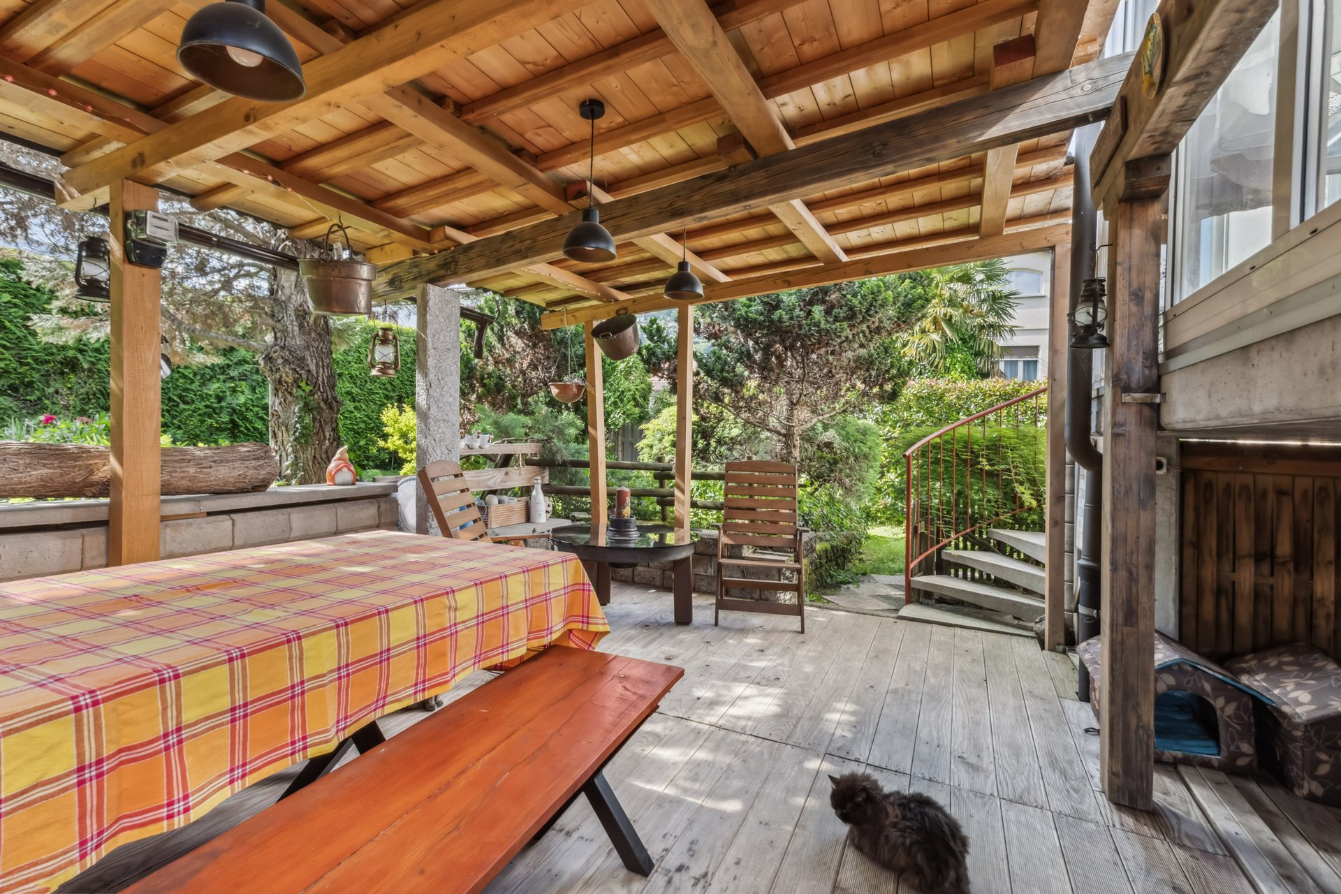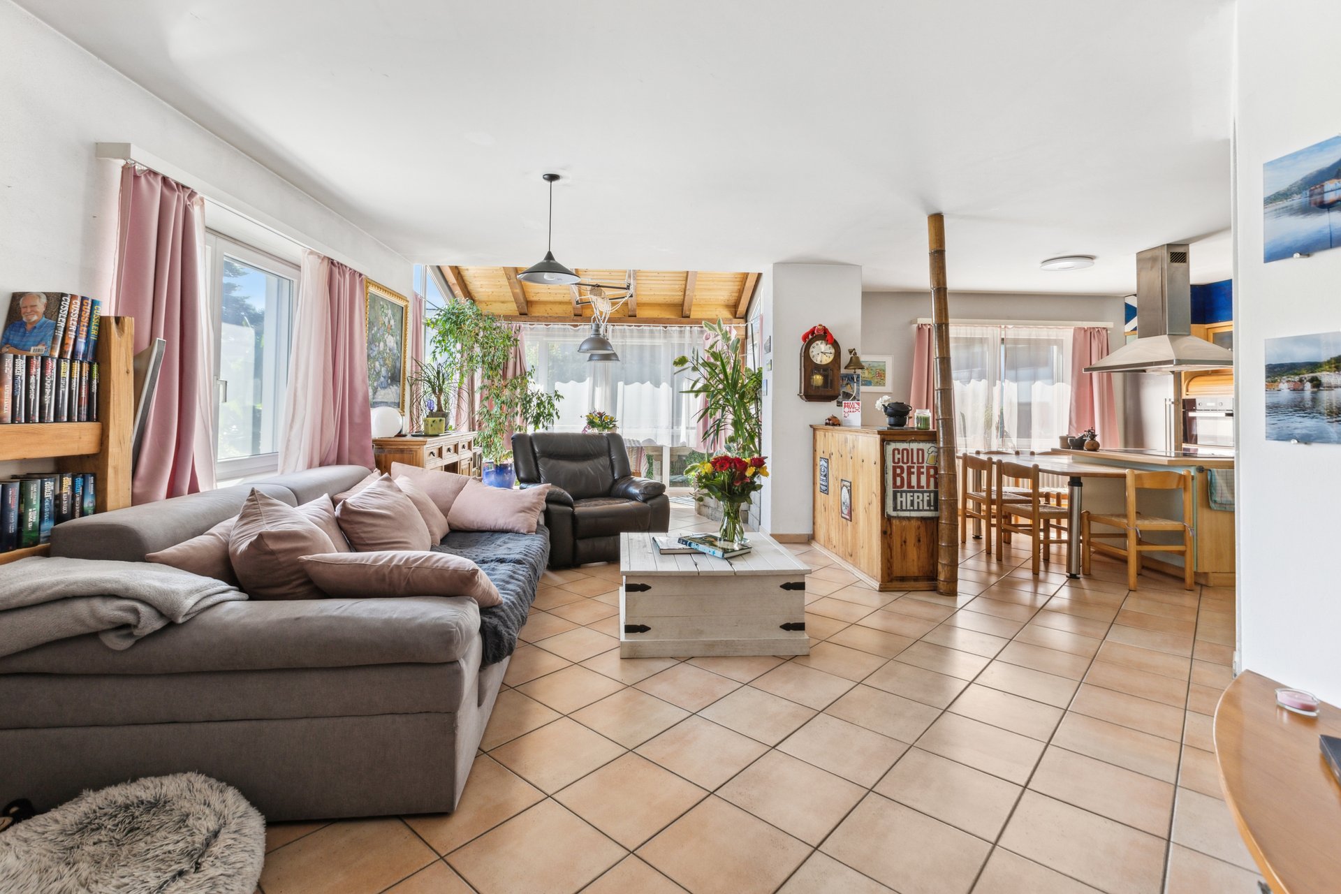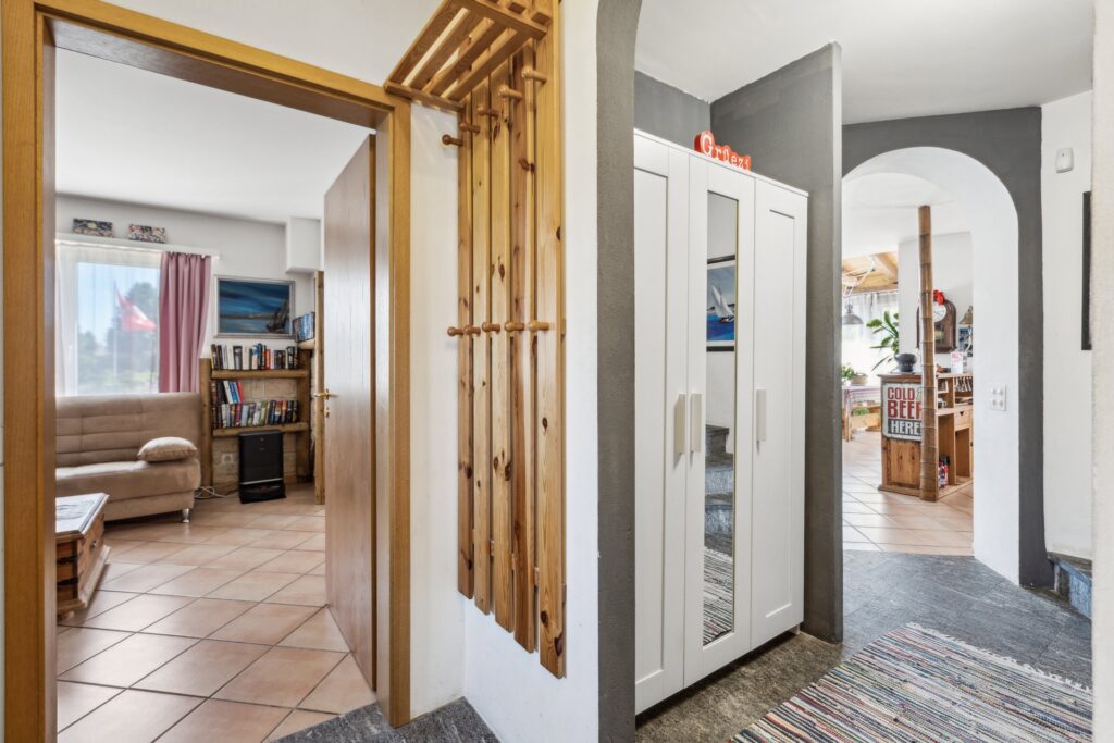 Die Liegenschaft verfügt über eine Gesamt­nutzfläche von 221 m², verteilt auf 6.5 Zimmer und praktische Nebenräume. Der helle Wohn- und Essbereich mit behaglichem Schwedenofen bietet direkten Zugang in den Garten.