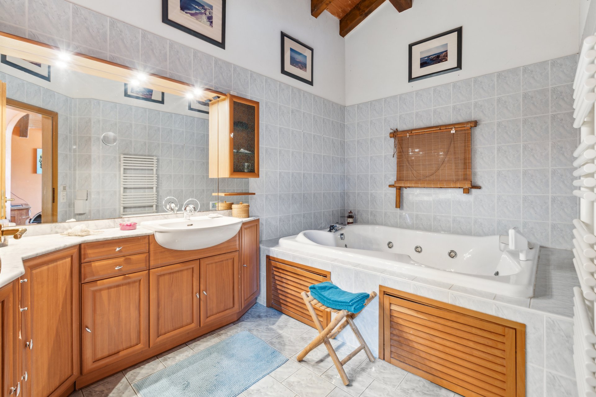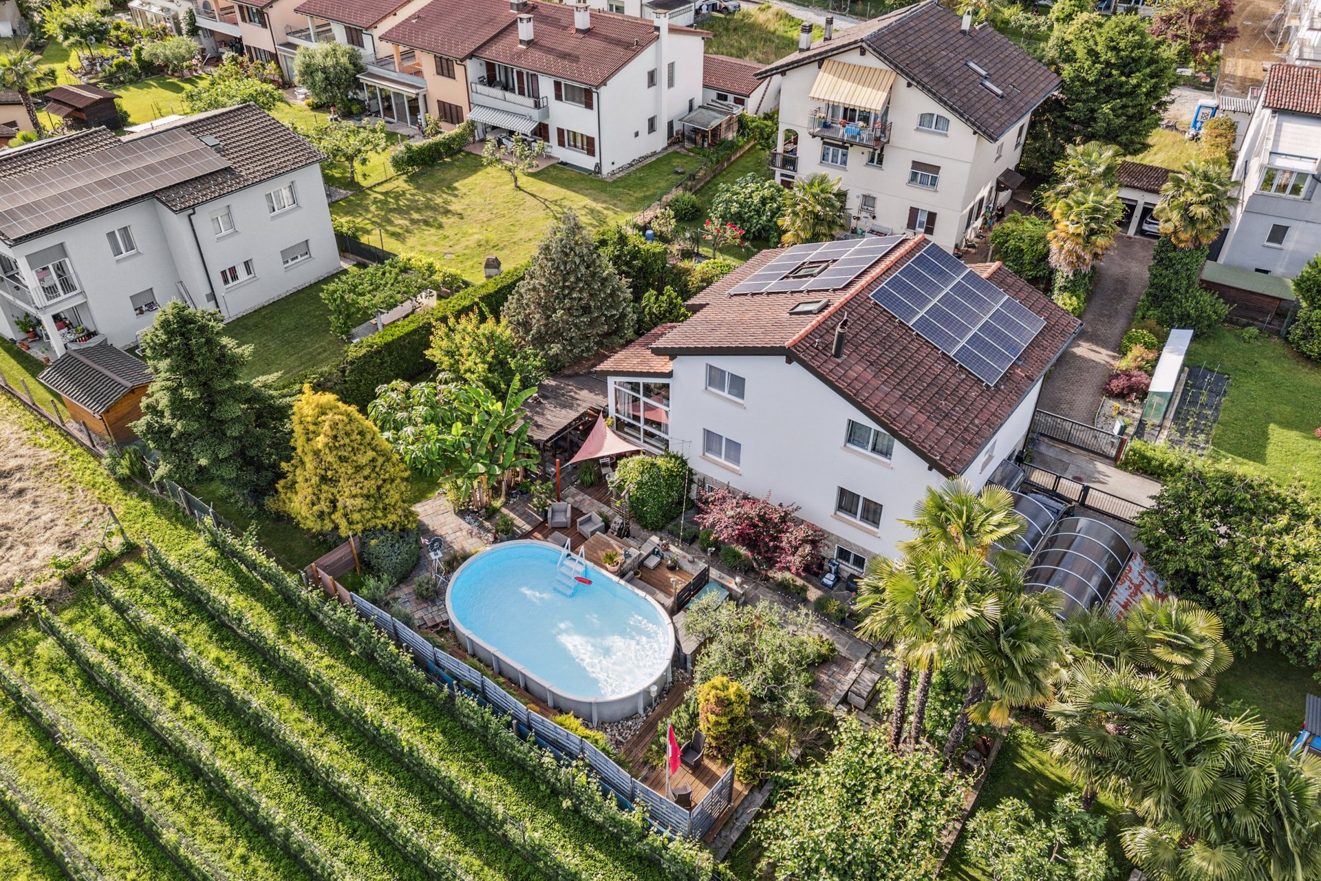 Das Highlight ist die elegant gestaltete Poolzone mit grossem Schwimmbecken und gepflegten Aussenflächen – eine private Oase zum Entspannen. Ergänzt wird das Raumangebot durch praktische Nebenräume wie Waschküche, Abstellraum und Hobbyraum.
