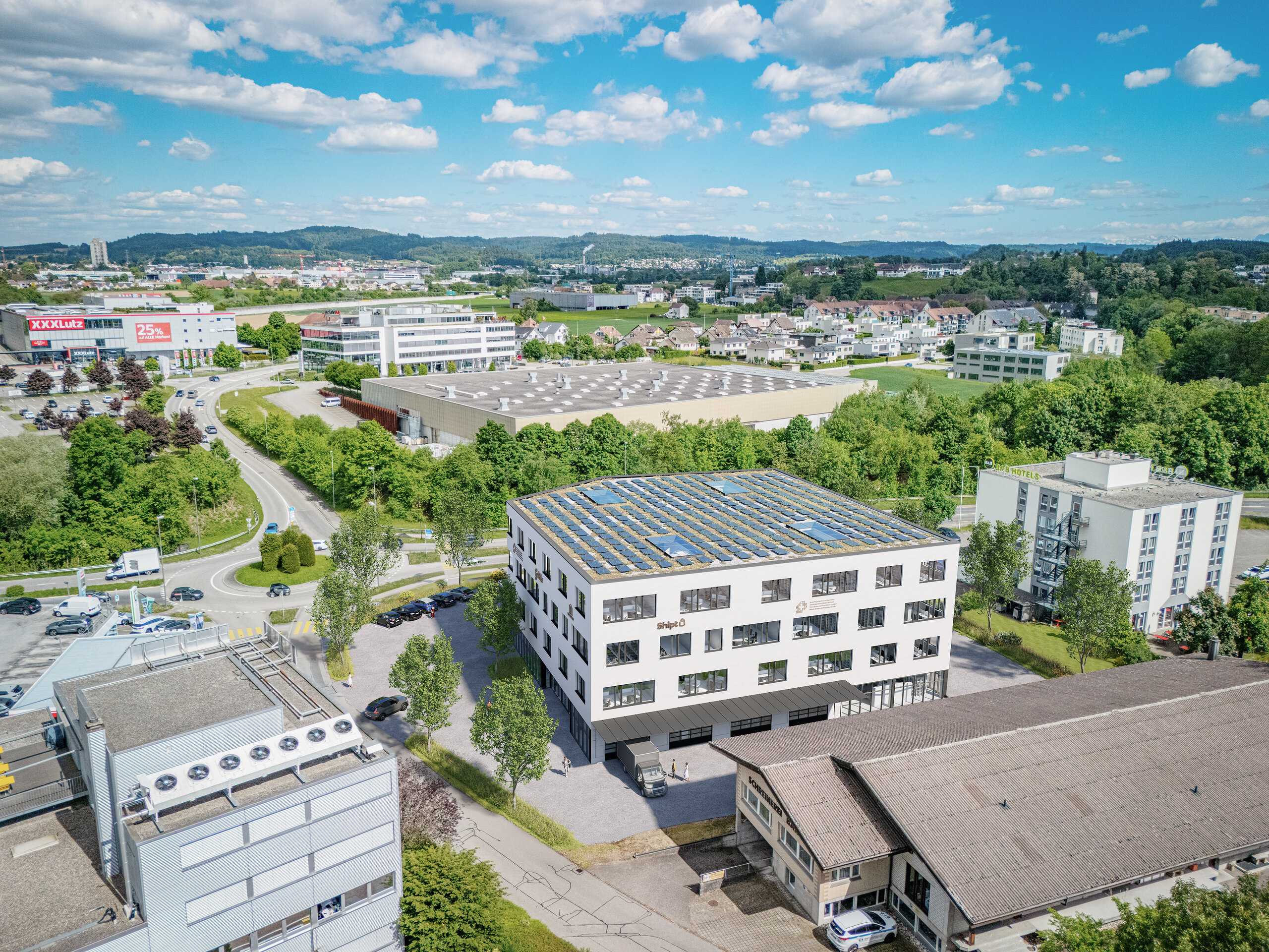 Optional besteht die Möglichkeit, die bestehende Gewerbeliegenschaft weiterzuführen und so eine Kombination aus Bestand und Neubau zu nutzen. Weitere Details dazu finden Sie in unserer separaten Verkaufsdokumentation.