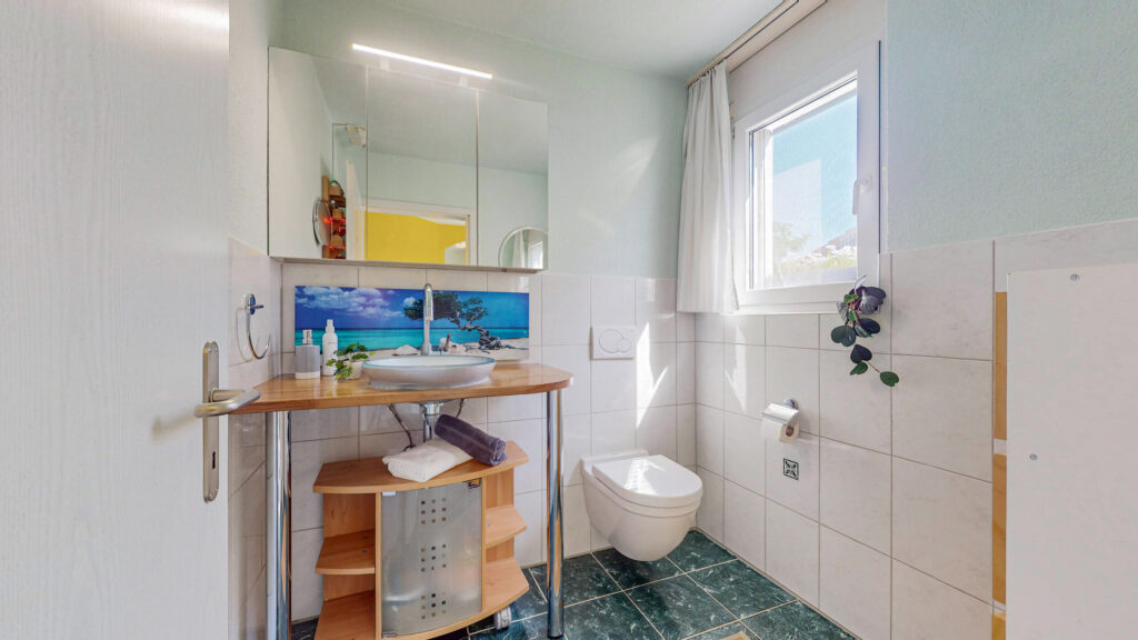 Der Innenbereich verteilt sich grosszügig über drei Etagen und bietet insgesamt drei Badezimmer. Im Untergeschoss wartet ein Highlight: eine Badewanne mit Jacuzzi-Funktion – perfekt, wenn man sich etwas Wellness gönnen will. Die Haustechnik wurde modernisiert, unter anderem mit einer Wärmepumpe und einer Photovoltaikanlage, die Strom ins Netz zurückspeist.