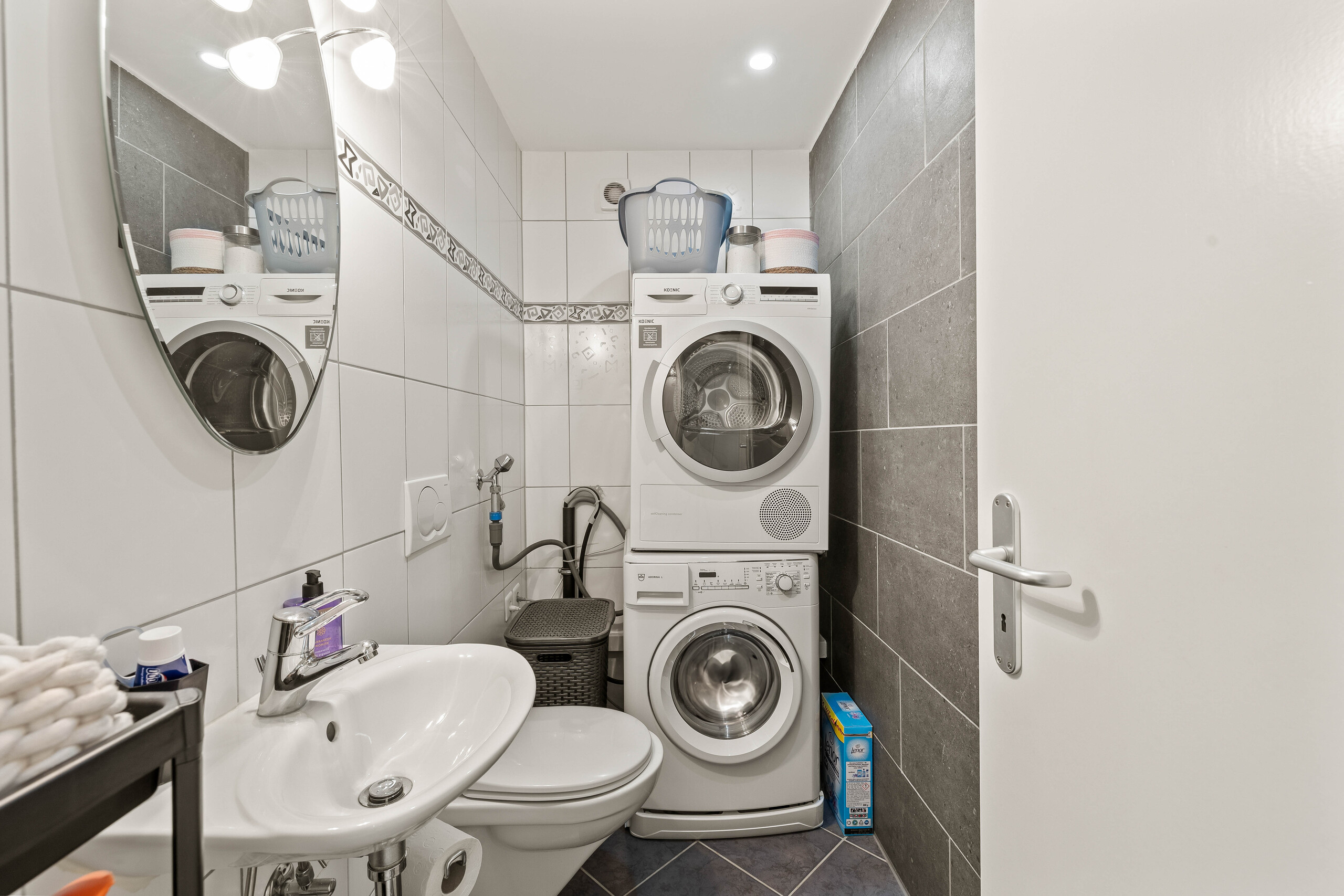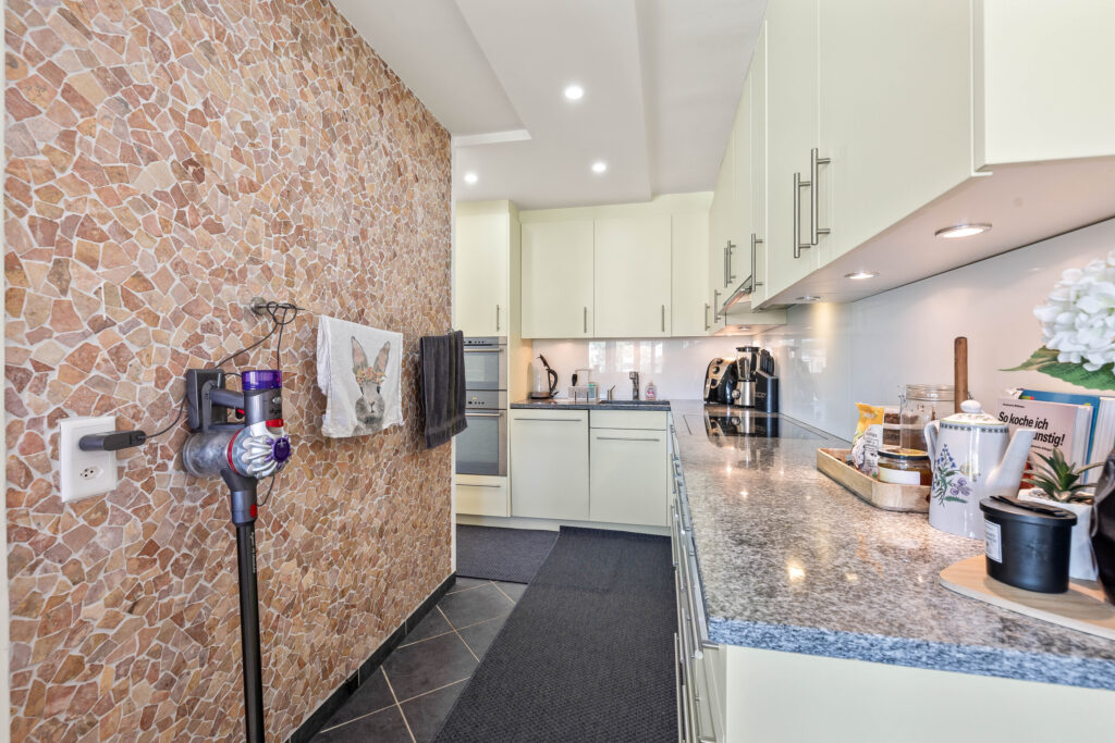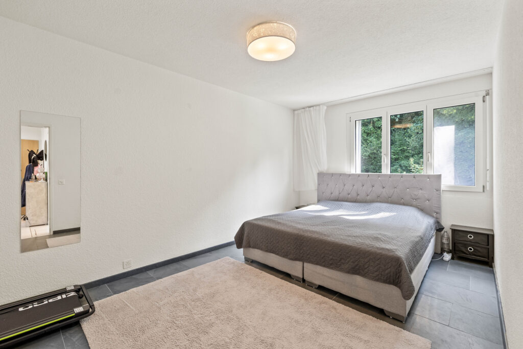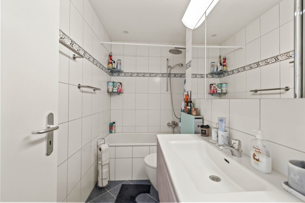 Die Wohnung verfügt über ein Bad/WC sowie eine separate Gästetoilette mit integriertem Waschturm. Dank regelmässigem Unterhalt und modernem Ausbau präsentiert sich die Liegenschaft in sehr gutem Zustand.