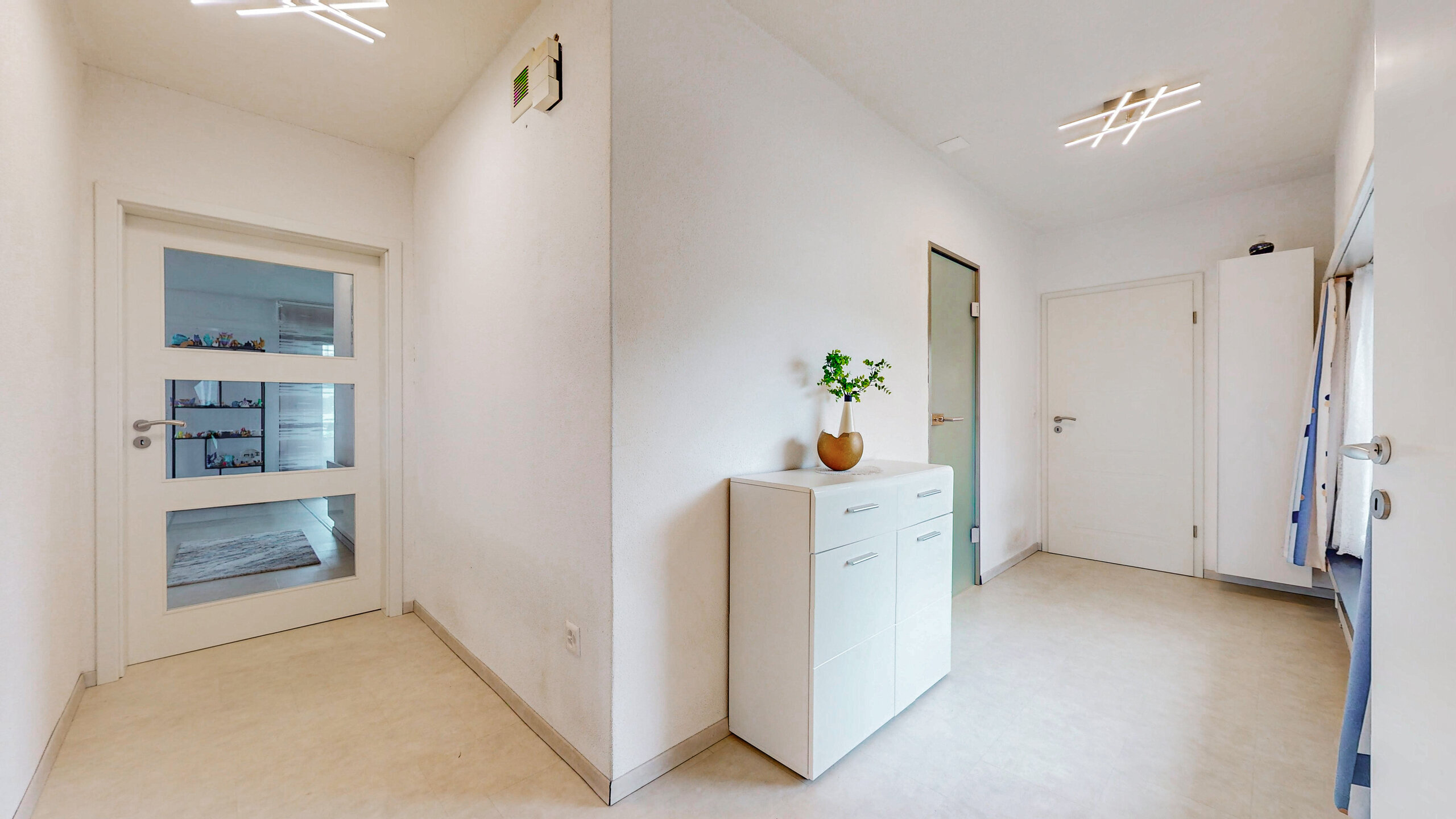Die Wohnfläche von 413 m² verteilt sich auf sieben Zimmer und drei Etagen. Der helle Wohn- und Essbereich öffnet sich direkt zu einem grosszügigen, rund 60 m² grossen Wintergarten, der zu jeder Jahreszeit zusätzlichen Wohnkomfort bietet. Auf allen drei Etagen stehen moderne, offene Küchen zur Verfügung, was das Haus äusserst flexibel nutzbar macht. Eine offene Galerie sorgt für ein grosszügiges Raumgefühl und eröffnet vielseitige Möglichkeiten der Nutzung.