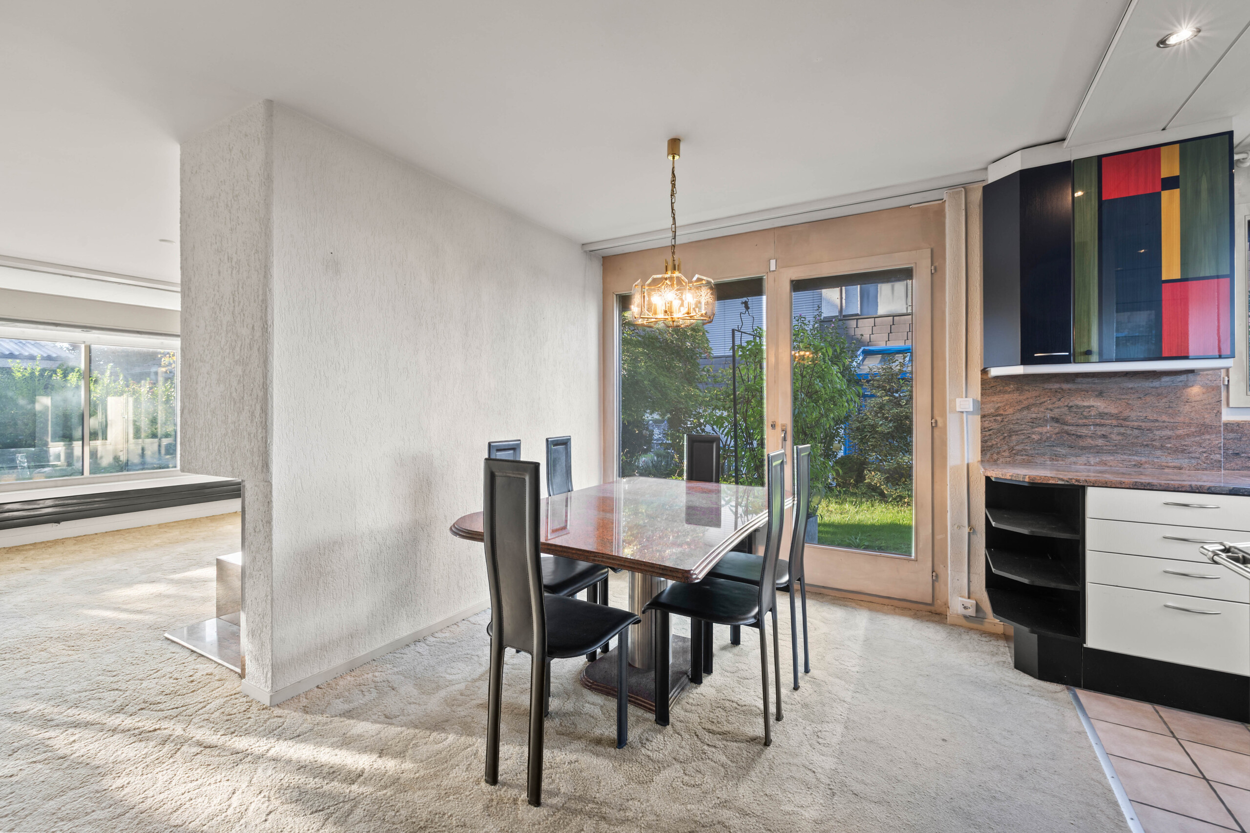 Das Haus überzeugt durch ein grosszügiges Raumkonzept mit viel Licht und Platz für die ganze Familie. Der einladende Wohnbereich mit Cheminée sorgt für gemütliche Stunden, während der Wintergarten zu jeder Jahreszeit zusätzlichen Wohnkomfort bietet. Nach einem langen Tag lädt die hauseigene Sauna zum Entspannen ein – ein Hauch von Wellness in den eigenen vier Wänden.