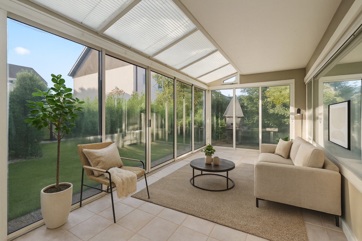 - Luxusausstattung: Wintergarten, Sauna und Cheminée für höchsten Komfort