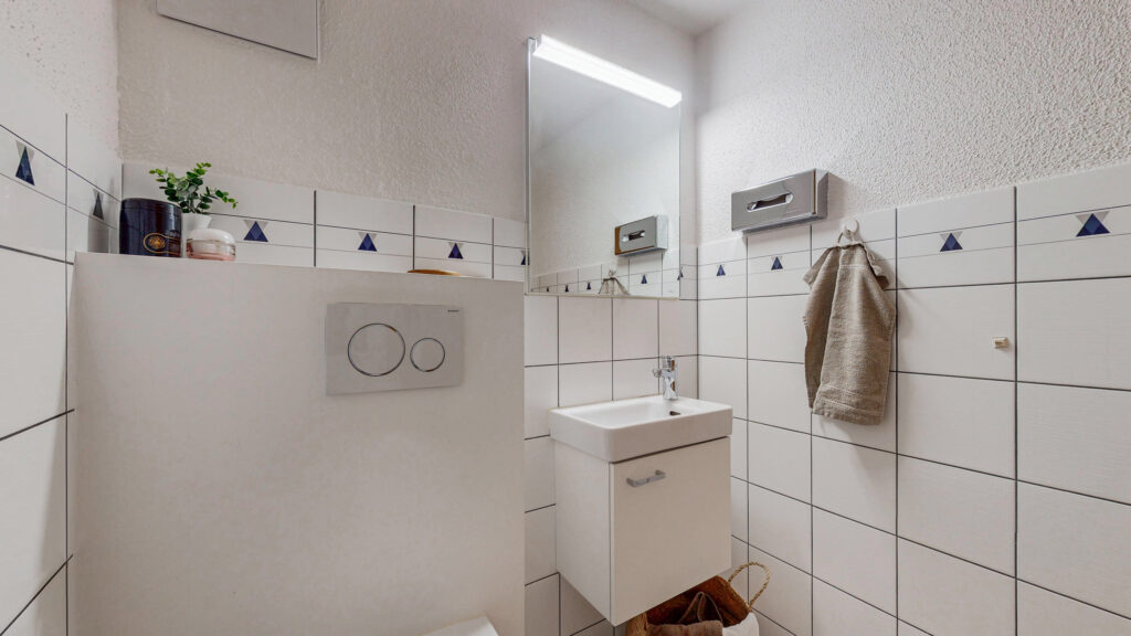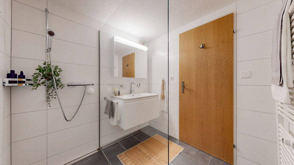 - Moderne Nassbereiche: Mit Dusche und einem sep. WC